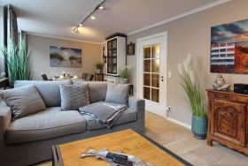 Die Wohnung ist mit ganz viel Liebe zum Detail und vielen kleinen Accessoires eingerichtet. Modern und antik wird hier gekonnt kombiniert. Der Wohnraum ist mit einer gemütlichen Couchgarnitur und einem tollen großzügigem Echtholz-Essplatz mit 4 Polsterstühlen ausgestattet. Im angrenzenden Schlafzimmer befindet sich ein Doppelbett und viel Stauraum und noch ein zusätzlicher kleiner Raum mit eingebauten Schränken. Die separate Küche ist voll ausgestattet mit einen 4 Platten-Induktionskochfeld, einer Mikrowelle, einem Geschirrspüler und einem Kühlschrank mit integriertem Gefrierfach. Duschbad/WC mit Halbrundtusche, großzügigem Waschtisch und Handtuchheizkörper. Nichtraucherwohnung. Wohnungsgröße ca. 45 m². Ein Hotspot im Haus ermöglicht Ihnen einen kabellosen und kostenfreien Zugang zum Internet (WEG-AD3 - Passwortfrei - ohne Gewähr).