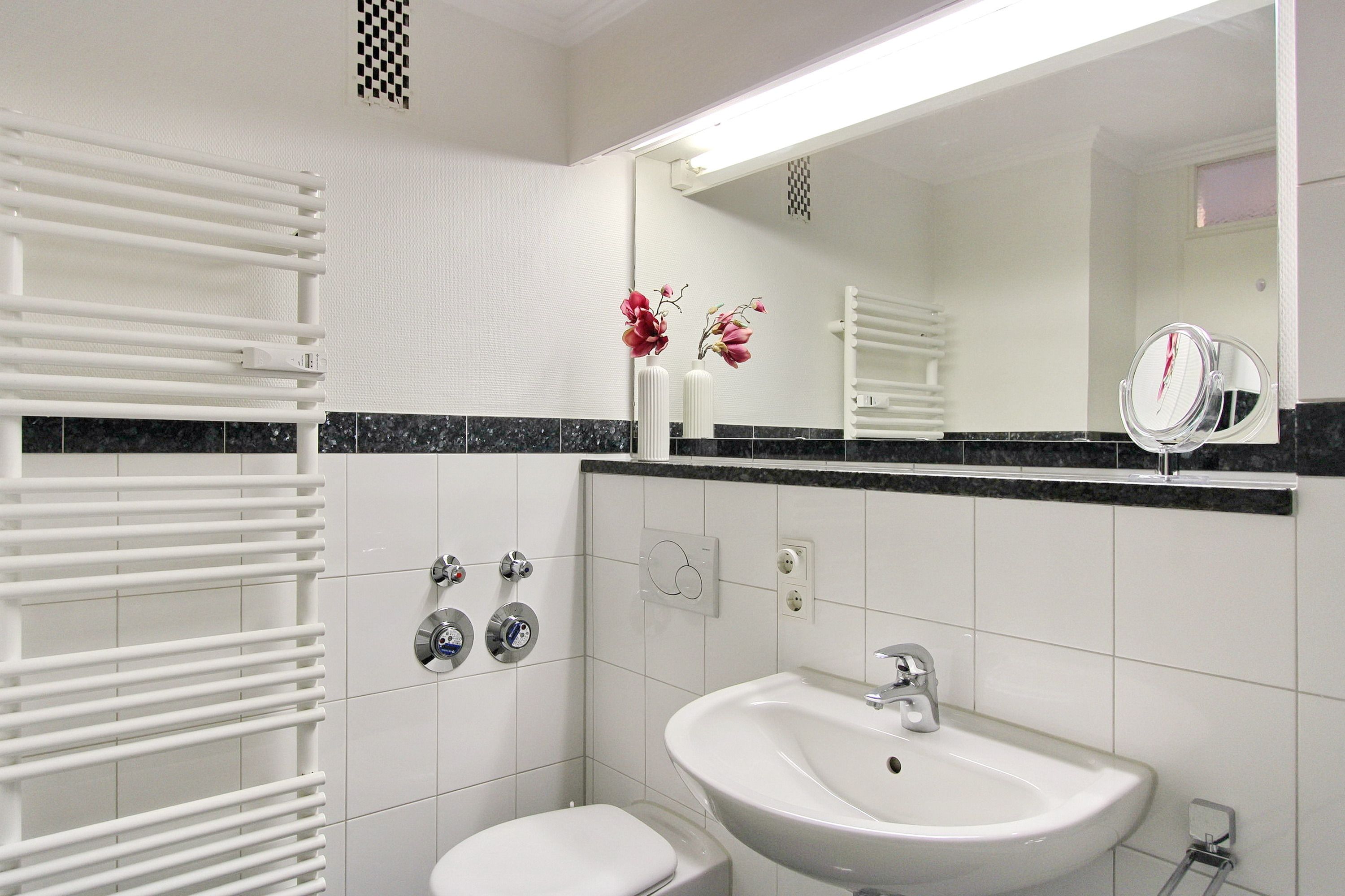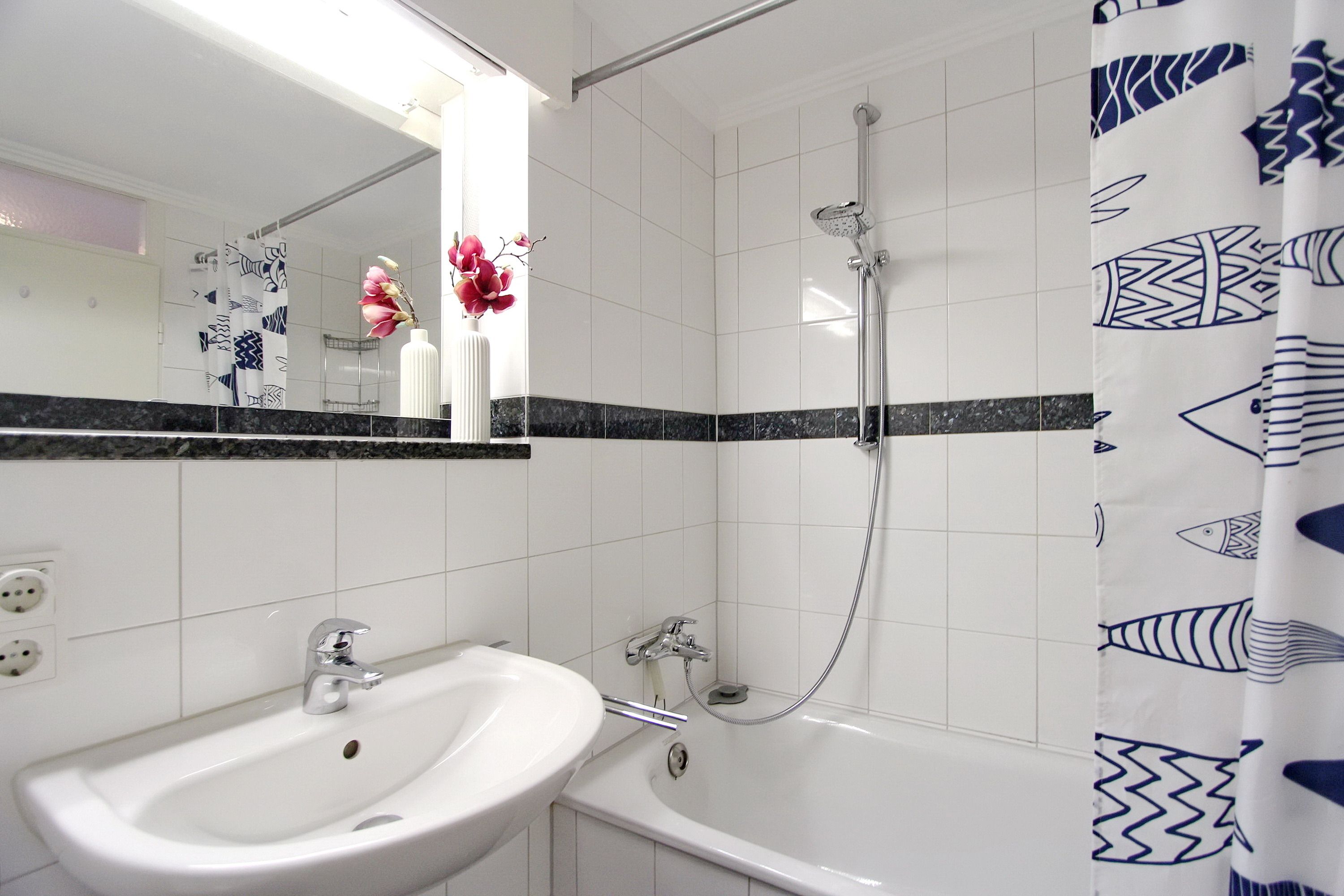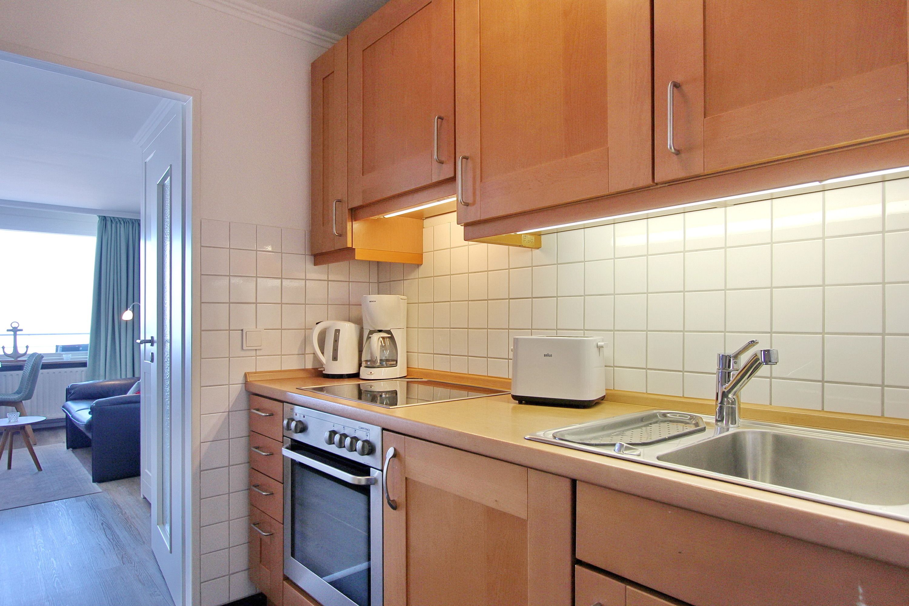 Diese Einzimmerwohnung in der 6. Etage im Haus Metropol hat einen traumhaften Blick auf den Strand und die Nordsee. Der Wohn-/Schlafraum mit vorgelagertem Westbalkon (inkl. Balkonmöbeln von Kettler) wurde hochwertig und neu gestaltet. Er hat einen Designfußboden in Holzoptik, ein von beiden Seiten begehbares Boxspringbett, einen Essplatz mit 2 Stühlen am Fenster und ein Ledersofa mit Tischen. Die Fenster haben Plissees als Sonnenschutz und auch Verdunklungsvorhänge. Im Badezimmer lädt eine Badewanne zum Entspannen ein und einen beheizten Handtuchtrockner gibt es ebenfalls. Die sehr gut ausgestattete Einbauküche im Flur besitzt ein Cerankochfeld und einen Backofen. Zur technischen Ausstattung dieser Nichtraucherwohnung gehören ein schwenkbarer Flachbildfernseher, eine Bluetoothanlage mit NFC und 2 USB Ladesteckdosen. Ein freies WLAN-Netzwerk (WEG Haus Metropol - Passwortfrei - ohne Gewähr) steht Ihnen kostenfrei zur Verfügung. Wohnungsgröße: ca. 34 m²
