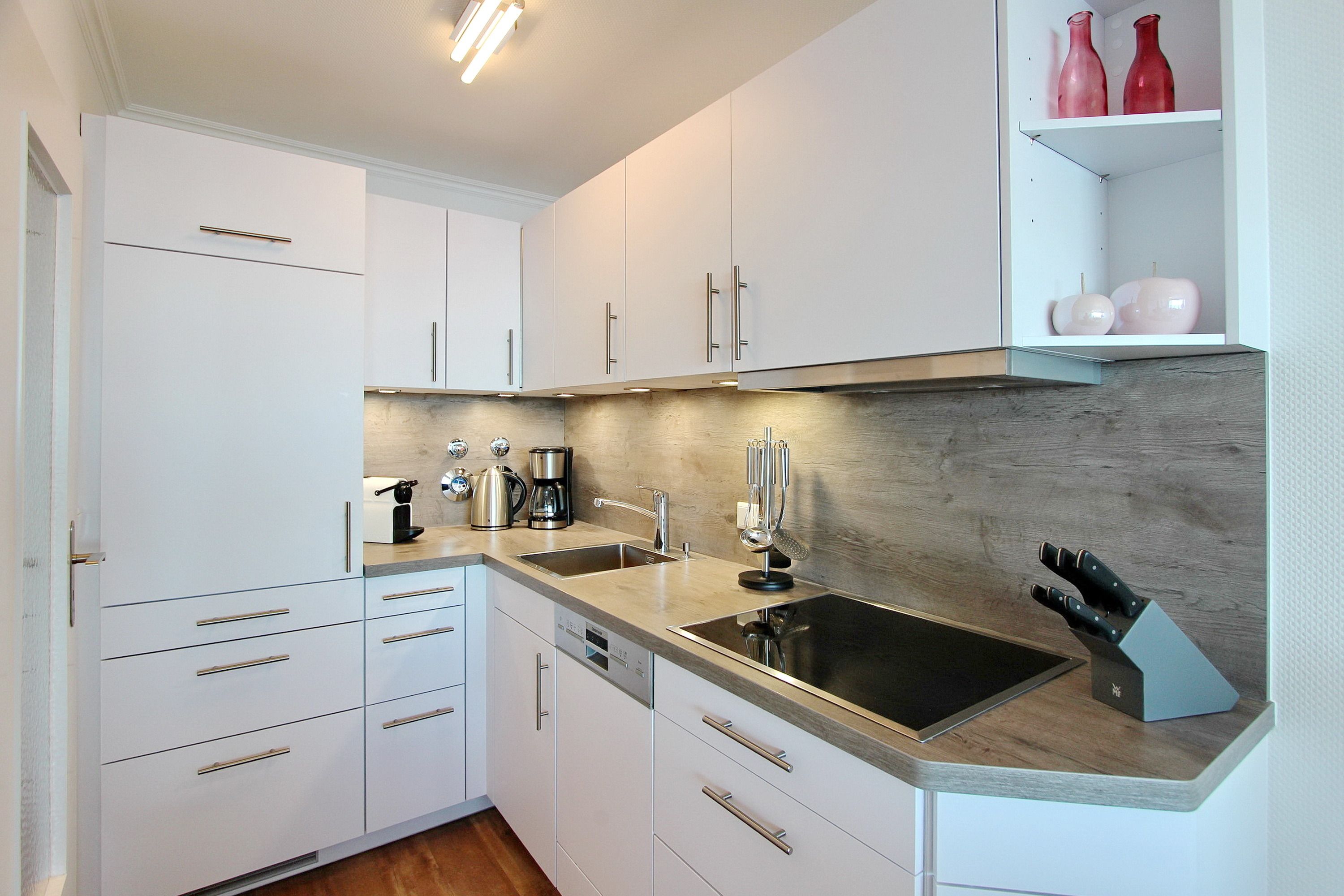 Diese gemütliche Einzimmerwohnung befindet sich in der 9. Etage des Haus Metropol und hat einen herrlichen Blick über den Strand und die Nordsee. Der hell und freundlich eingerichtete Wohn-/Schlafraum mit vorgelagertem Westbalkon verfügt über ein Doppelschrankbett, einen Essplatz mit 2 Stühlen am Fenster sowie eine bequeme Sitzgruppe mit 2er Sofa und Fernsehsessel. Der Holzfussboden verleiht dem Raum Wärme und Gemütlichkeit und in den Schränken ist ausreichend Stauraum für Ihre persönlichen Dinge. Im Badezimmer gibt es eine Dusche, einen Handtuchtrockner, Kosmetikspiegel und Fön. Die zum Wohnraum offene Küche verfügt über ein Ceranfeld mit 4 Herdplatten und einen Geschirrspüler. Moderne Küchengeräte der Firma WMF (z.B. Eierkocher, Smoothiemaker, Mixer) eine zusätzliche Nespresso Maschine und hochwertiges Geschirr und Gläser stehen Ihnen zur Verfügung. Zur technischen Ausstattung dieser Nichtraucherwohnung gehört: ein Flachbildfernseher der Firma LG, ein Bluray Player und eine Bluetoothanlage mit CD Spieler von Sony. Das freie WLAN Netzwerk (WEG Haus Metropol - Passwortfrei - ohne Gewähr) können Sie kostenfrei nutzen. Wohnungsgröße: ca. 42 m².