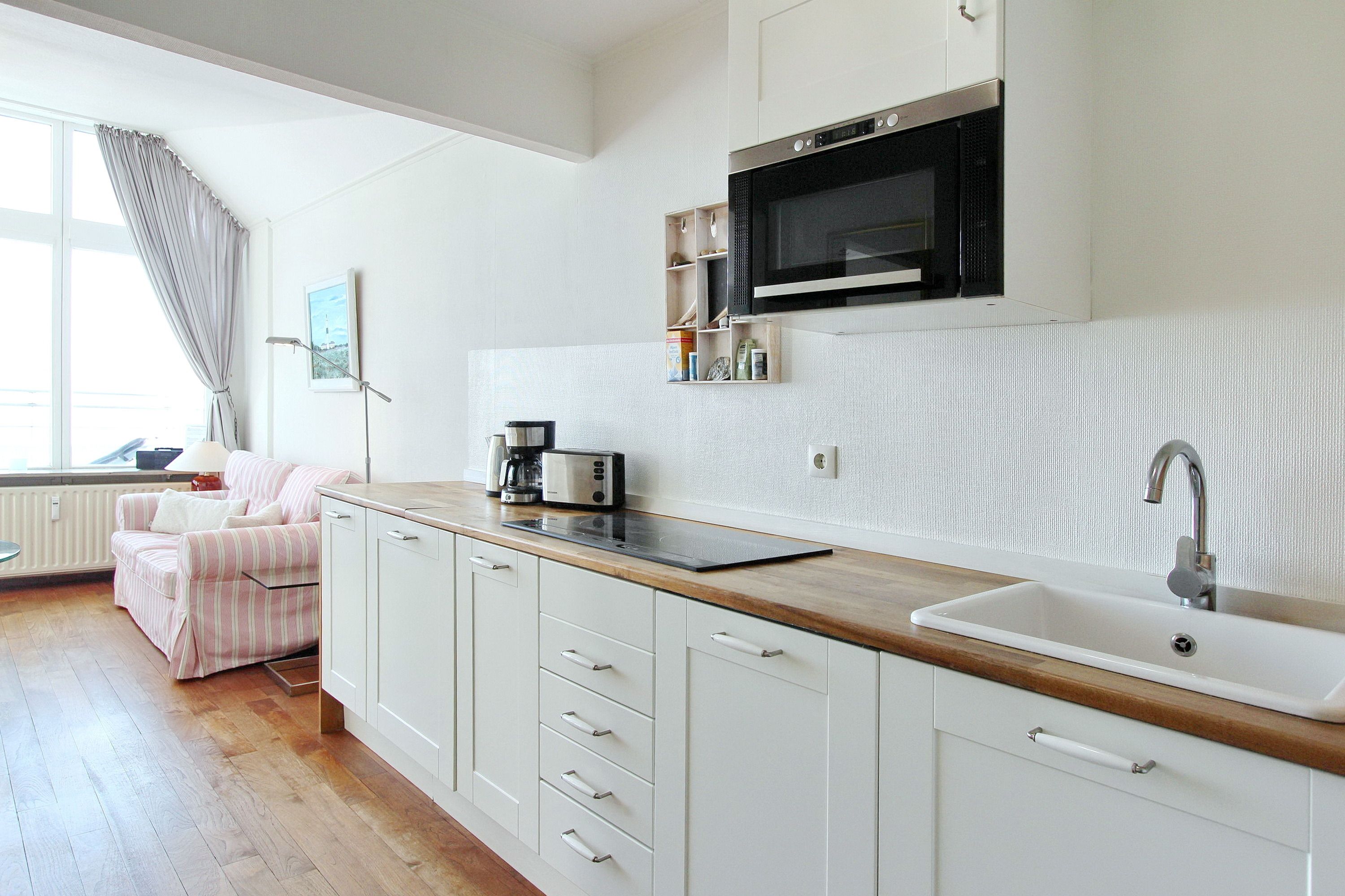 Penthouse-Wohnung in der 14. Etage im Haus Metropol mit großzügiger Dachterrasse. Balkonmöbel sind vorhanden und von hier oben können Sie den herrlichem Weitblick über die Insel und die Stadt genießen. Die Sonnenaufgänge können spektakulär sein und machen Ihr Urlaubsdomizil zu etwas ganz besonderem. Gemütlich eingerichteter Wohn-/Schlafraum mit Doppelschrankbett, Echtholzfußboden, Couch und Sessel sowie Essplatz mit 2 Stühlen. Die großen Panoramafenster lassen viel Licht in die Wohnung. Das Badezimmer verfügt über eine Dusche. In der offenen Küchenzeile im Flur mit Induktionsherd, Geschirrspüler, Mikrowellen-Grillkombination können Sie sich selbst verpflegen. Zur technischen Ausstattung gehört: ein Radio und ein Flachbildfernseher. Der freie WLAN Hotspot (WEG Haus Metropol - Passwortfrei - ohne Gewähr) steht ihnen kostenfrei zur Verfügung. Die Penthouseetage ist über eine Treppe erreichbar, da der Aufzug in der 13. Etage endet. Wohnungsgröße: ca. 38 m².