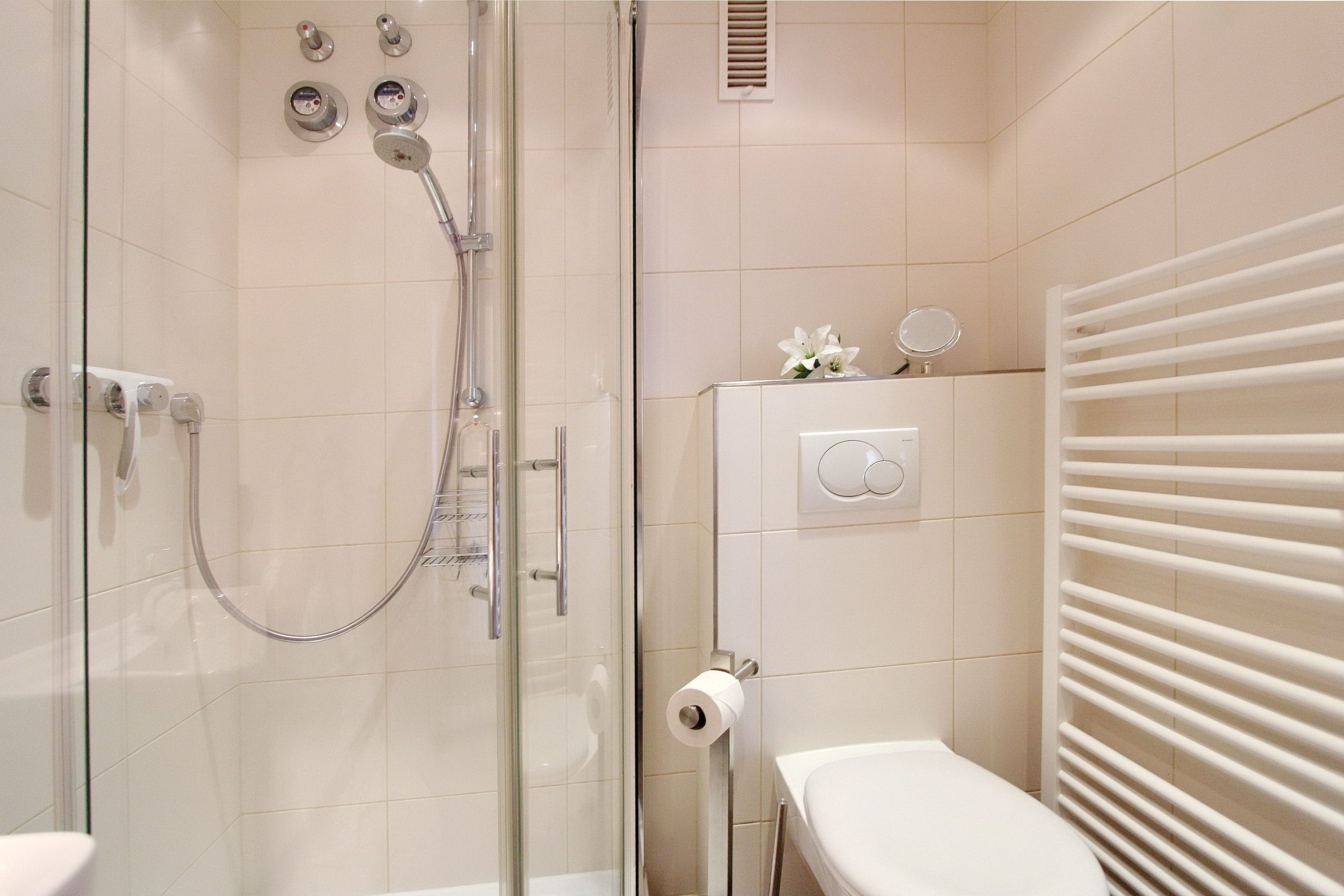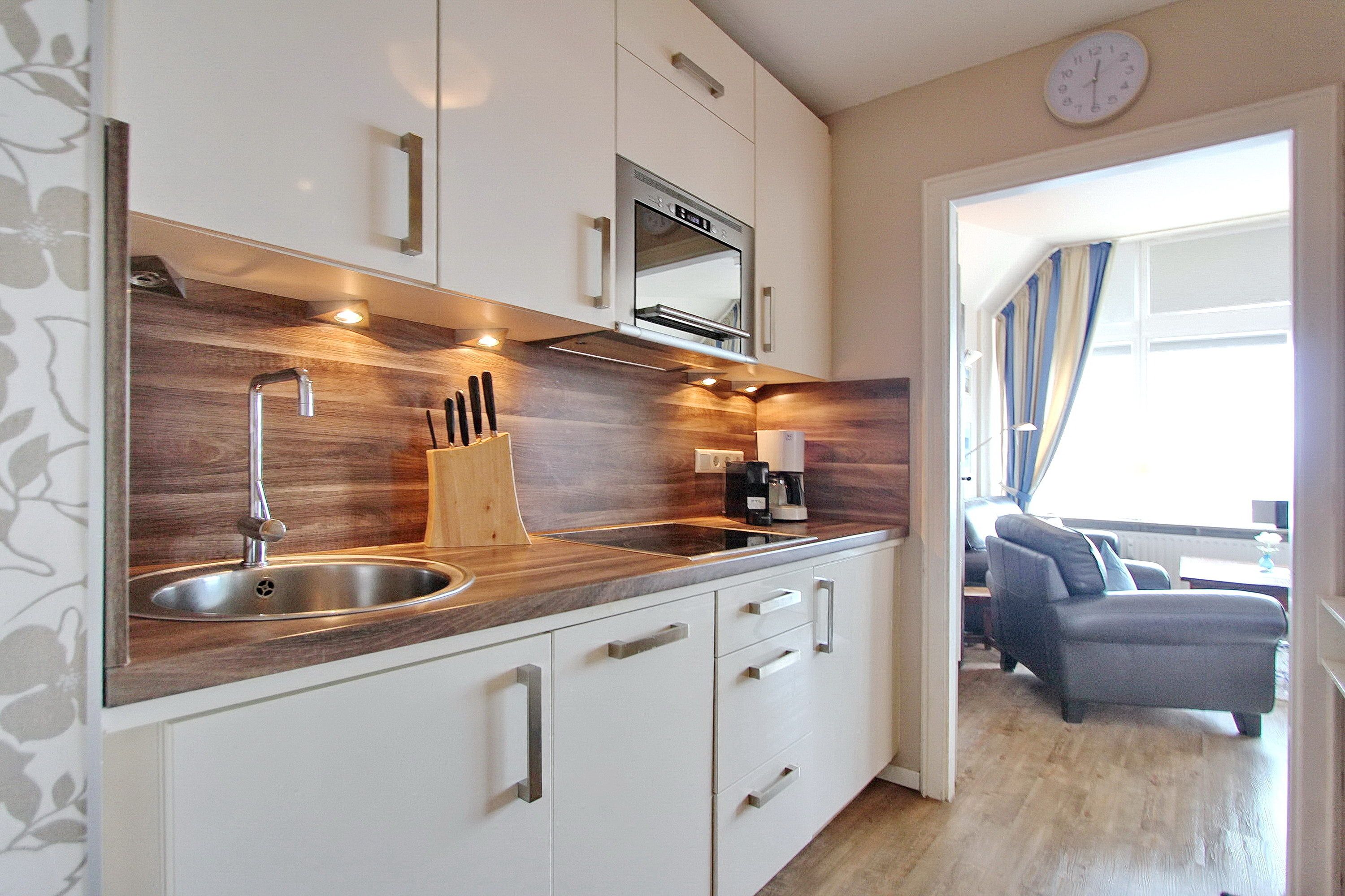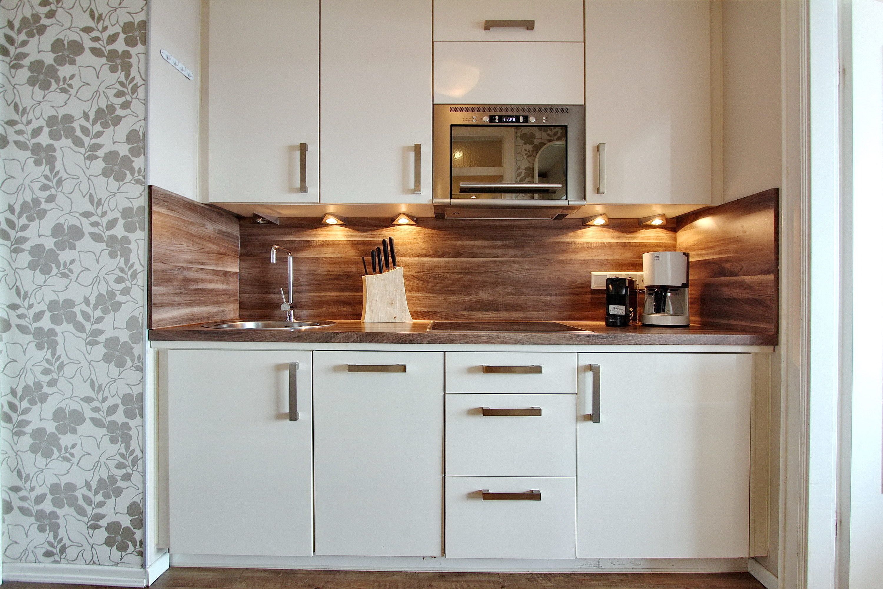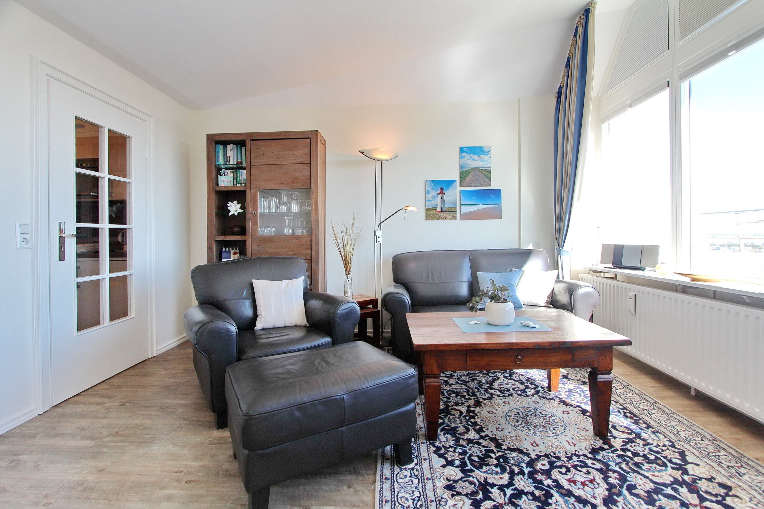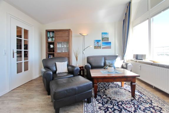 Aus der 14. Etage des Haus Metropol haben Sie einen herrlichen Weitblick über die Insel und die Stadt Westerland. Bei klarem Wetter können Sie bis zum nordfriesischen Wattenmeer und dem nahen Festland schauen. Der kombinierte Wohn-/Schlafraum mit vorgelagerter Ostdachterrasse (Terrassenmöbel sind vorhanden) ist mit Laminatfußboden, einem Doppelschrankbett, kleiner begehbarer Kleiderschrank, einem Essplatz mit 2 Stühlen und einer Sitzgruppe und Fernsehsessel eingerichtet. Im Badezimmer gibt es eine Dusche. Selbstverpflegung ist dank der kleinen Einbauküche mit Nespresso-Maschine, Geschirrspüler, Ceranfeld und Mikrowelle im Flur möglich. Zur technischen Ausstattung gehört : ein Flachbildfernseher und ein Radio mit CD Spieler. Der freie WLAN Hotspot (WEG Haus Metropol - Passwortfrei - ohne Gewähr) steht ihnen kostenfrei zur Verfügung. Das Penthouse ist nur über eine Treppe erreichbar, da der Aufzug in der 13. Etage endet. Diese Nichtraucherwohnung hat eine Größe von ca. 38 m².