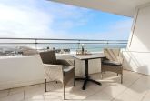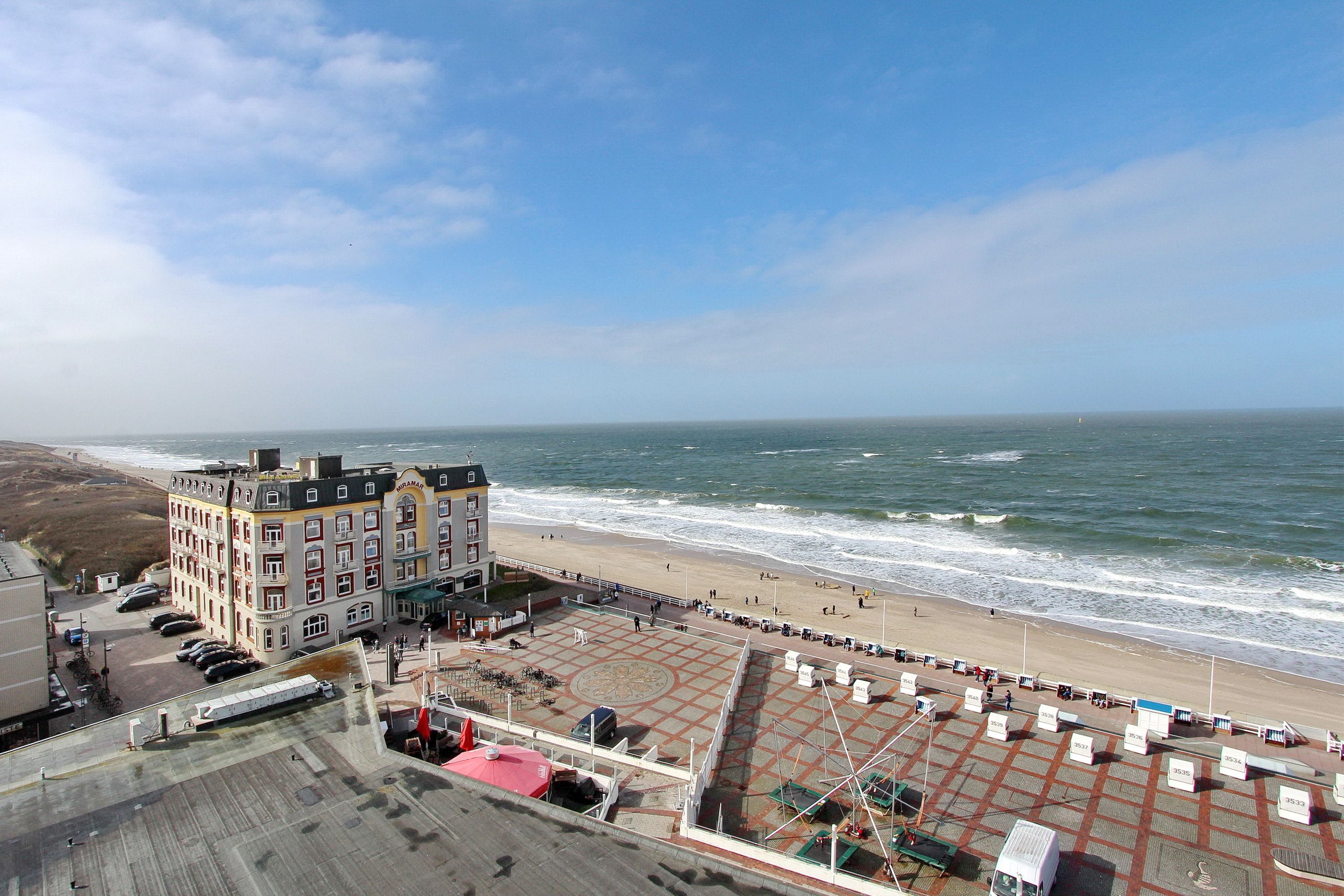 Die wunderschöne, freundlich eingerichtete 2 Zimmer Wohnung in der 7. Etage bietet Ihnen einen herrlichen Blick über die südliche Insel und die Nordsee. Das Wohnzimmer ist aufgrund der großen Fensterfronten und der beiden Balkone in Süd- und Ostrichtung lichtdurchflutet. Beide Balkone sind mit Tisch und Sesseln sowie Kissenauflagen eingerichtet.