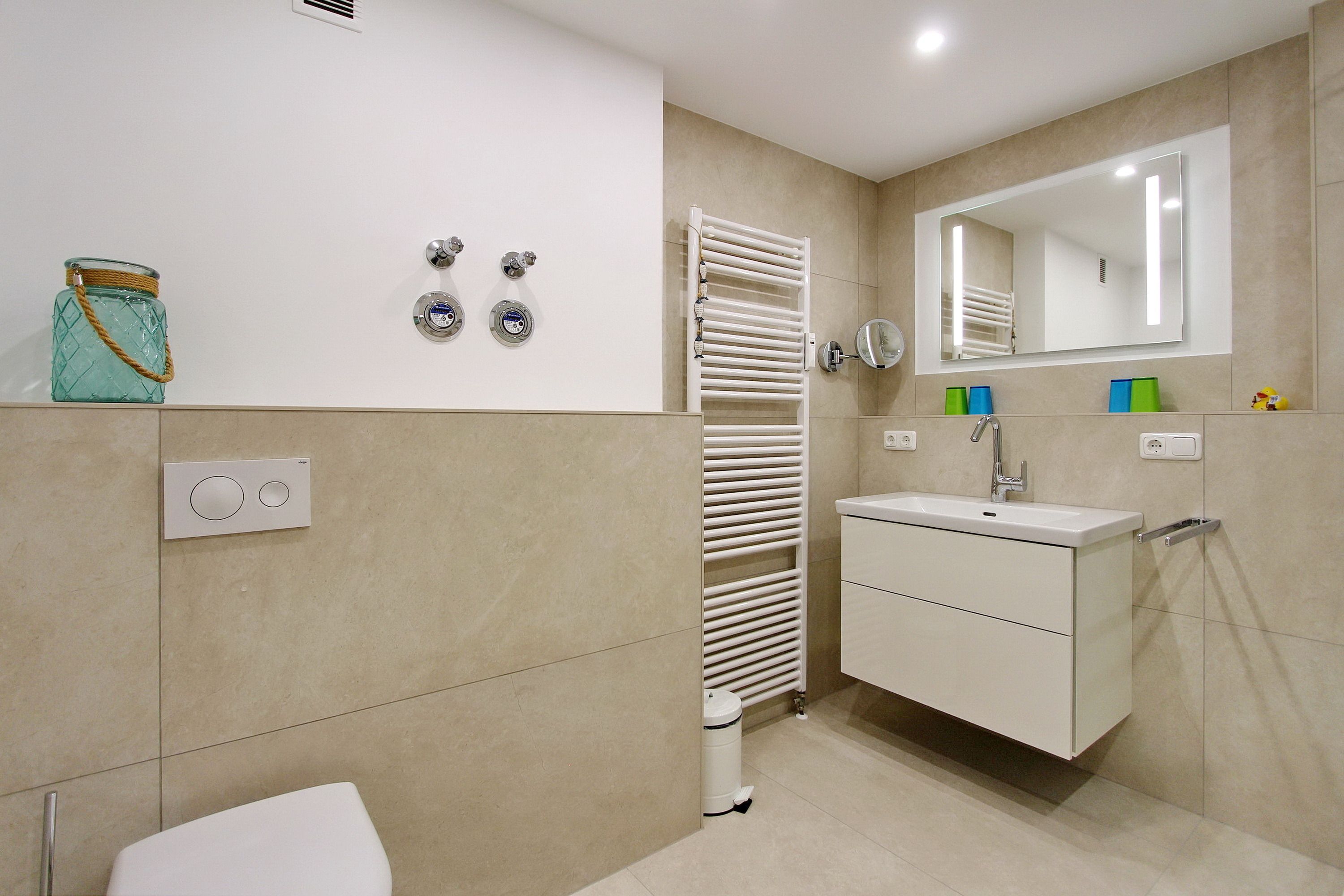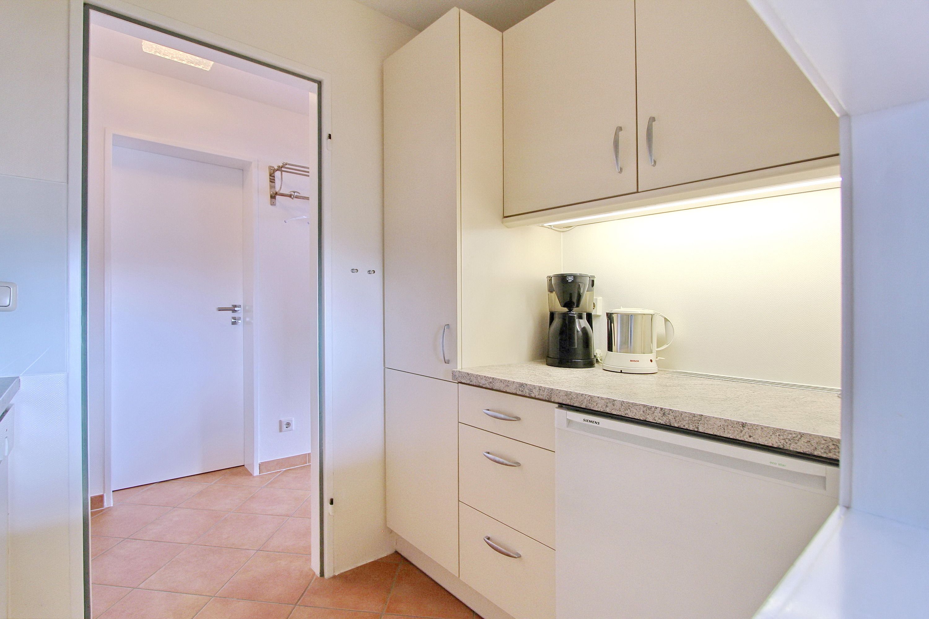 Der Wohnraum verfügt über eine große Couch mit Schlaffunktion, zwei Fernsehsessel, zwei Couchtische, ein Sideboard, einen Sekretär sowie ein großes Smart-TV, auf dem Sie Streamingdienste, wie z.B. Netflix, nutzen können. Der Essplatz mit vier Esszimmersesseln befindet sich zwischen der Durchreiche zur Küche und dem Südbalkon. Das separate Schlafzimmer, ebenfalls mit Zugang zum Ostbalkon ist mit einem feststehenden Doppelbett, einem Schrank mit reichlich Stauraum und einem Flachbild-TV ausgestattet. Das neu renovierte und helle Badezimmer, das sowohl vom Schlafzimmer als auch vom Flur aus begehbar ist, verfügt über eine großzügige Dusche mit flachem Einstieg, einen Duschhocker, reichlich Gelegenheit zum Handtuchtrocknen, einen Föhn, einen großen beleuchteten Spiegel sowie einen beleuchteten Kosmetikspiegel. In der voll ausgestatteten Küche mit Geschirrspüler, Mikrowelle und einem Herd mit 4 Cerankochplatten lassen sich bequem Mahlzeiten zubereiten, die sich direkt durch die Durchreiche zum Essplatz servieren lassen. Zur weiteren technischen Ausstattung der Wohnung gehören ein Radio, ein freies WLAN-Netzwerk (WEG Haus Metropol) sowie das private, kostenfreie WLAN des Vermieters.
