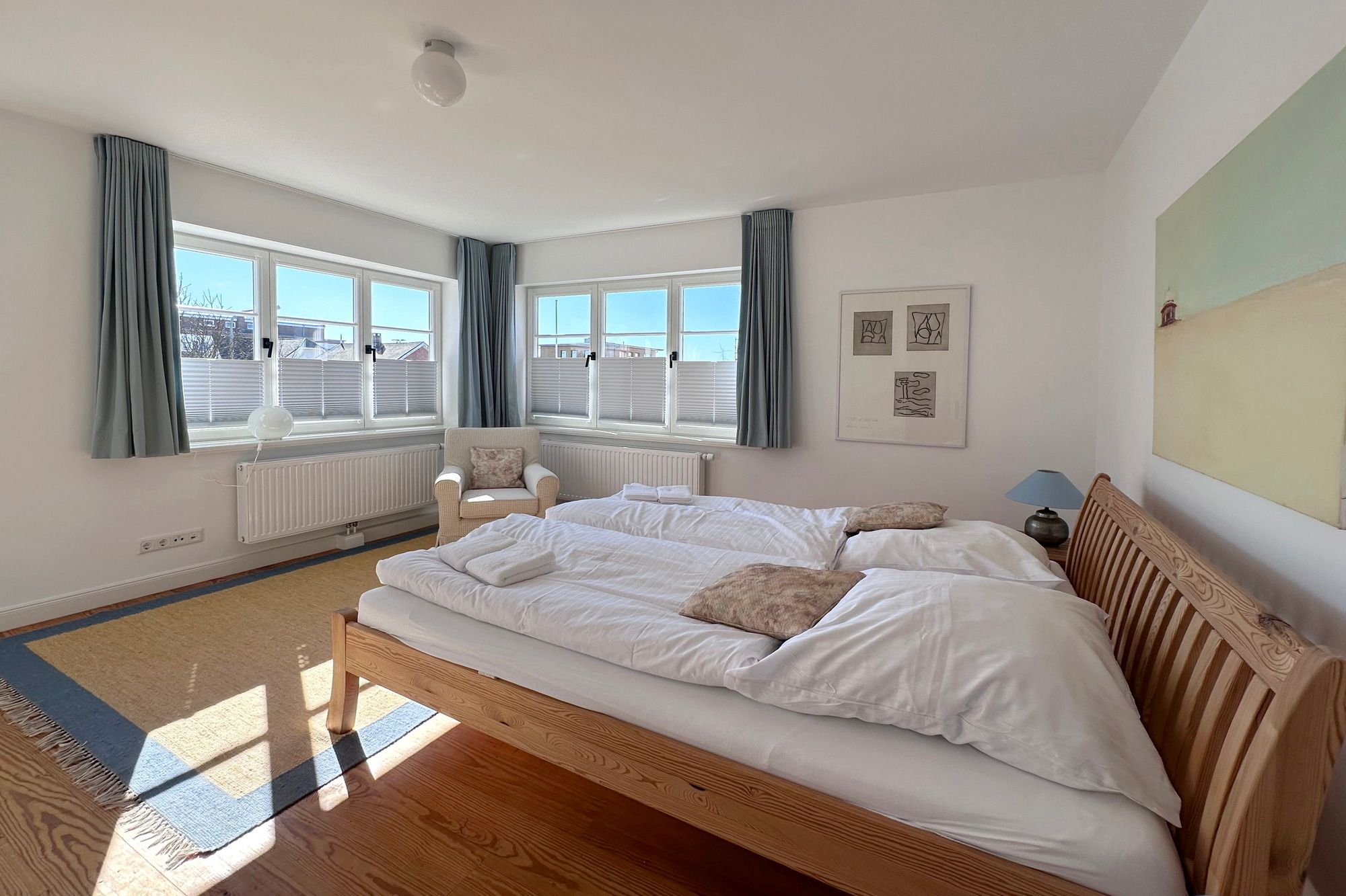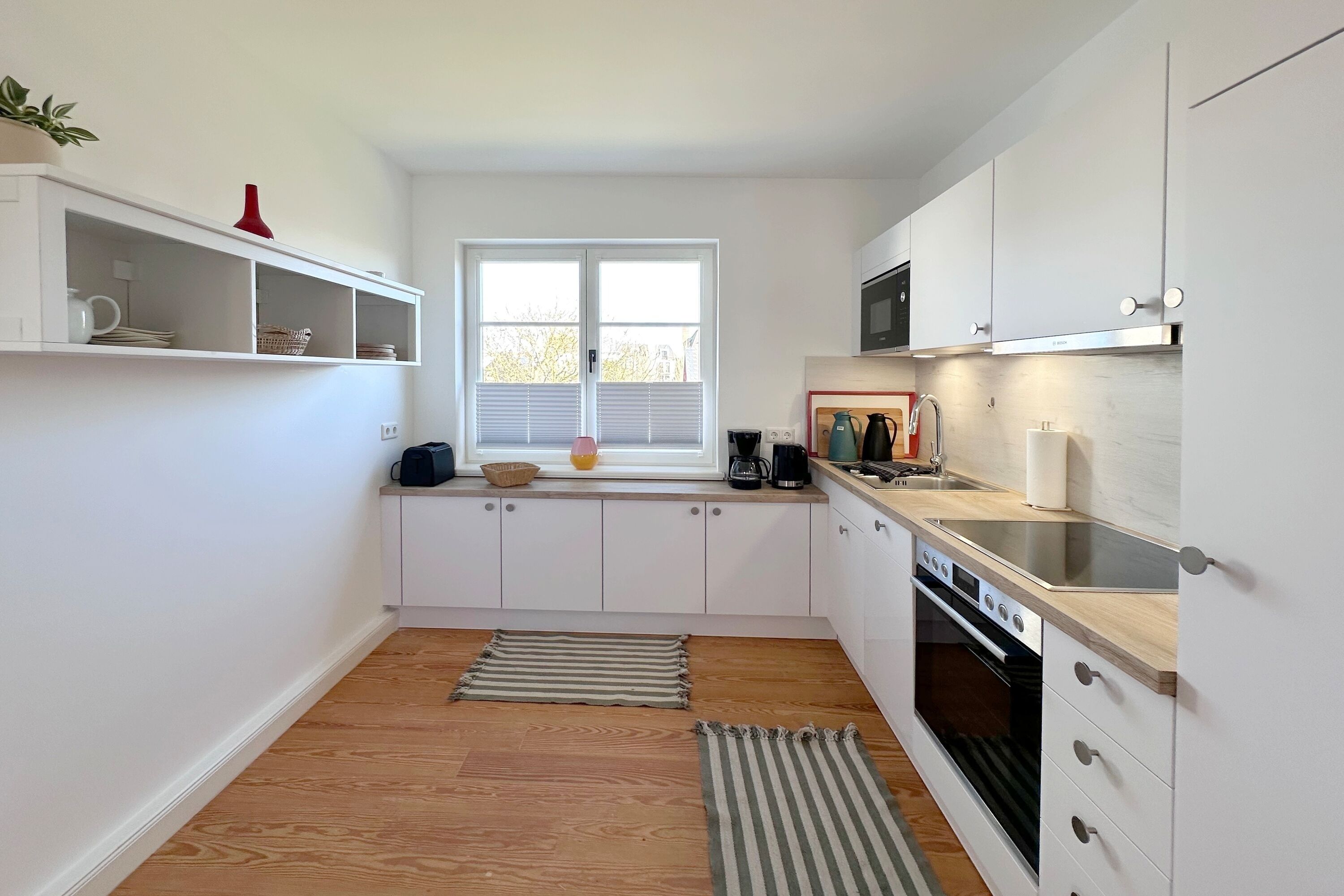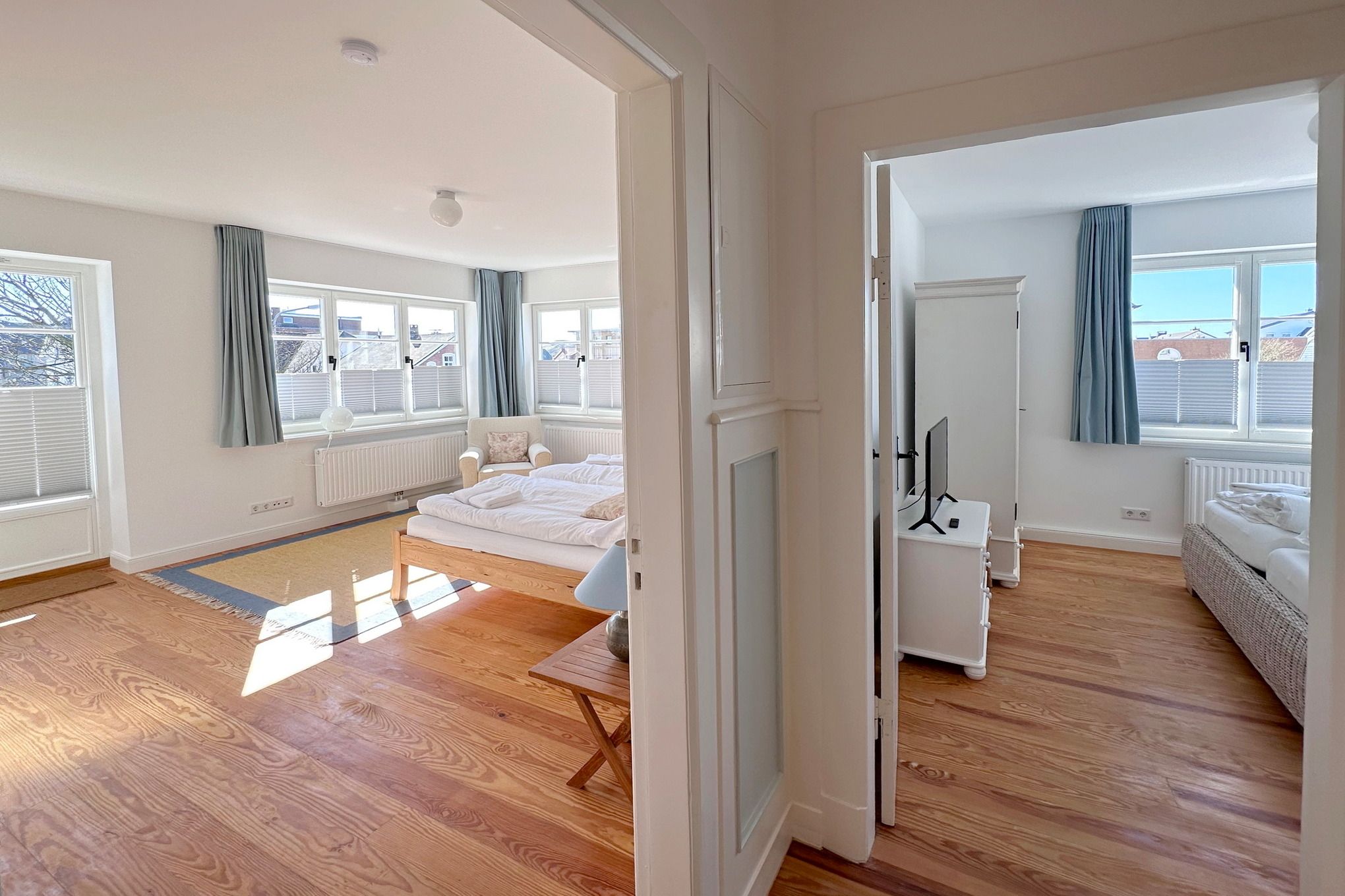 Frisch renovierte und sanierte Ferienwohnung (OG ) in zentraler strand- und citynaher Lage mit großzügigem Grundriss. Alle Räume befinden sich auf einer Ebene. 2 Schlafzimmer jeweils mit Doppelbett, modernes Badezimmer mit Dusche und Wanne.