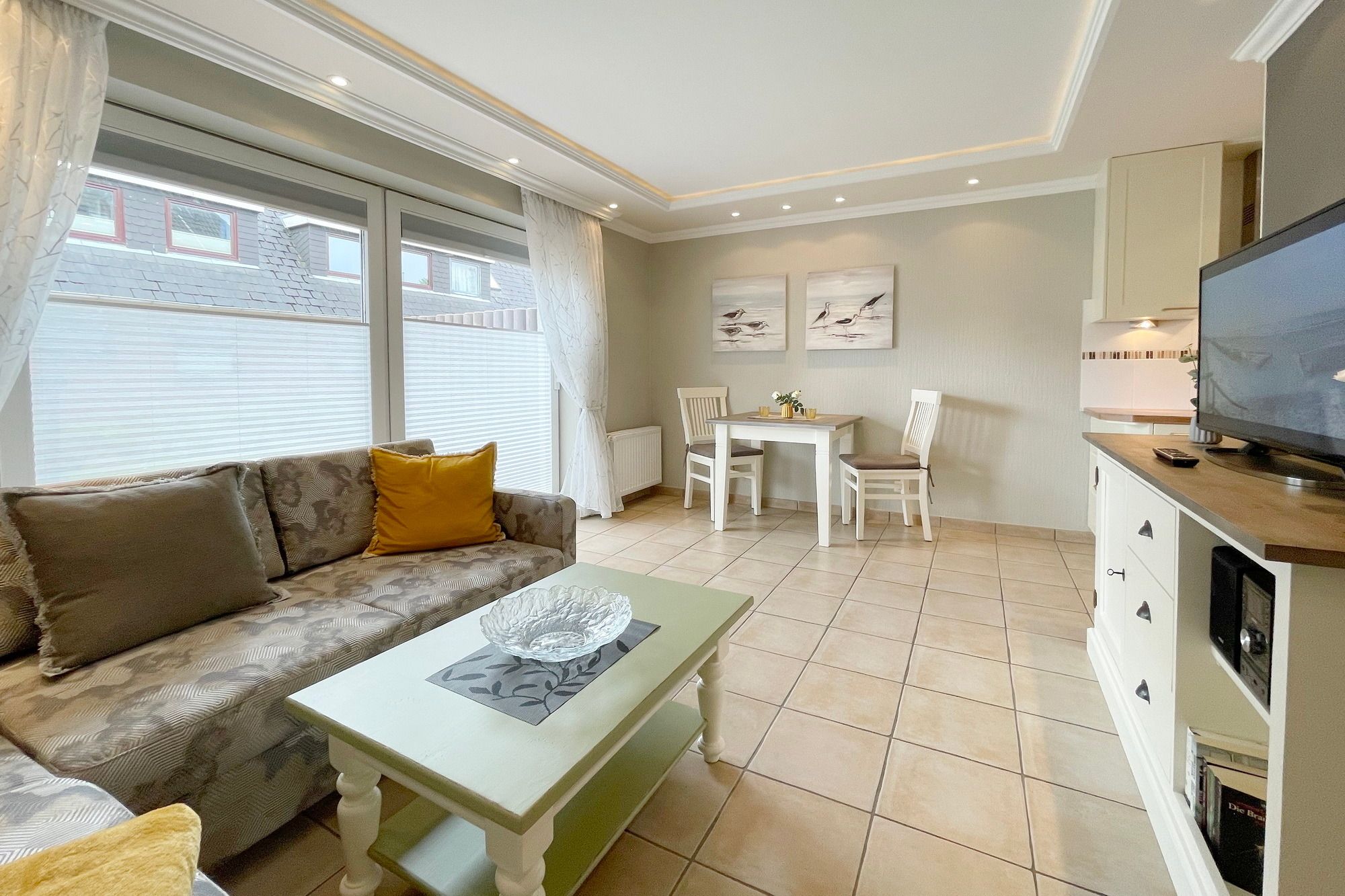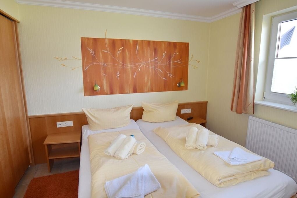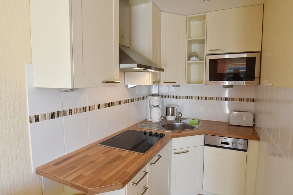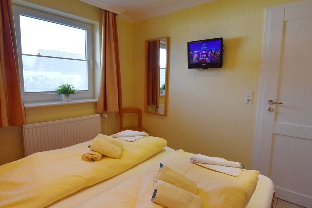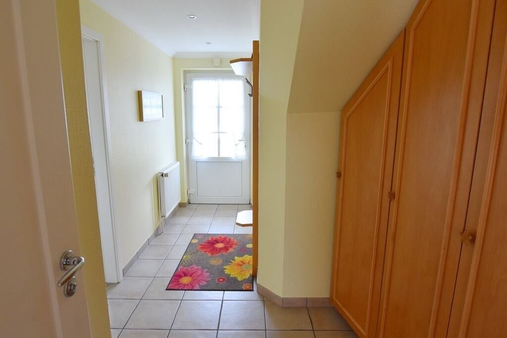 Moderne Ferienwohnung im Erdgeschoss mit Terrasse in südlicher Ausrichtung. Wohnzimmer mit gemütlicher Couch, Essecke für 2 Personen und offener Küchenzeile mit Geschirrspüler und Mikrowelle. Smart-TV und WLAN gehören hier zur Ausstattung. Schlafzimmer mit Doppelbett und zweitem TV. Duschbad mit WC und Waschbecken. Zur Ferienwohnung gehört ein PKW-Stellplatz ( Nr. 3 ) auf dem Grundstück. Im UG befinden sich für die Gäste des Hauses Waschmaschine und Trockner, Nutzung gegen geringe Gebühr. Gerne dürfen Sie hier ein gut erzogenes Haustier mitbringen. Dafür wird dann eine einmalige Haustiergebühr berechnet.