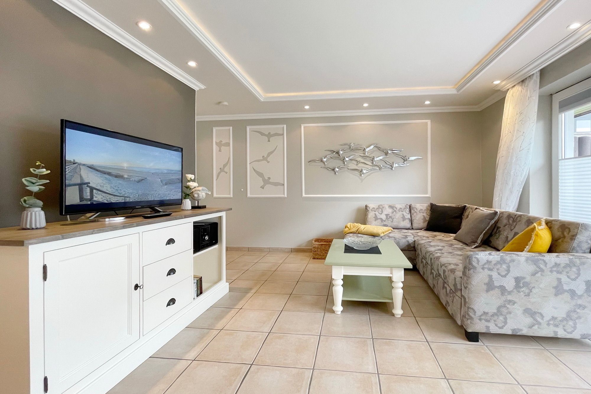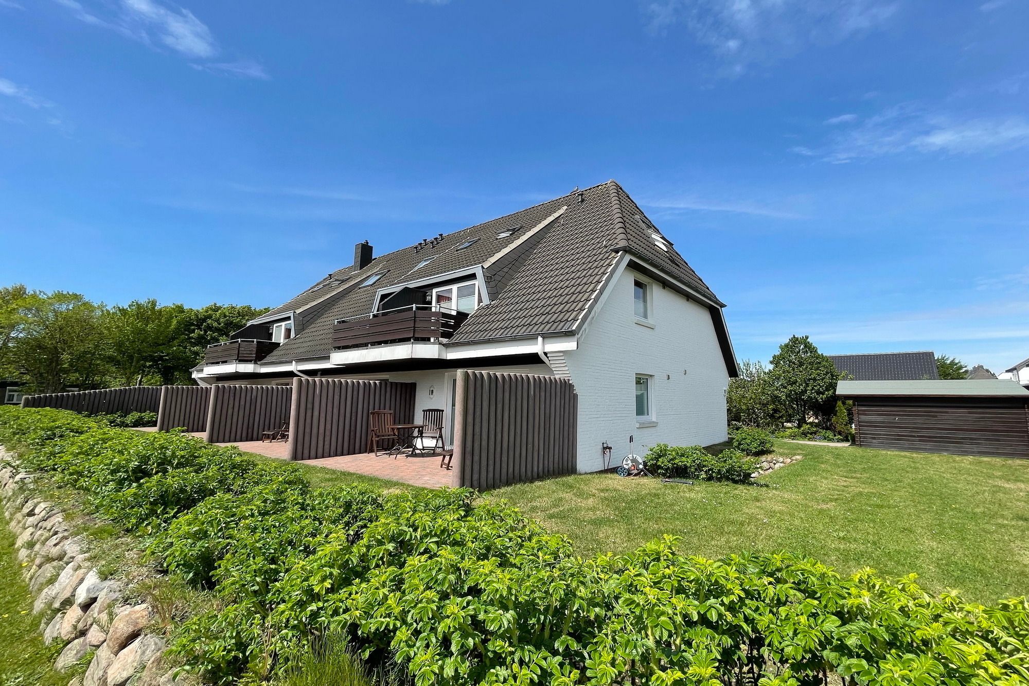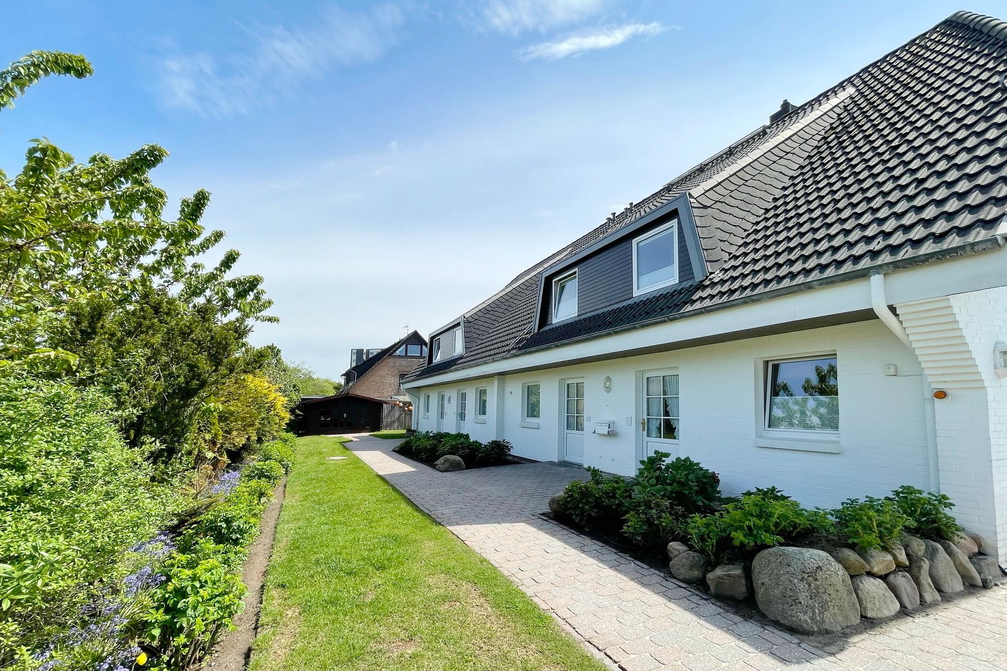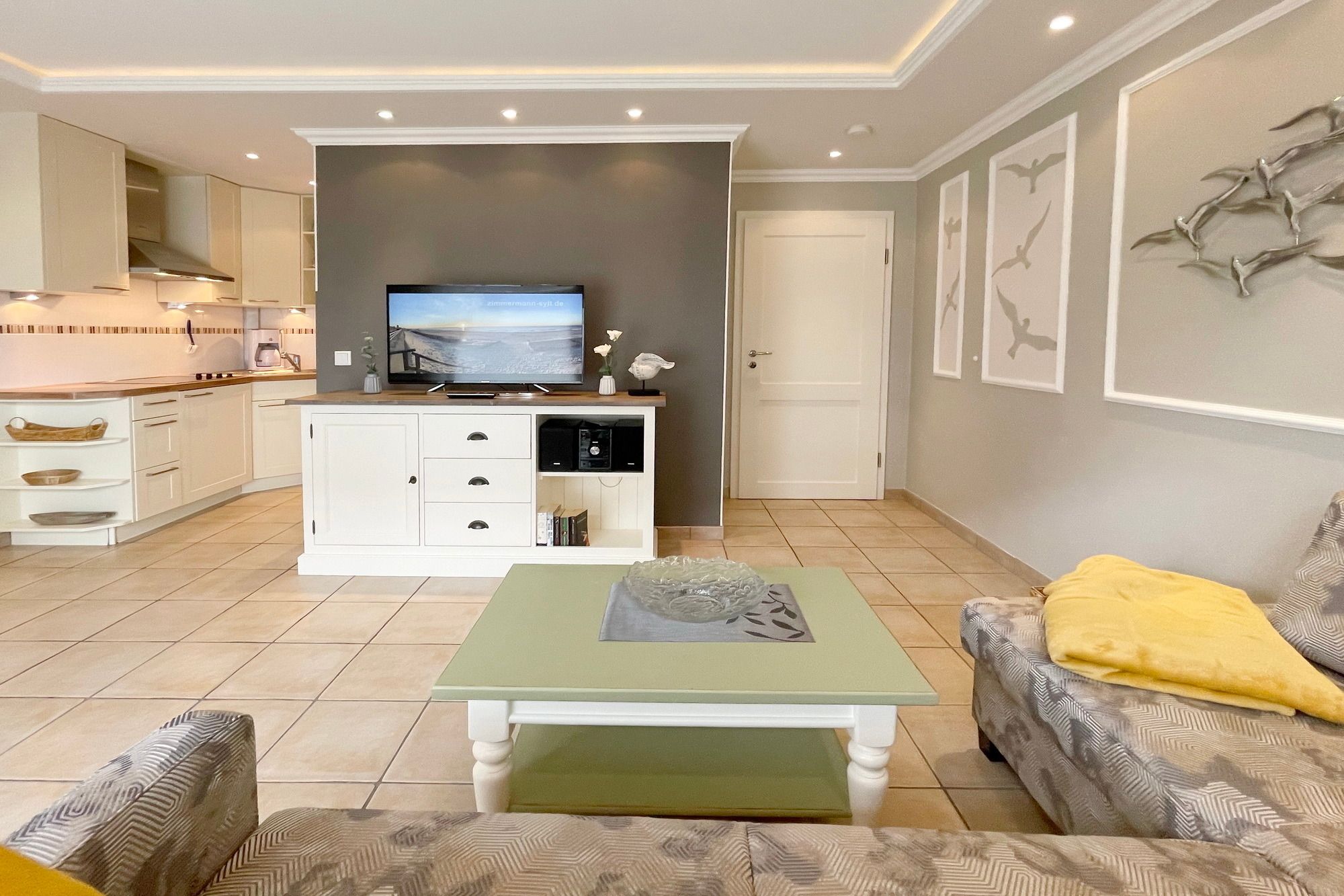 Moderne Ferienwohnung im Erdgeschoss mit Terrasse in südlicher Ausrichtung. Wohnzimmer mit gemütlicher Couch, Essecke für 2 Personen und offener Küchenzeile mit Geschirrspüler und Mikrowelle. Smart-TV und WLAN gehören hier zur Ausstattung. Schlafzimmer mit Doppelbett und zweitem TV. Duschbad mit WC und Waschbecken. Zur Ferienwohnung gehört ein PKW-Stellplatz ( Nr. 3 ) auf dem Grundstück. Im UG befinden sich für die Gäste des Hauses Waschmaschine und Trockner, Nutzung gegen geringe Gebühr. Gerne dürfen Sie hier ein gut erzogenes Haustier mitbringen. Dafür wird dann eine einmalige Haustiergebühr berechnet.