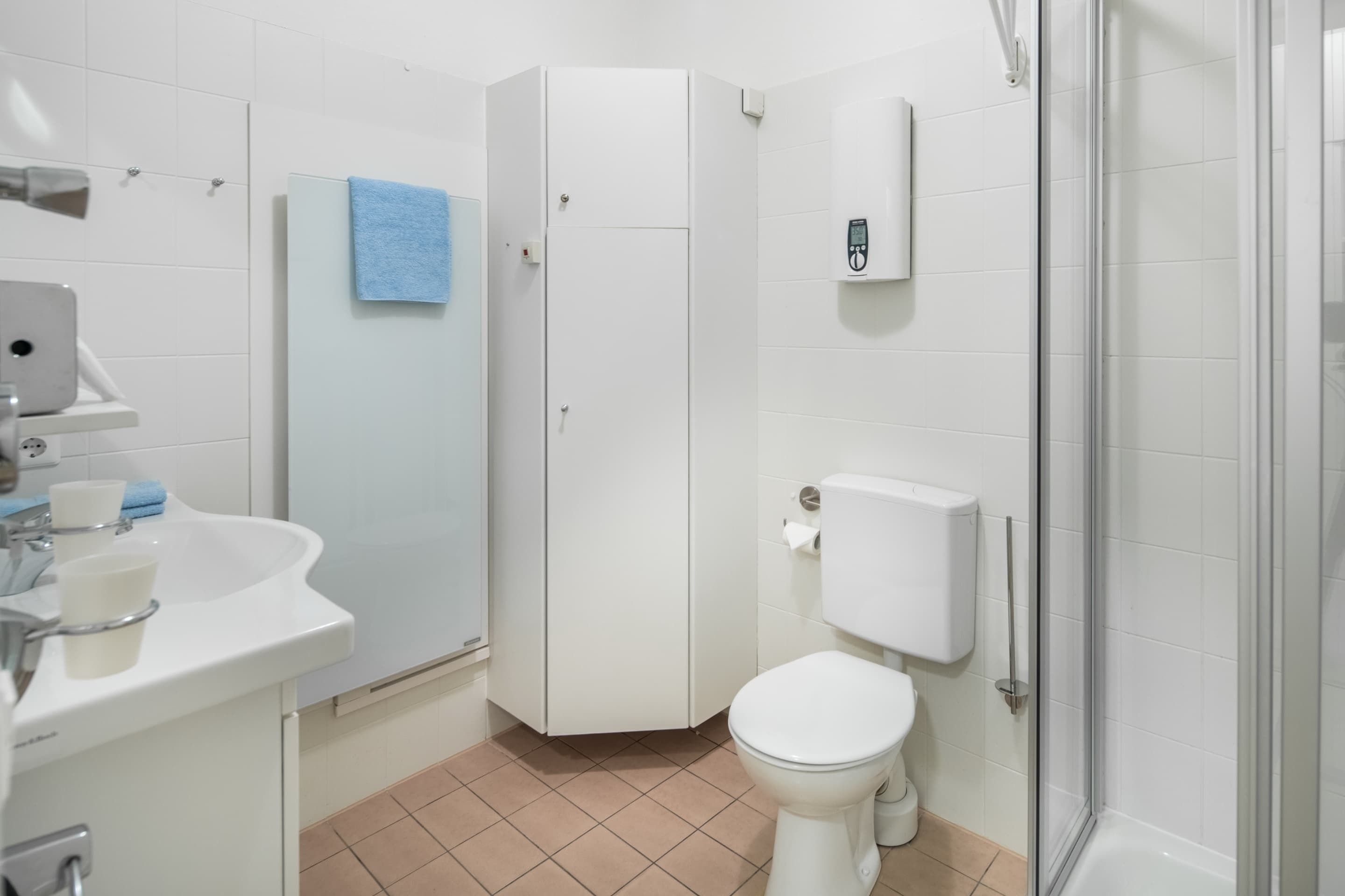 Das Schlafzimmer ist mit einem Doppelbett und einem Etagenbett (nur für die Nutzung von Kindern) ausgestattet. Beides befindet sich in einem Raum und ist durch einen Vorhang abgegrenzt. Für beide Bereiche sichtbar, ist auch dort ebenfalls ein Flachbildfernseher installiert. Die Wohnung ist beschränkt für die Nutzung von 3 Erwachsenen oder alternativ 2 Erwachsenen und 2 Kindern. Hunde sind herzlich Willkommen.