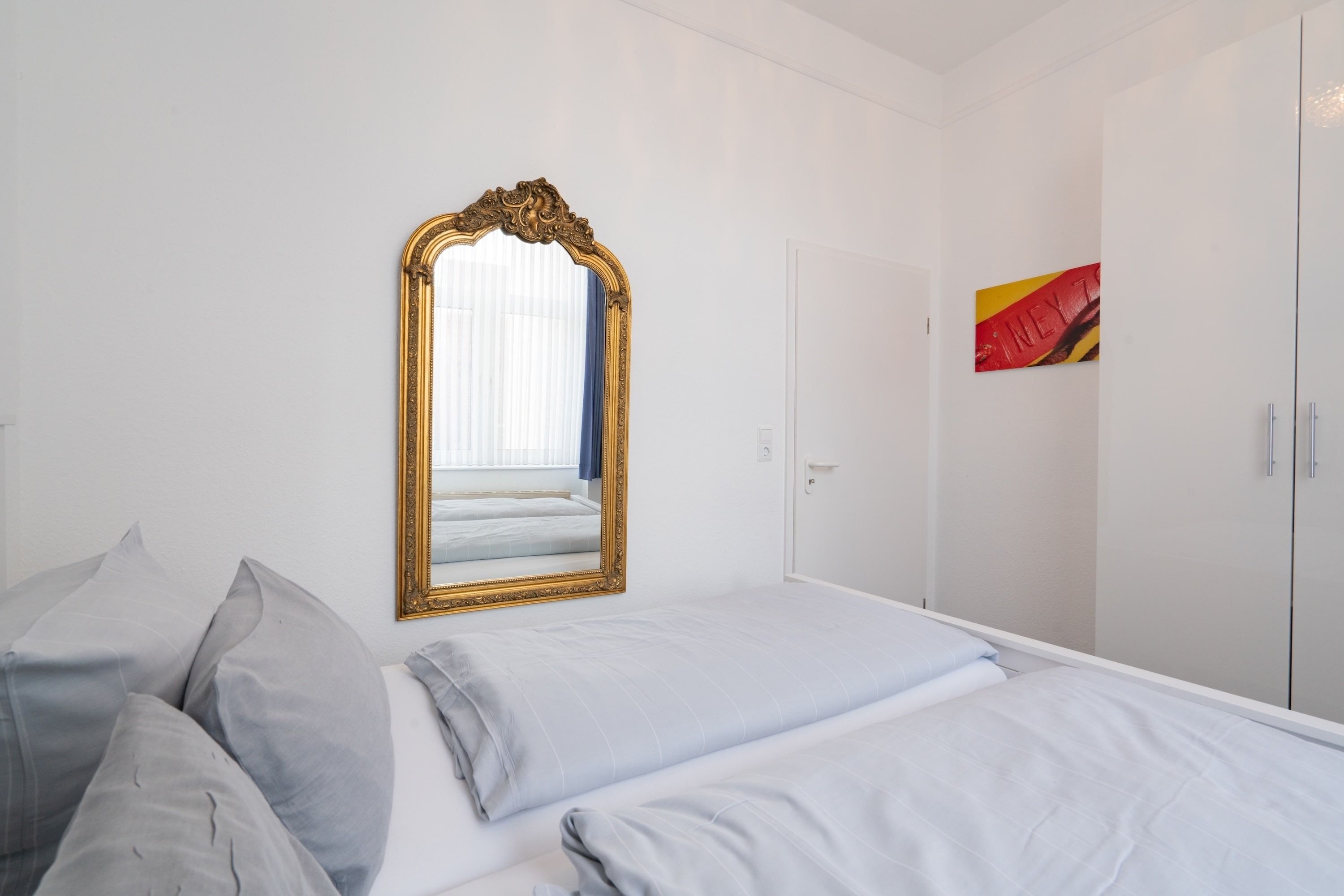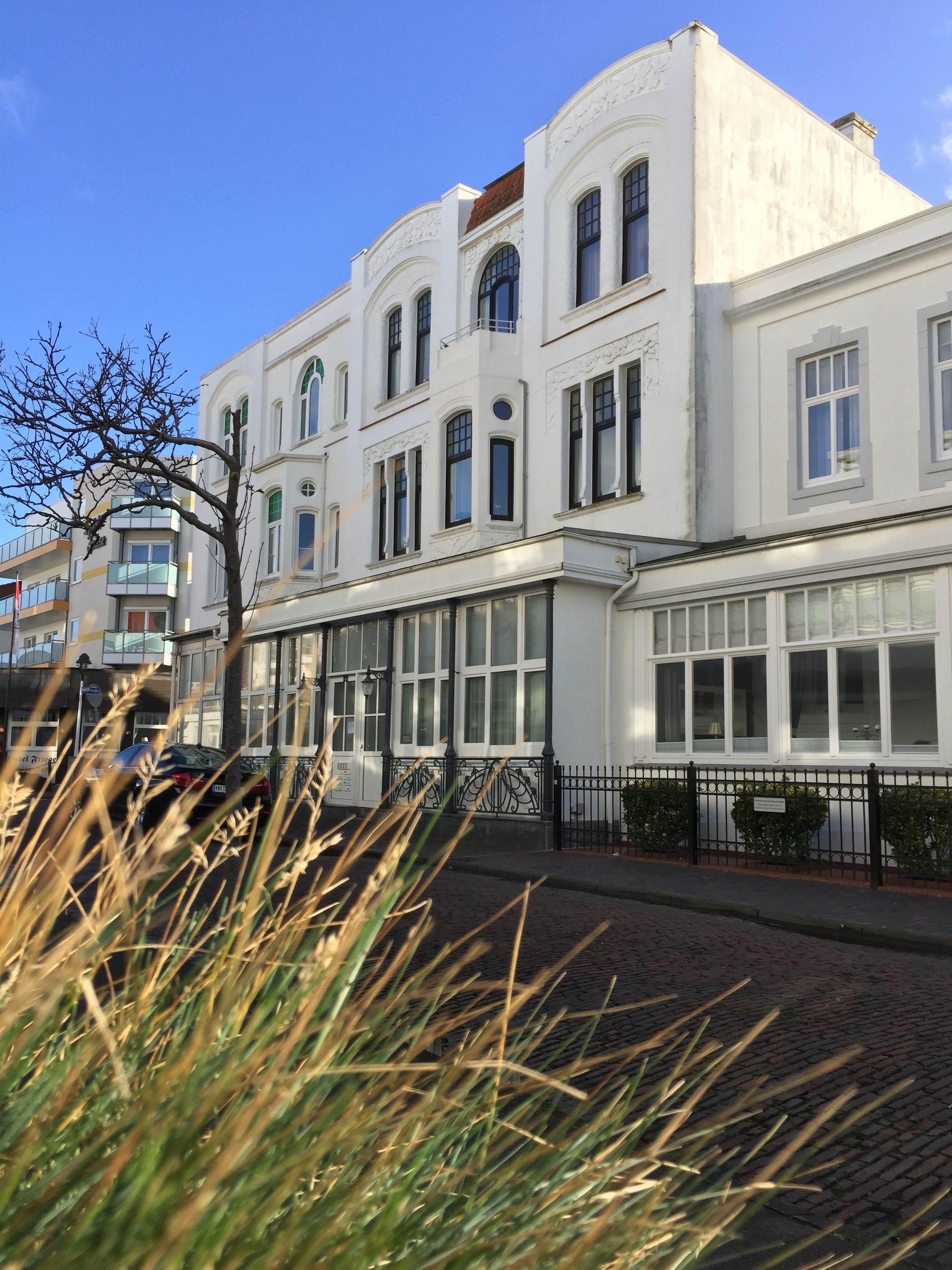 Im ruhigen, dem Weststrand zugewandten Teil der Friedrichstrasse von Norderney finden sich noch viele prachtvolle Häuser aus der Jahrhundertwende. Im Erdgeschoss und Hochparterre eines solchen Hauses liegt die Wohnung Friedrich II, ein 2-Zimmer-Apartmen mit einem ruhigen kleinen Schlafzimmer (Himmelbett 160 cm x 200 cm) und einem Wohnzimmer im Hochparterre sowie einem schönen Küchen-/Essbereich im Bereich der Veranda im Erdgeschoss. Das Haus verfügt über eine gemeinschaftlich nutzbare Waschmaschine und Wäschetrockner (Münzeinwurf).