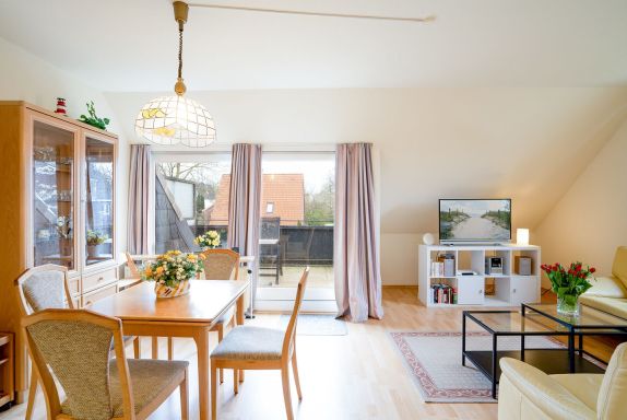 Am Wittinghaaf 1, ca. 50 m², 1. Etage, Wohn-Essbereich mit Sitzecke, WLAN, Kabel-TV , Hi-Fi-Anlage mit CD-Player und Radio, Essecke und integrierter Einbauküche, Mikrowelle, Backofen, Kühlschrank, Südbalkon, Schlafzimmer mit Doppelbett und Einzelbett, Dusche/WC, keine Haustiere, PKW-Stellplatz, Fahrradunterstellmöglichkeit, Bettwäsche und Handtücher bitte mitbringen oder spätestens zwei Tage vor Anreise gegen Gebühr bestellen.