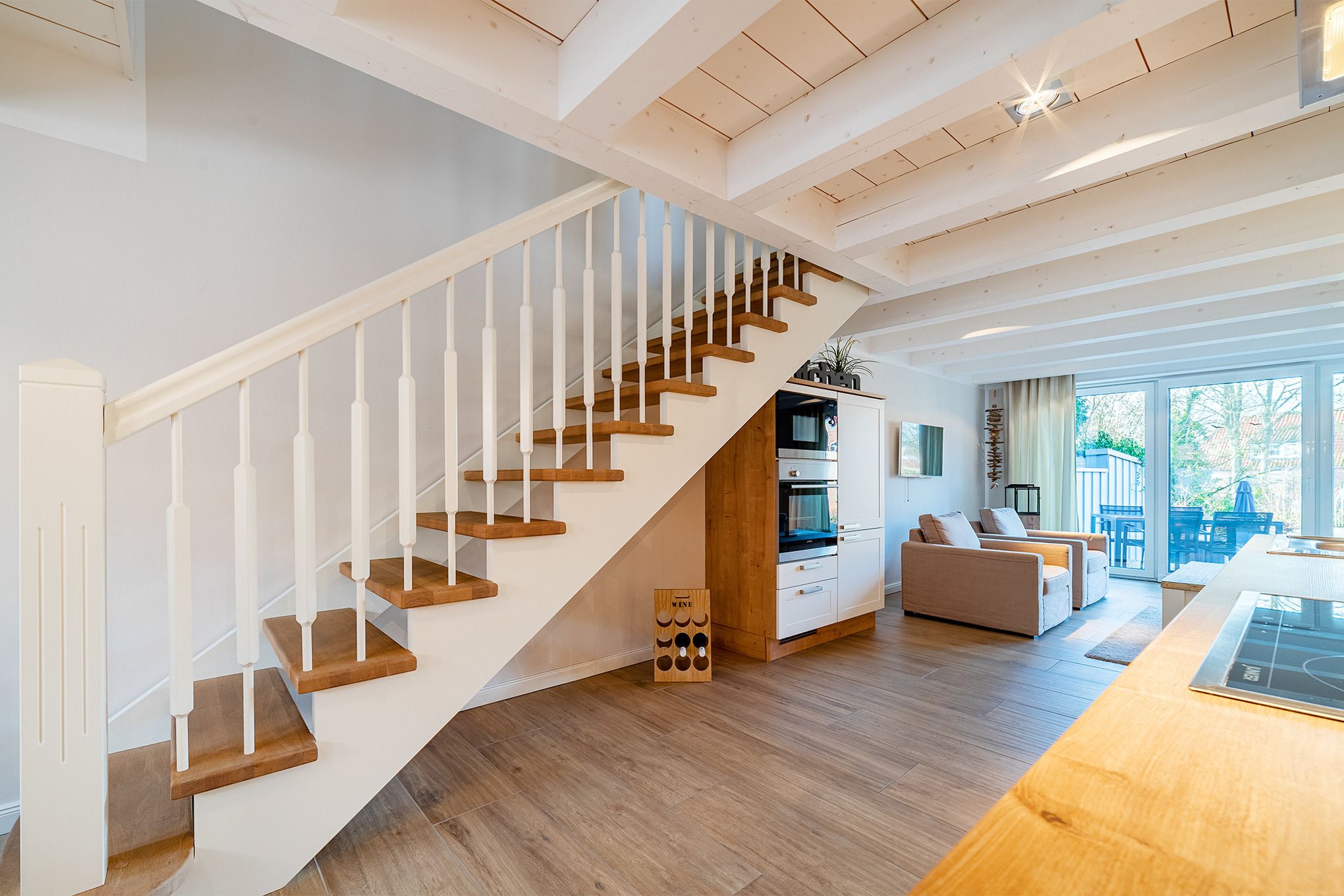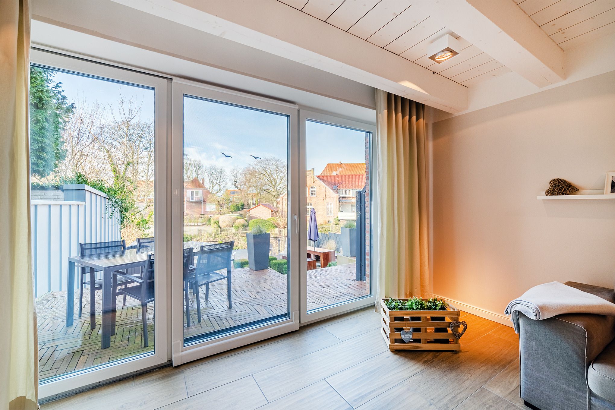 Das Haus am Siel besteht aus zwei Haushälften, hier ist die Linke beschrieben. Sollten Sie mit mehr als 4 Personen reisen, kann die zweite Haushälfte (Haus am Siel 02) zusätzlich gebucht werden, über die offen gestaltete Terrasse erreichen Sie beide Haushälften.