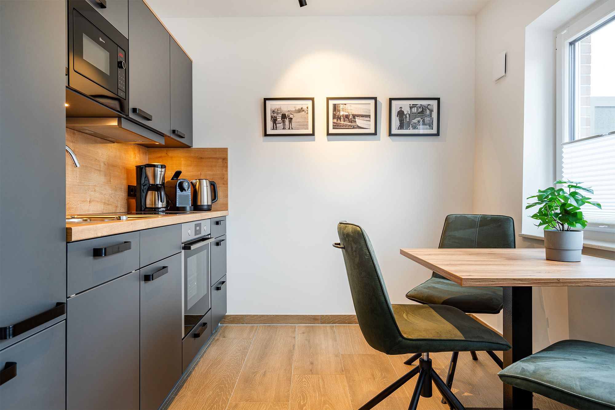 Sie wohnen gerne ganz zentral und wünschen es dennoch ruhig? Dann ist unsere Wohnung In't Dörp 1 perfekt für Sie! Denn egal ob zum Hafen, zu den Geschäften, Restaurants und Cafés oder zu den Zwillingsmühlen - alles ist nur einen Katzensprung entfernt, denn eine bessere Lage in Greetsiel findet man kaum. In zweiter Lage in der Mühlenstraße gelegen verfügt diese frisch sanierte Erdgeschoss Wohnung sogar über einen eigenen kleinen Garten mit Terrasse und einen Parkplatz direkt am Haus. Somit ist sie vor allem für Gäste, die nicht mehr so gut zu Fuß sind das ideale Urlaubsdomizil. Auf etwa 55qm bietet sie einen gemütlichen Wohnraum, eine helle, modern und voll ausgestattete separate Küche mit Esstisch, ein Schlafzimmer, ein großzügiges Badezimmer sowie einen kleinen Abstellraum. Sie ist mit viel Liebe zum Detail ausgestattet und die ausgewählten Bilder zeigen alte traditionelle Schauplätze Greetsiels.