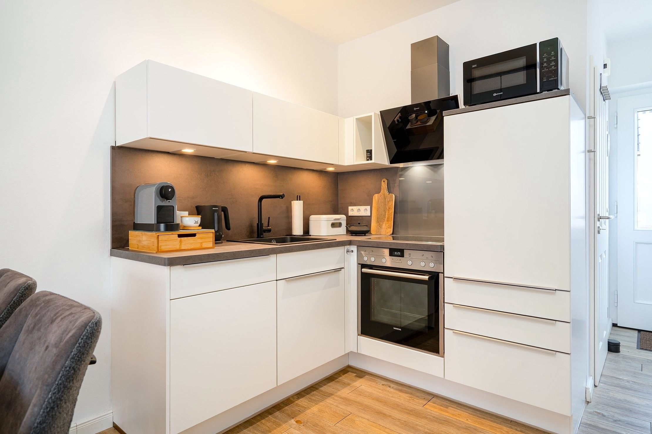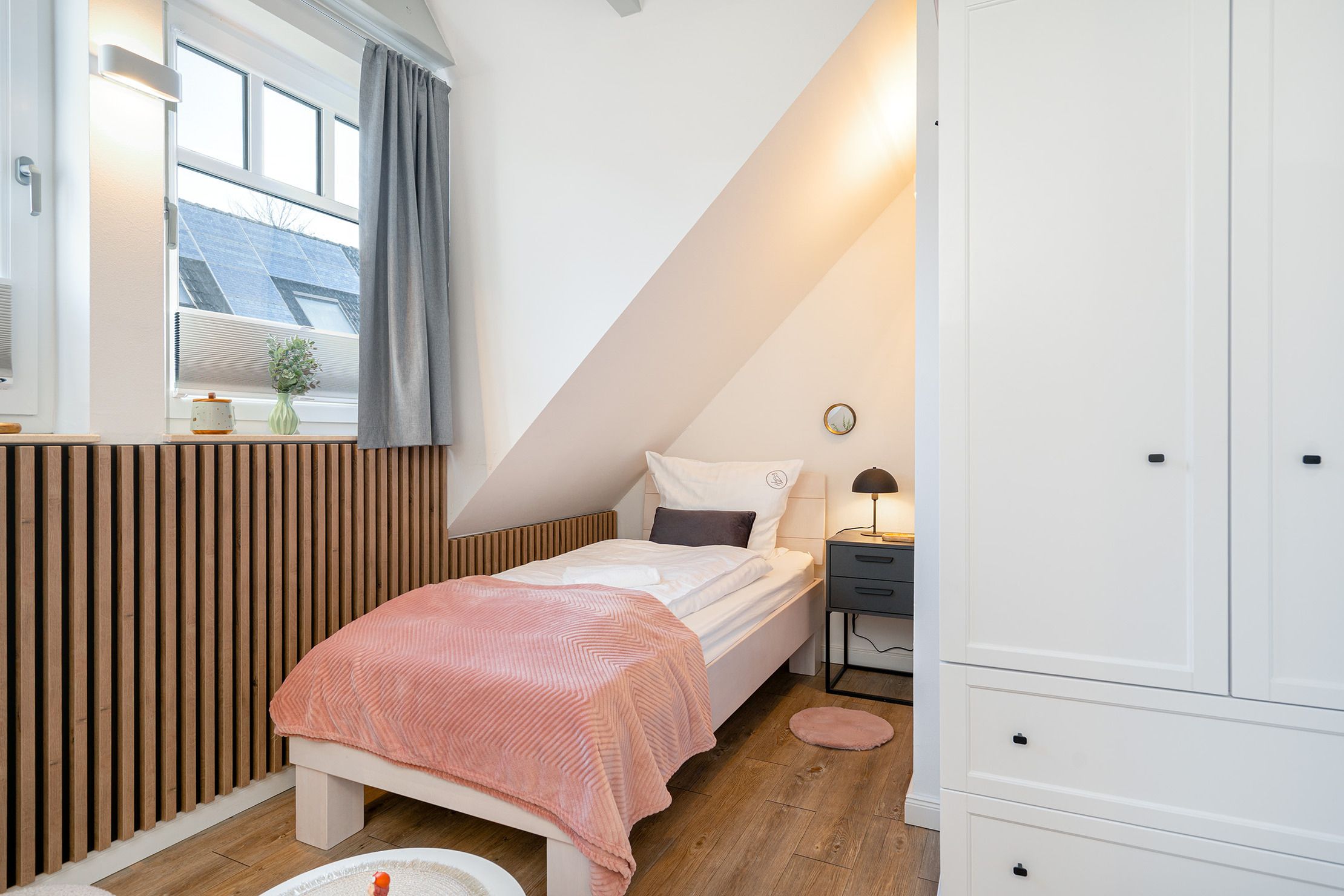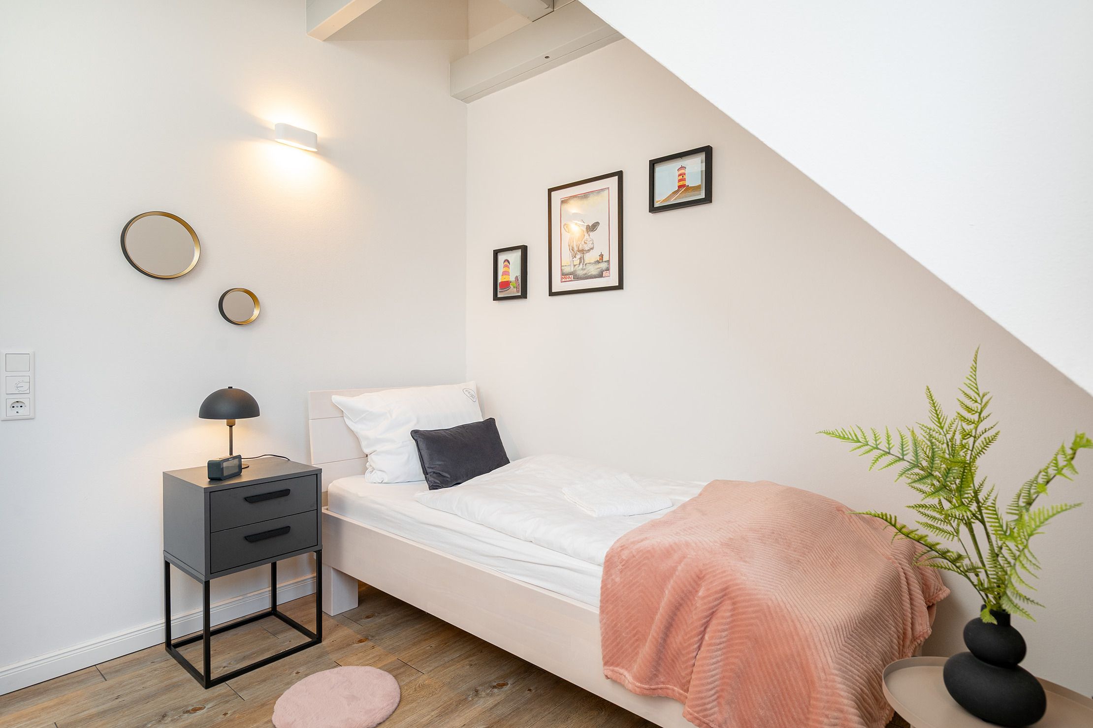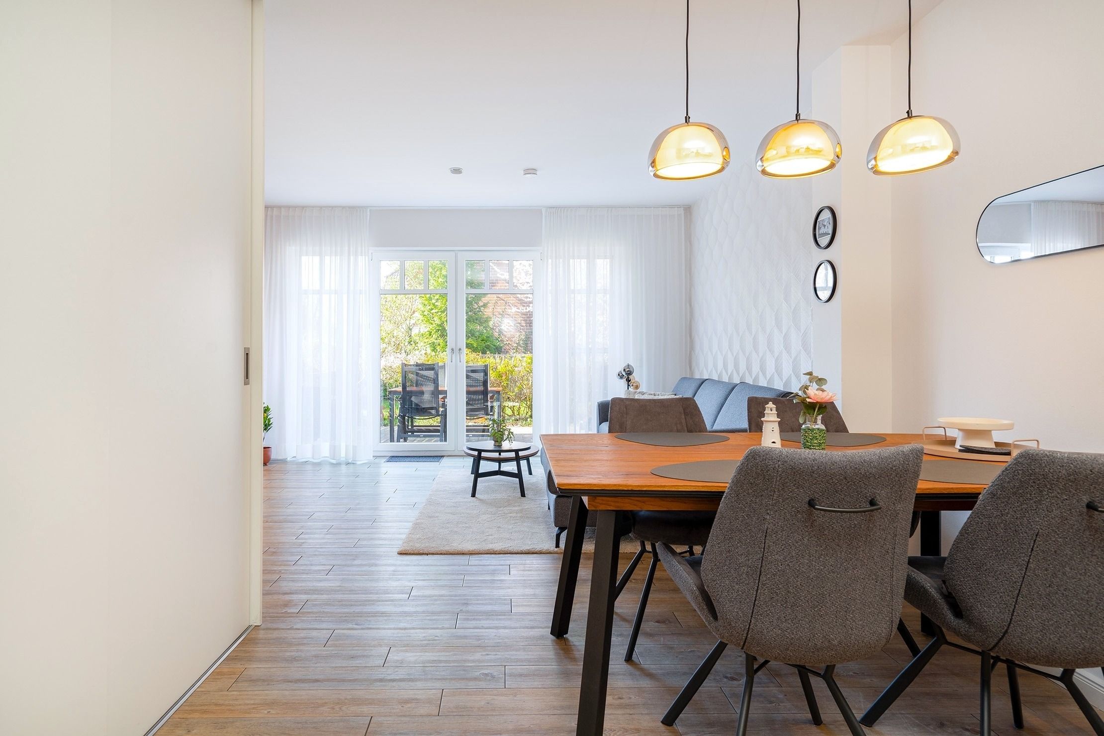 Das frisch renovierte Reihenmittelhaus Lütt Wulkje (ehemals Brigg) in der zentral gelegenen Dollartstraße bietet den perfekten Ausgangspunkt für einen entspannten und erlebnisreichen Urlaub an der Nordseeküste. Mit 80qm Wohnfläche ist dieses liebevoll gestaltete Ferienhaus ideal für Familien oder Paare, die eine gemütliche und moderne Unterkunft suchen. Im Erdgeschoss erwartet Sie ein großzügiger, offener Wohnbereich mit gemütlicher Sofalandschaft sowie einer Einbauküche. Weiterhin finden Sie ein modernes Tageslichtbad mit ebenerdiger Dusche sowie einen praktischen Abstellraum mit Waschmaschine. Im Obergeschoss befinden sich zwei behagliche Schlafzimmer, eins mit komfortablen Doppelbett sowie eins mit zwei Einzelbetten, ideal für Kinder oder Freunde. Ein weiteres Tageslichtbad auf dieser Etage macht die Ausstattung des Hauses perfekt und bietet eine angenehme Privatsphäre für alle Gäste. Die Terrasse mit kleinem Garten für entspannte Stunden bei einer Tasse Tee gehört, neben einem Gemeinschaftsgarten für die drei nebeneinander gelegenen Ferienhäuser, zu Ihrem Feriendomizil dazu. Auch ein privater Parkplatz steht selbstverständlich zur Verfügung.