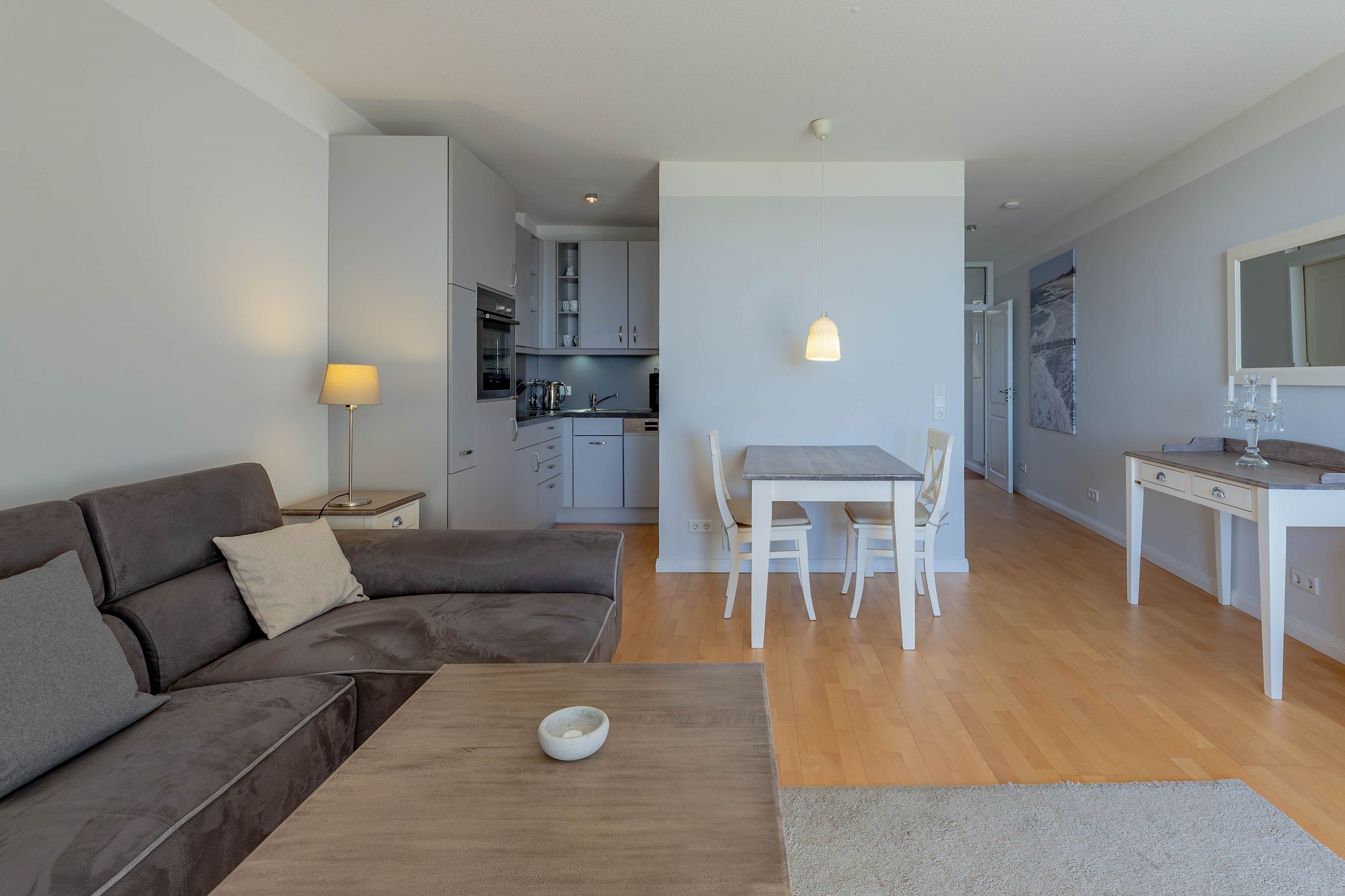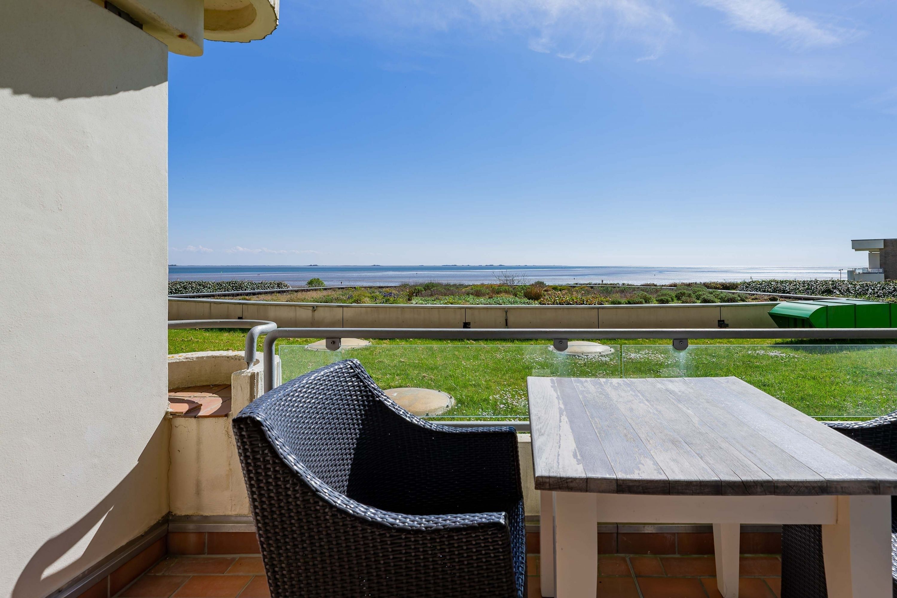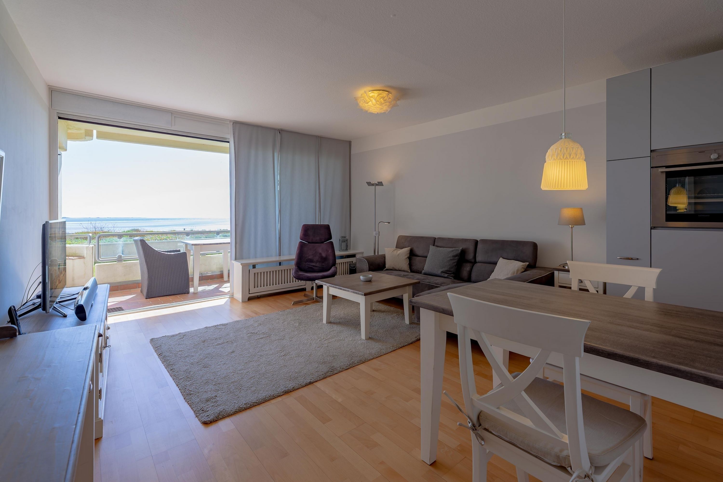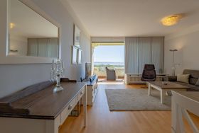 Die bekannte und sehr beliebte Ferienwohnanlage Bi de Wyk liegt direkt am Südstrand von Wyk und bietet Ihnen einen herrlichen Blick über die Nordsee zu den Halligen und nach Amrum. Sowohl Einkaufsmöglichkeiten, als auch Restaurants, Kurmittelhaus und die Bushaltestelle befinden sich in unmittelbarer Umgebung - ein Urlaub ohne Auto wäre somit problemlos möglich. An Wellness-Angeboten steht im Haus ein Schwimmbad zur kostenfreien Nutzung und eine Sauna (mit Gebühr) zur Verfügung. Die Wohnung ist geschmackvoll eingerichtet und mit einer hochwertigen Küchenausstattung bestückt. Sie befindet sich im mittleren Teil des Gebäudes in Hochpaterre.