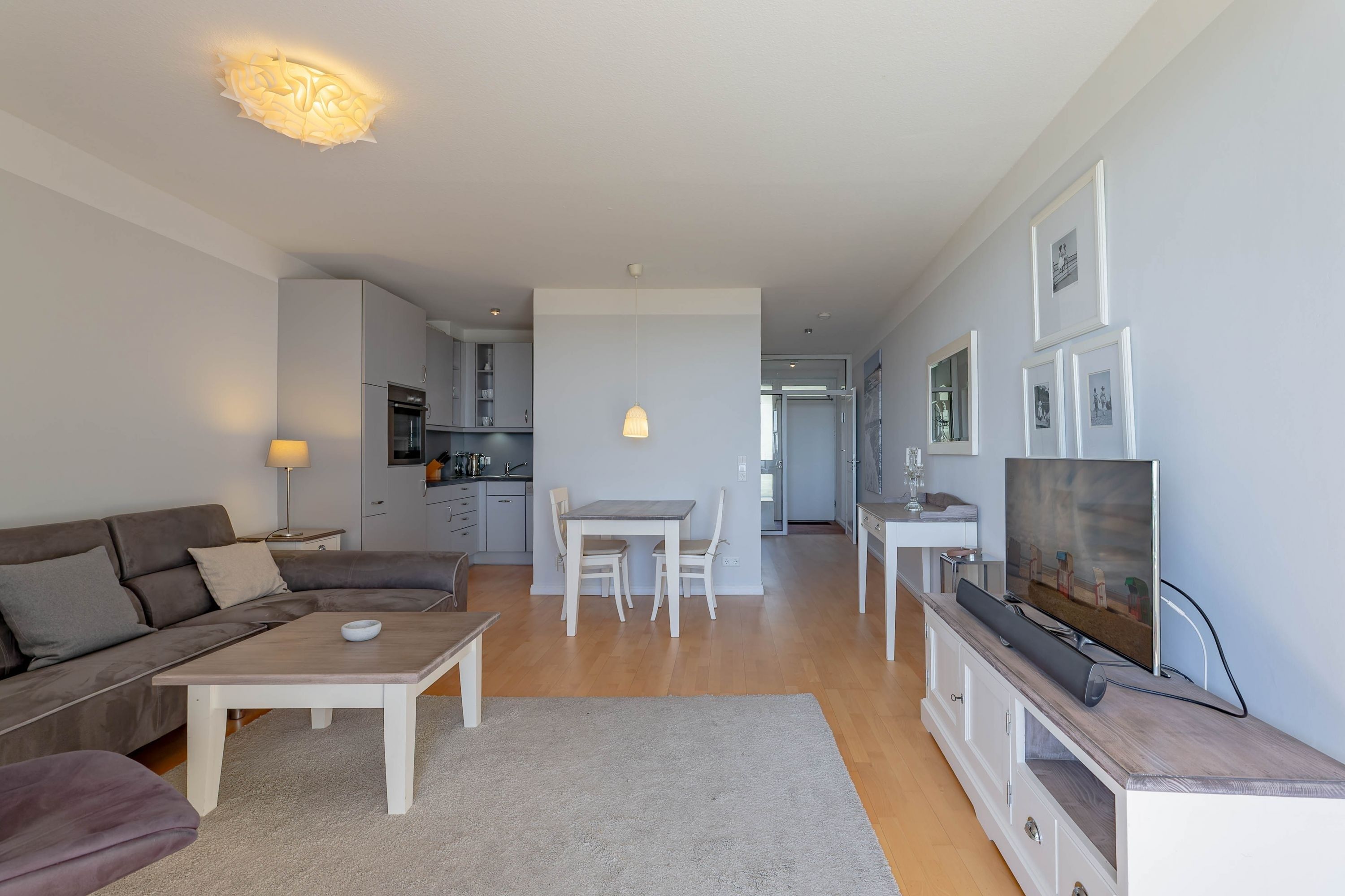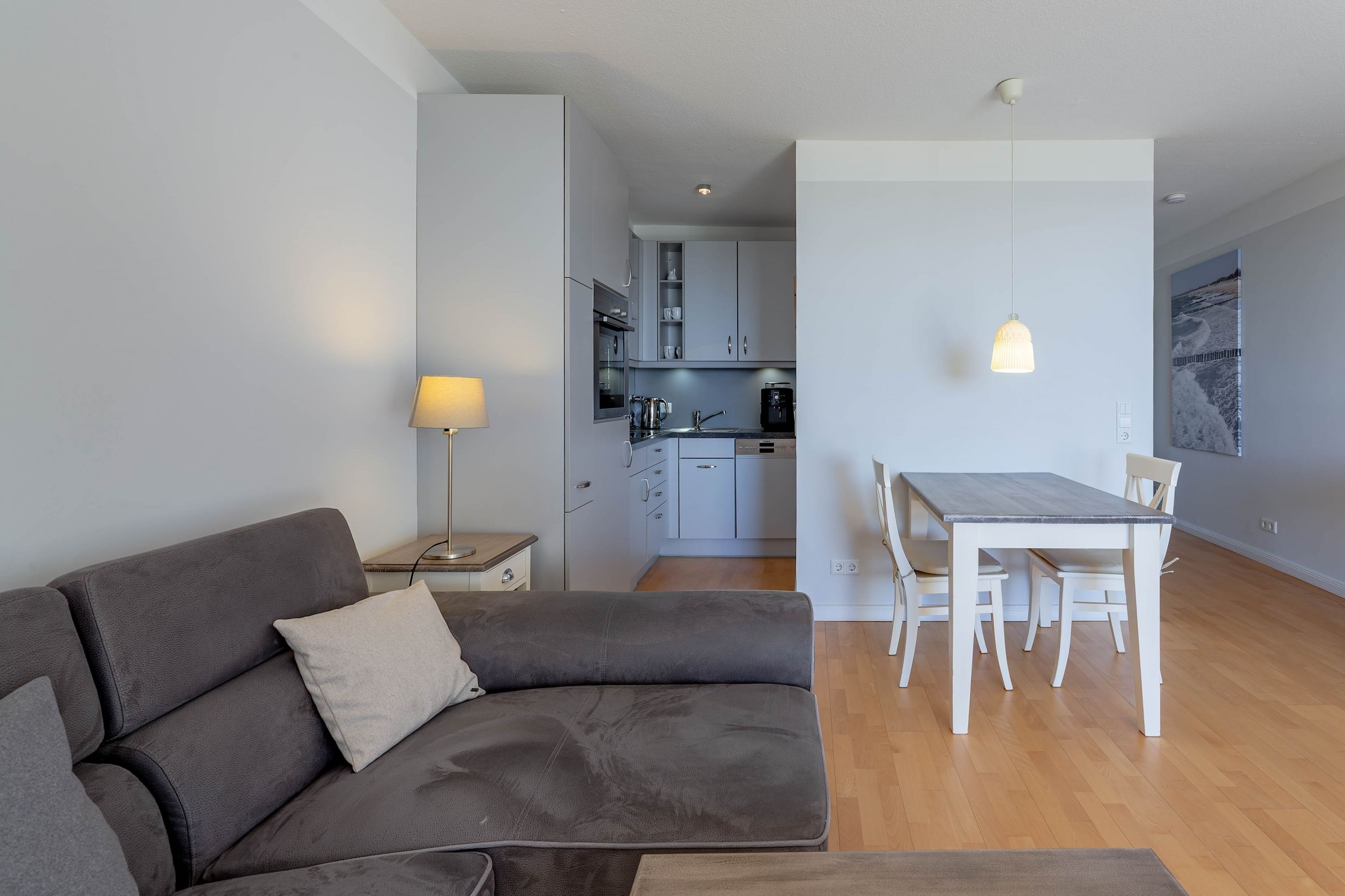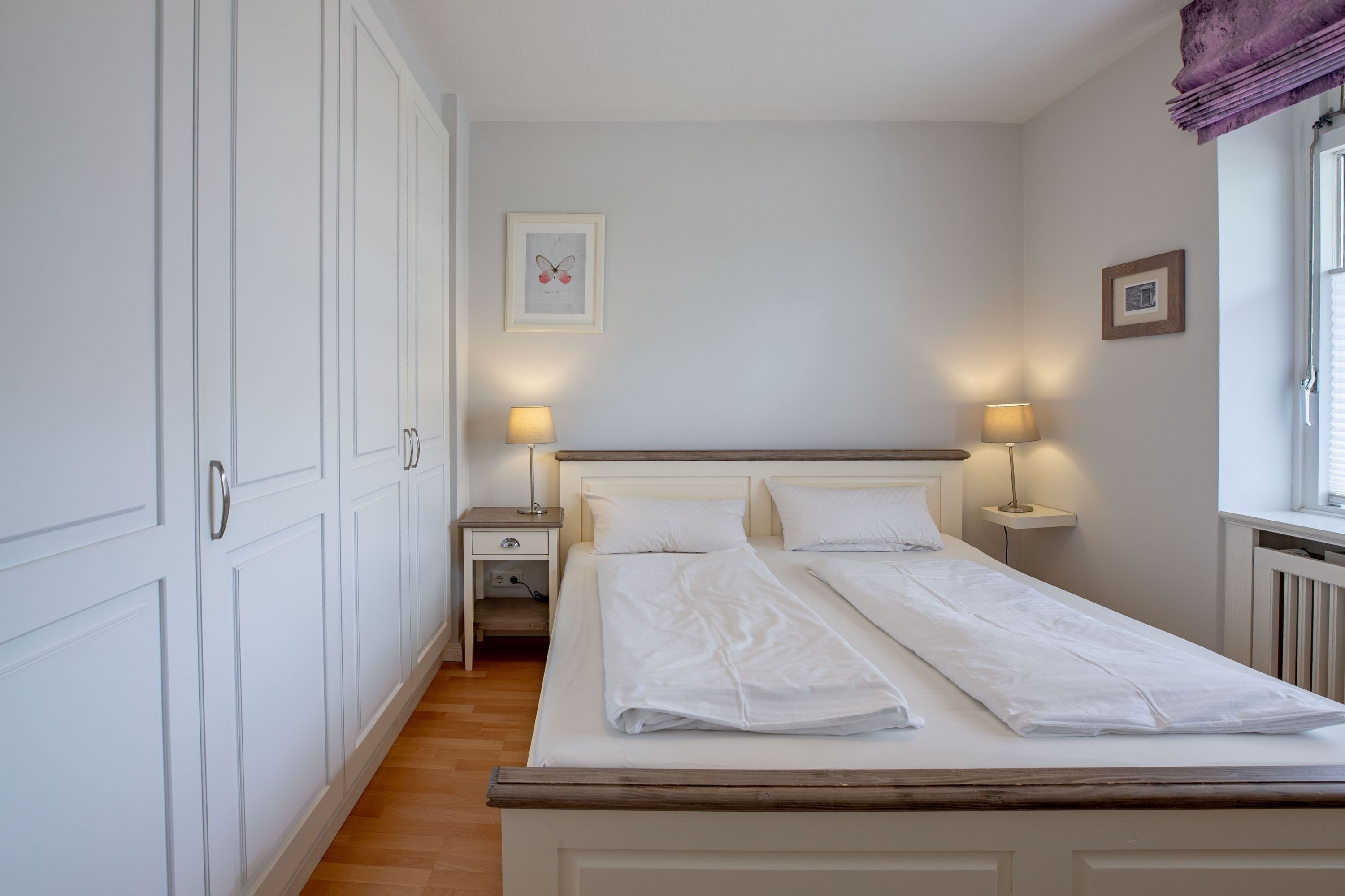 Die bekannte und sehr beliebte Ferienwohnanlage Bi de Wyk liegt direkt am Südstrand von Wyk und bietet Ihnen einen herrlichen Blick über die Nordsee zu den Halligen und nach Amrum. Sowohl Einkaufsmöglichkeiten, als auch Restaurants, Kurmittelhaus und die Bushaltestelle befinden sich in unmittelbarer Umgebung - ein Urlaub ohne Auto wäre somit problemlos möglich. An Wellness-Angeboten steht im Haus ein Schwimmbad zur kostenfreien Nutzung und eine Sauna (mit Gebühr) zur Verfügung. Die Wohnung ist geschmackvoll eingerichtet und mit einer hochwertigen Küchenausstattung bestückt. Sie befindet sich im mittleren Teil des Gebäudes in Hochpaterre.