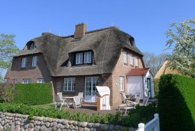 Ihr Urlaub im Haus Alkersum. In dieser Doppelhaushälfte unter Reet werden Sie sich sicher wohlfühlen. Der großzügige Garten und die traumhafte Randlage an der Marsch bieten Ihnen ein Umfeld, wie Sie es auf der Insel Föhr nicht oft wiederfinden. Hier werden Sie gelassen und entspannt Ihren Urlaub verbringen, weit weg vom Trubel der Großstadt. Im kleinen Örtchen Alkersum befindet sich das weitbekannte Museum Kunst der Westküste mit wechselnden Ausstellungen, das immer einen Besuch wert ist. Ein Bäcker, ein Hofladen und ein Reiterhof runden den Ortsdurchgang ab. Wem das nicht reicht, der kommt im nahe gelegenen Friesenort Nieblum sicher auf seine Kosten oder startet gleich ins ca. 5 km entfernt gelegene Städtchen Wyk.