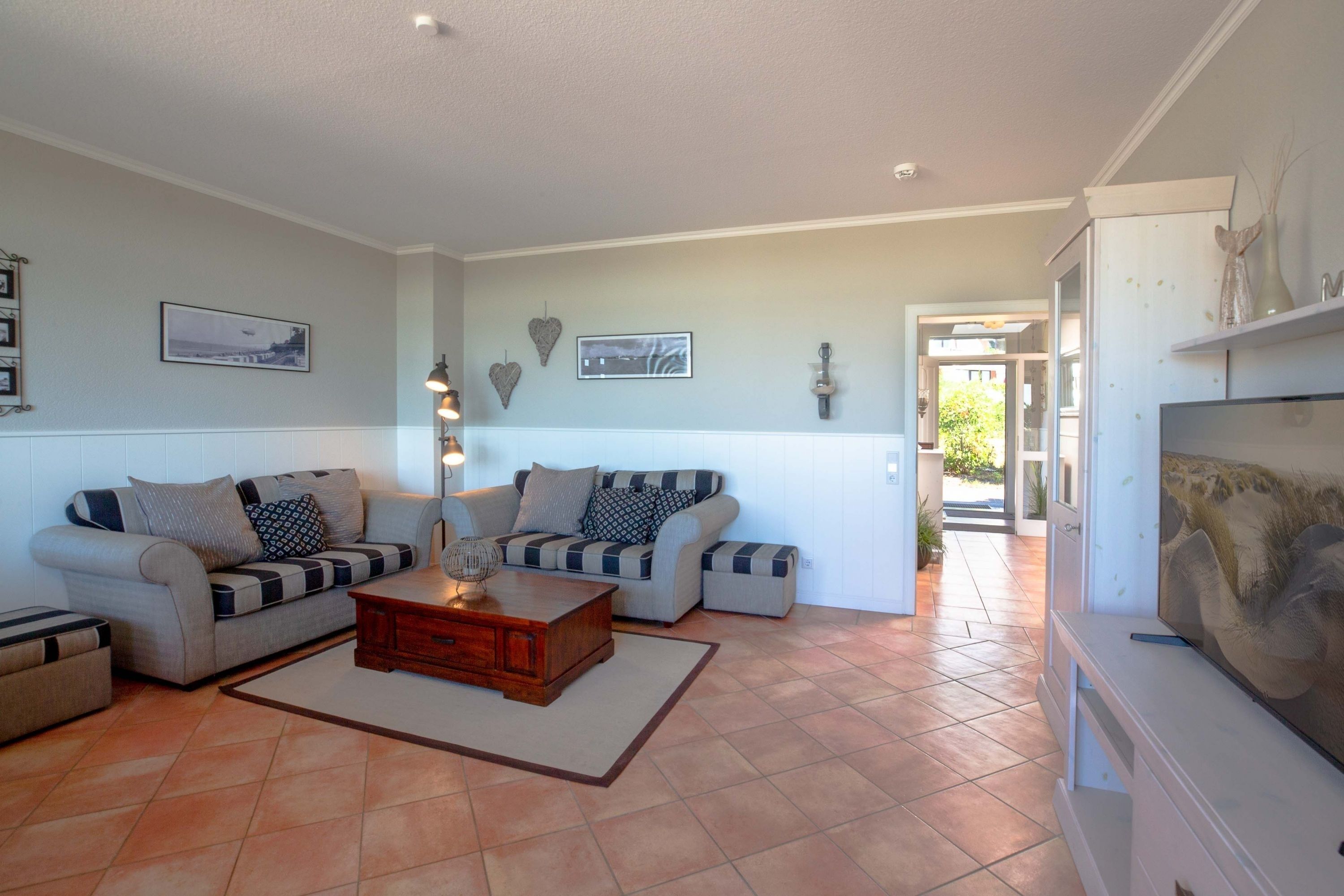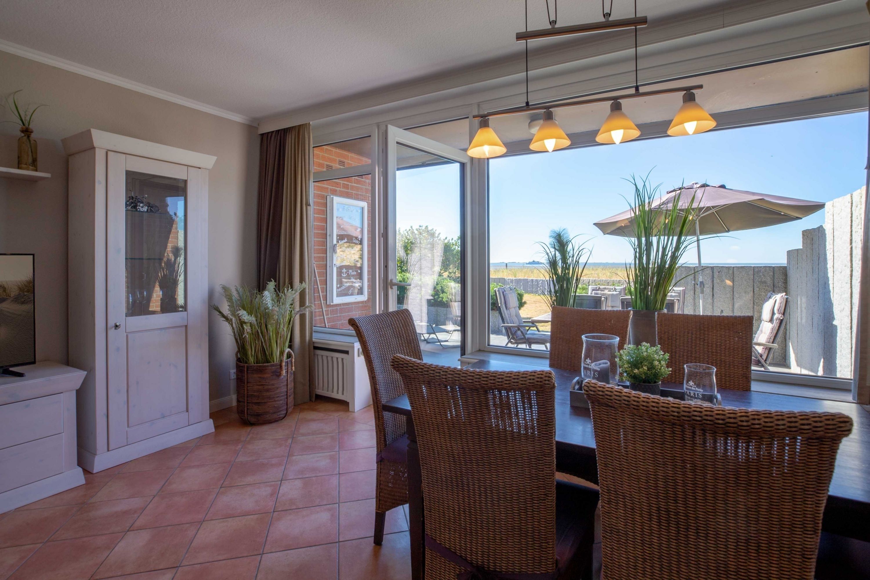 Atmen Sie tief durch und schließen Sie für einen Moment die Augen. Hören Sie das Rufen der Austernfischer nach ihren Jungen, schmecken Sie das Salz auf Ihren Lippen, spüren Sie den Wind in Ihren Haaren?!! Ja, Sie befinden sich unmittelbar am Meer - aber im Garten unseres gepflegten Bungalows, nur wenige Schritte vom Strand und Meer entfernt. In nächster Nähe liegt Greveling mit seinen kleinen Warften. Von der Terrasse aus blicken Sie auf eine kleine Hausdüne. Die 100 qm Wohnfläche sind geschmackvoll eingerichtet, ein überdachtes Schwimmbad sowie ein Saunabereich im Nebenhaus unterstreichen das Ambiente und lassen Sie so richtig abschalten.