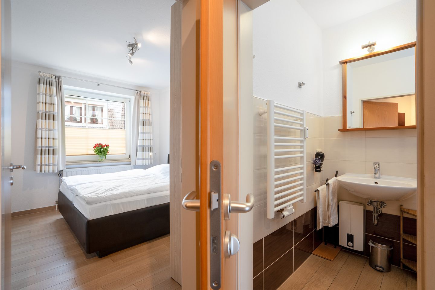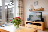 Dr.-Karl-Krause-Straße 5, ca. 45 m², Hochparterre, Terrasse, Wohnzimmer mit Schlafcouch, TV mit DVD Player, Stereoanlage mit CD-Player, Safe, WLAN, Einbauküche mit Backofen und Geschirrspüler, Essplatz, Schlafzimmer mit Doppelbett und TV, Dusche/WC, Haartrockner, Münzwaschautomat und -trockner im Keller, Fahrradraum, Duplex-Garage (bis 1,50 m Fahrzeughöhe), keine Haustiere, Bettwäsche und Handtücher bitte mitbringen oder spätestens zwei Tage vor Anreise gegen Gebühr bestellen.