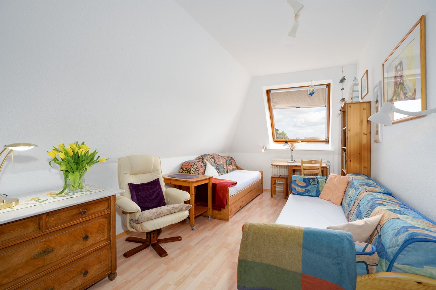 Dr. Karl-Krause-Straße 7, ca. 55 m², 1. Etage, Balkon, Wohnzimmer mit Schlafcouch und SAT-TV, DVD-Player, Radio, WLAN, integrierte Einbauküche mit Essplatz, Geschirrspüler, Backofen, Mikrowelle, Schlafzimmer mit Doppelbett (elektr. Rollläden), Schlafzimmer mit zwei Einzelbetten (Verdunkelungsrollo) über Galerietreppe erreichbar. Dusche/WC, Haartrockner, Münzwaschautomat und -trockner im Keller, Duplex-Garage (bis 1,50 m Höhe, 1,90 m Breite; 5,00 m Länge), keine Haustiere, Bettwäsche und Handtücher bitte mitbringen oder spätestens zwei Tage vor Anreise gegen Gebühr bestellen.