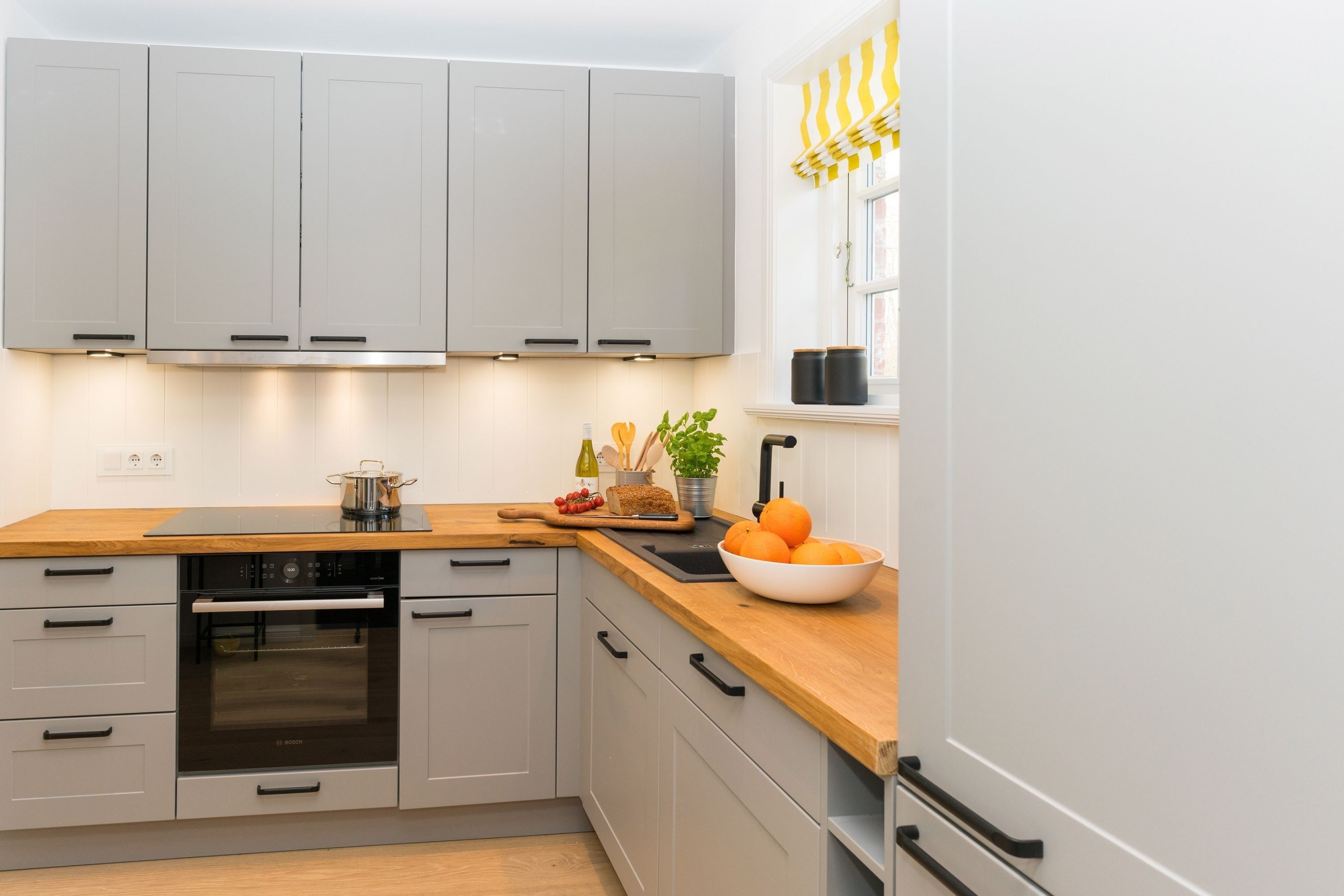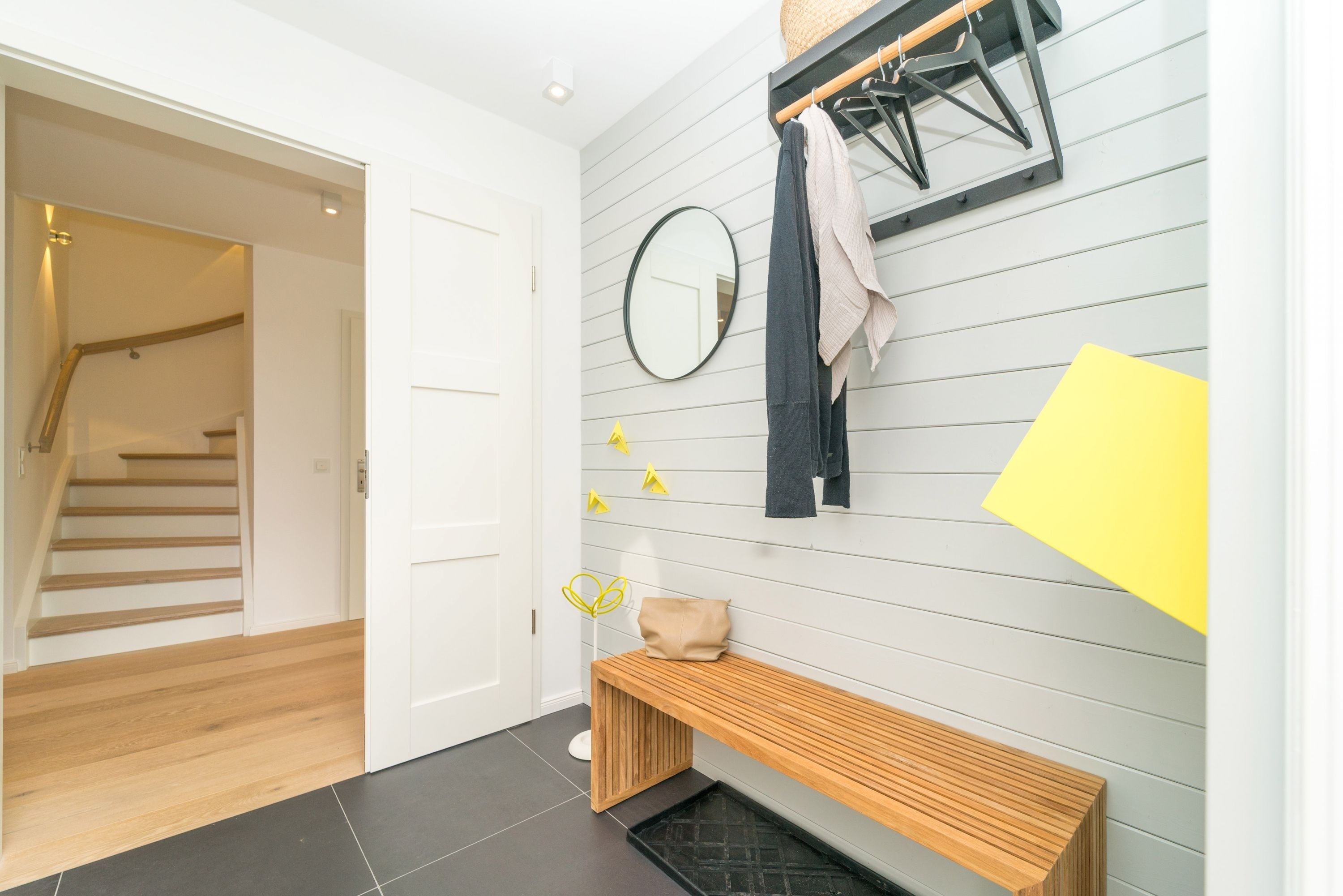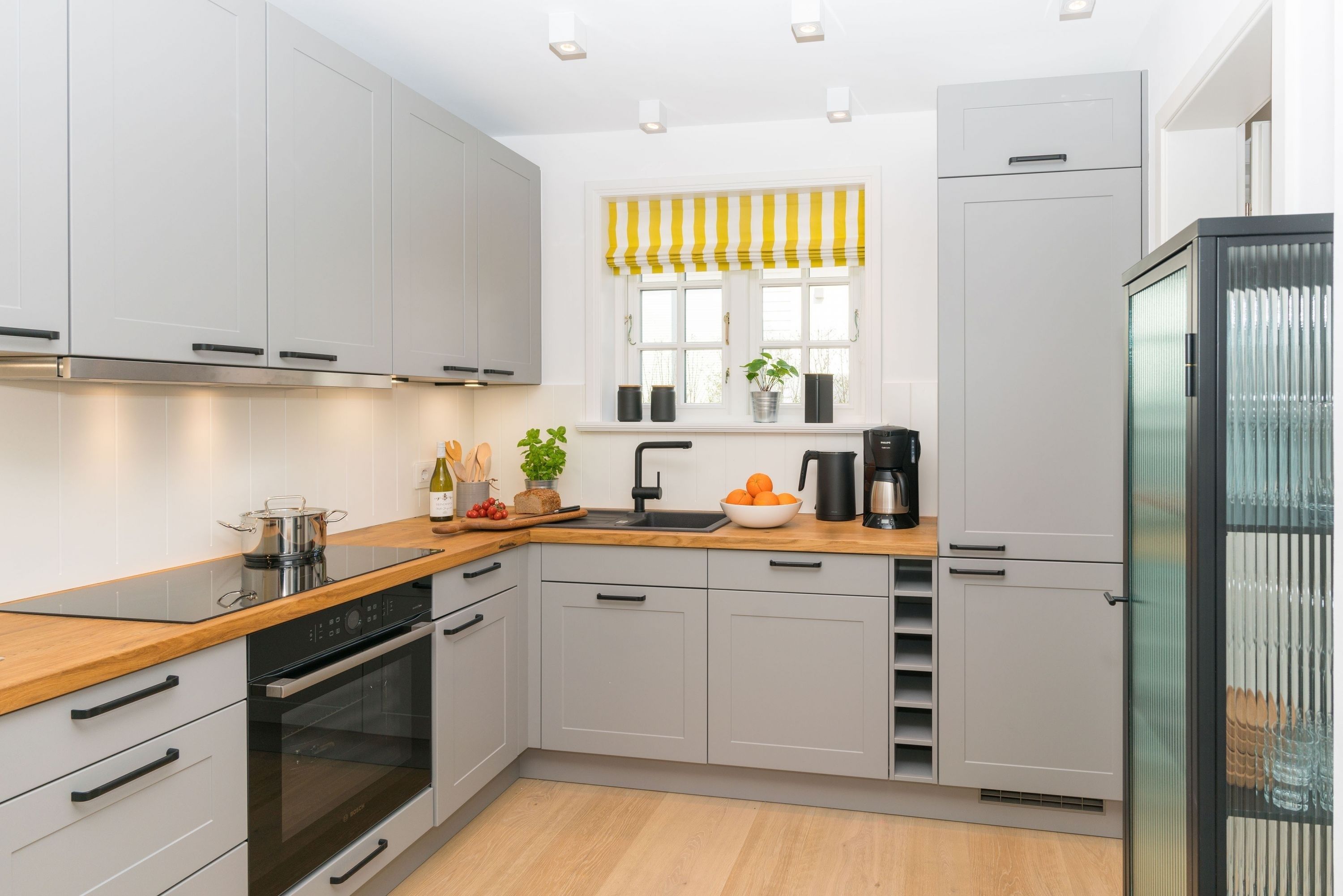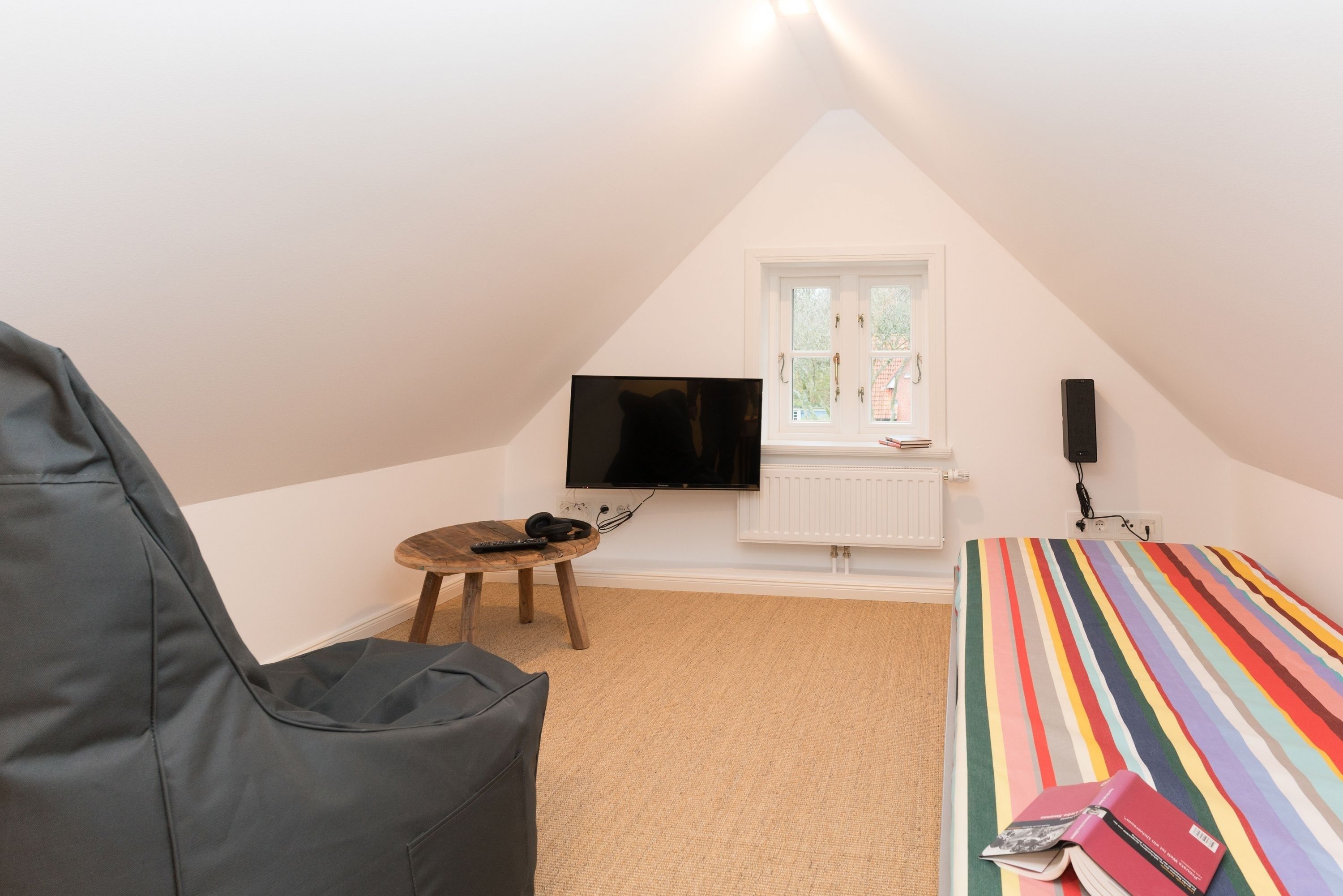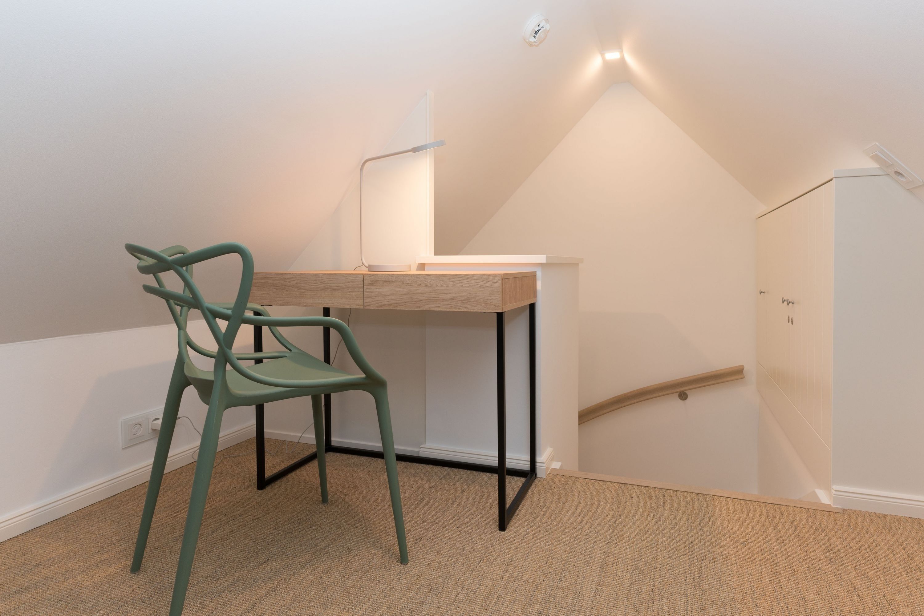 Ferienhaus Leichte Brise Meer, Sonne und immer eine leichte Brise - das ist Föhr und das ist die ruhig und zentral gelegene Leichte Brise“ in Wyk. Moderne, klare Linien, nordische Leichtigkeit, massive Eichendielen und Designklassiker auf 105 qm über 3 Etagen als perfekte Urlaubsbasis für 4 Erwachsene und 1 Kleinkind (bis 3J.). Große Fensterflächen, Artemide und Gubi Leuchten schaffen lichtdurchflutete Räume. Im Erdgeschoss treffen USM Haller und Panton Stühle auf einen alten Eichentisch und eine Küche mit kompletter Ausstattung. Zwei gemütliche Sofas und ein moderner Ohrensessel sind die Relaxgrundlage für Fernsehabende, Lesestunden oder ein gutes Glas Wein am knisternden Kamin. Die Schlafzimmer jeweils mit Bettwäsche in Komfortgröße (155x220) und En-suite Bäder mit großer Dusche, versprechen Erholung im Schlaf. Und falls es im Urlaub doch mal eine E-Mail zu schreiben gibt, finden Sie einen kleinen Arbeitsplatz im Dachgeschoß. Die nach Süden ausgerichtete Terrasse mit großem Tisch und Standkorb schließt die Hausführung ab.