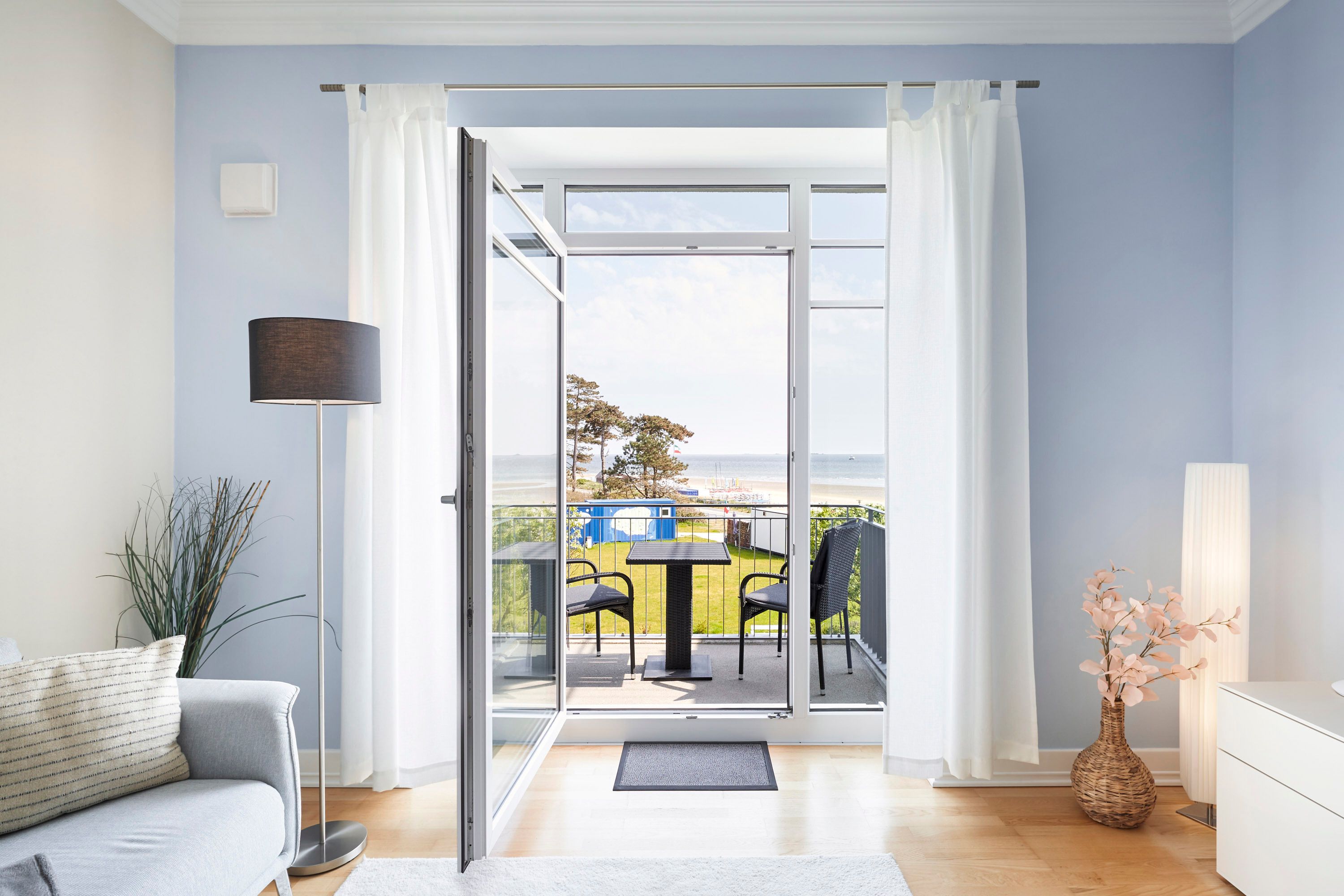 Wir haben unseren Beitrag dafür geleistet und unsere Wohnung für Sie mit viel Liebe, Geschmack und gutem Still eingerichtet. Es wird Ihnen an nichts fehlen. Wir haben sehr hochwertige Einrichtungsgegenstände ausgewählt. Vom Sofa aus können Sie das Meer, die Halligen und Fähren sehen sowie die Gezeiten beobachten. Starten Sie Ihre Urlaubstage bereits morgens mit den ersten Sonnenstrahlen und einem netten Frühstück auf Ihrem windgeschützten Balkon in der zweiten Etage. Der Parkettboden mit Fußbodenheizung, harmonische Farben und ausgesuchte Bilder schaffen eine Wohlfühlatmosphäre. Nur ein kurzer Spaziergang führt Sie in den Stadtkern von Wyk mit vielen Geschäften, Cafés und Restaurants. Wir freuen uns auf Sie.