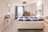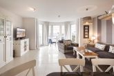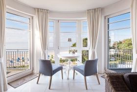 Wir begrüßen Sie im Schloß am Meer, der exklusiven Wohnanlage direkt am Wyker-Südstrand. Ihre Wohnung liegt im 3. Obergeschoss hinter der historischen Fassade, welche beim Neubau erhalten wurde. Hier laden zwei Balkone ein, den Blick auf die Nordsee und die Halligen zu genießen. Ein einzigartiger Panoramablick erwartet Sie. Genießen Sie die Sonne schon beim Frühstück! In nur wenigen Schritten befinden Sie sich auf der Promenade, die Sie ins Herz von Wyk führt. Hier laden Geschäfte zum Bummeln ein, in Cafes und Restaurants werden Sie mit kulinarischen Köstlichkeiten verwöhnt.