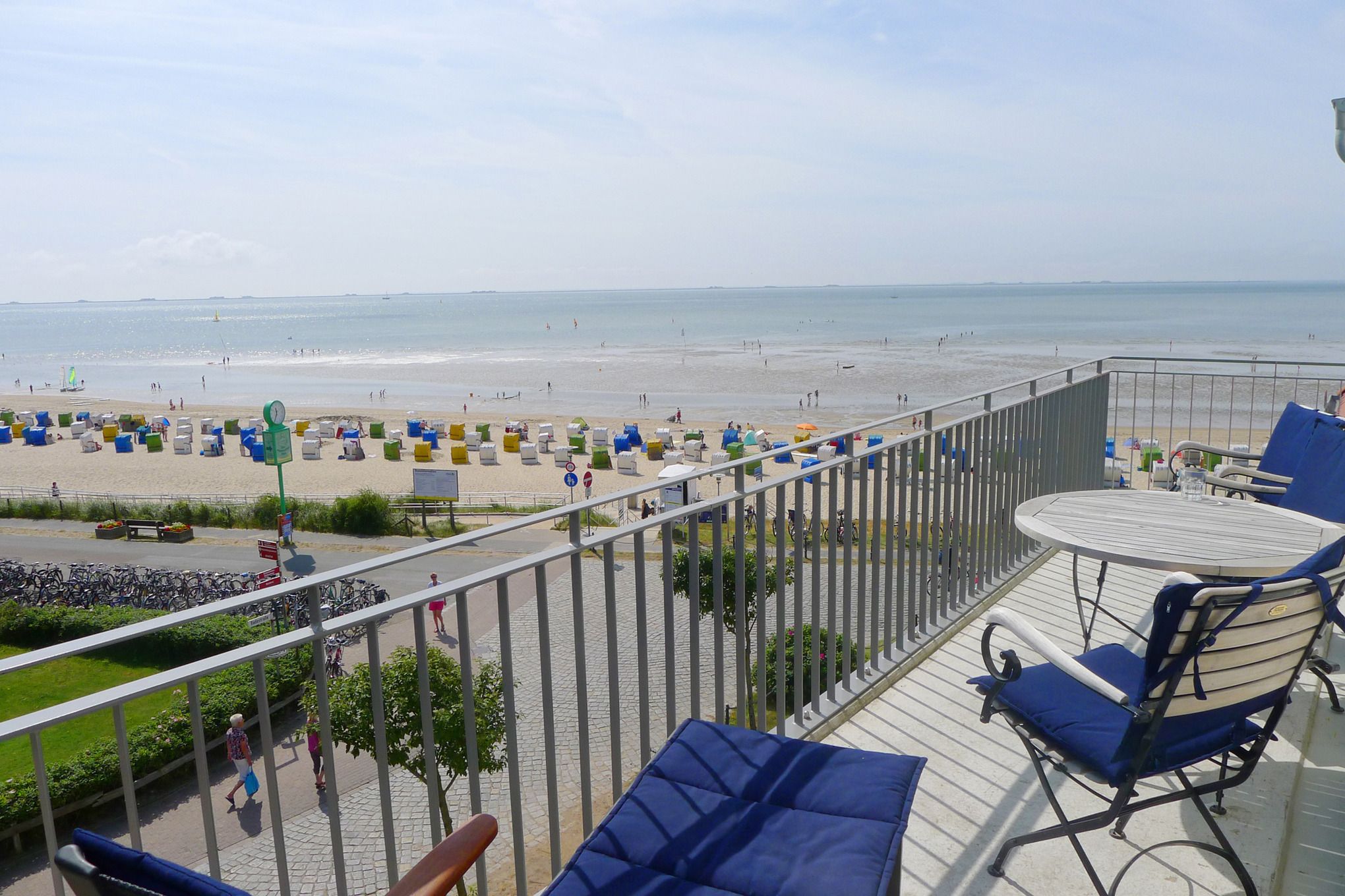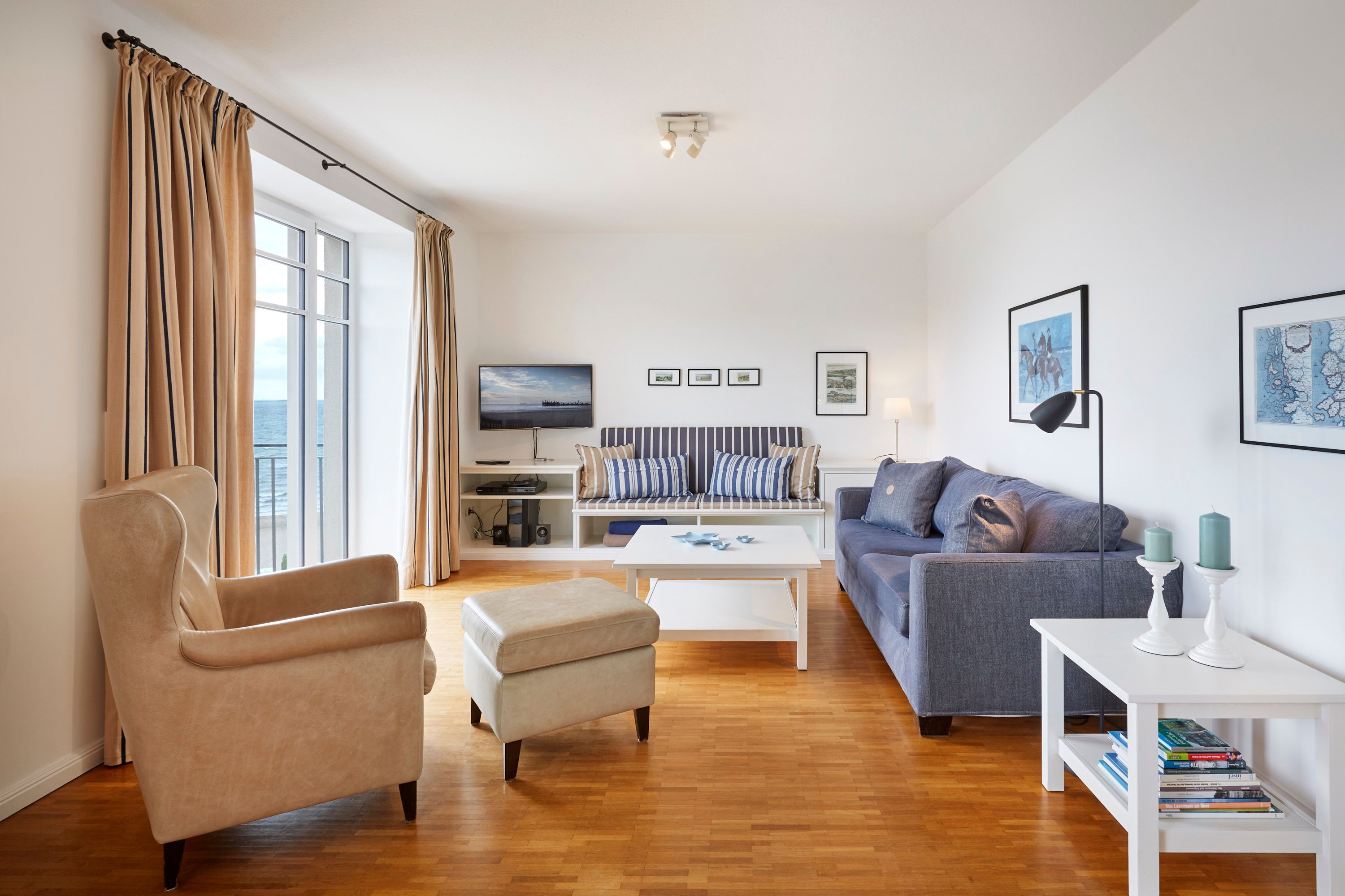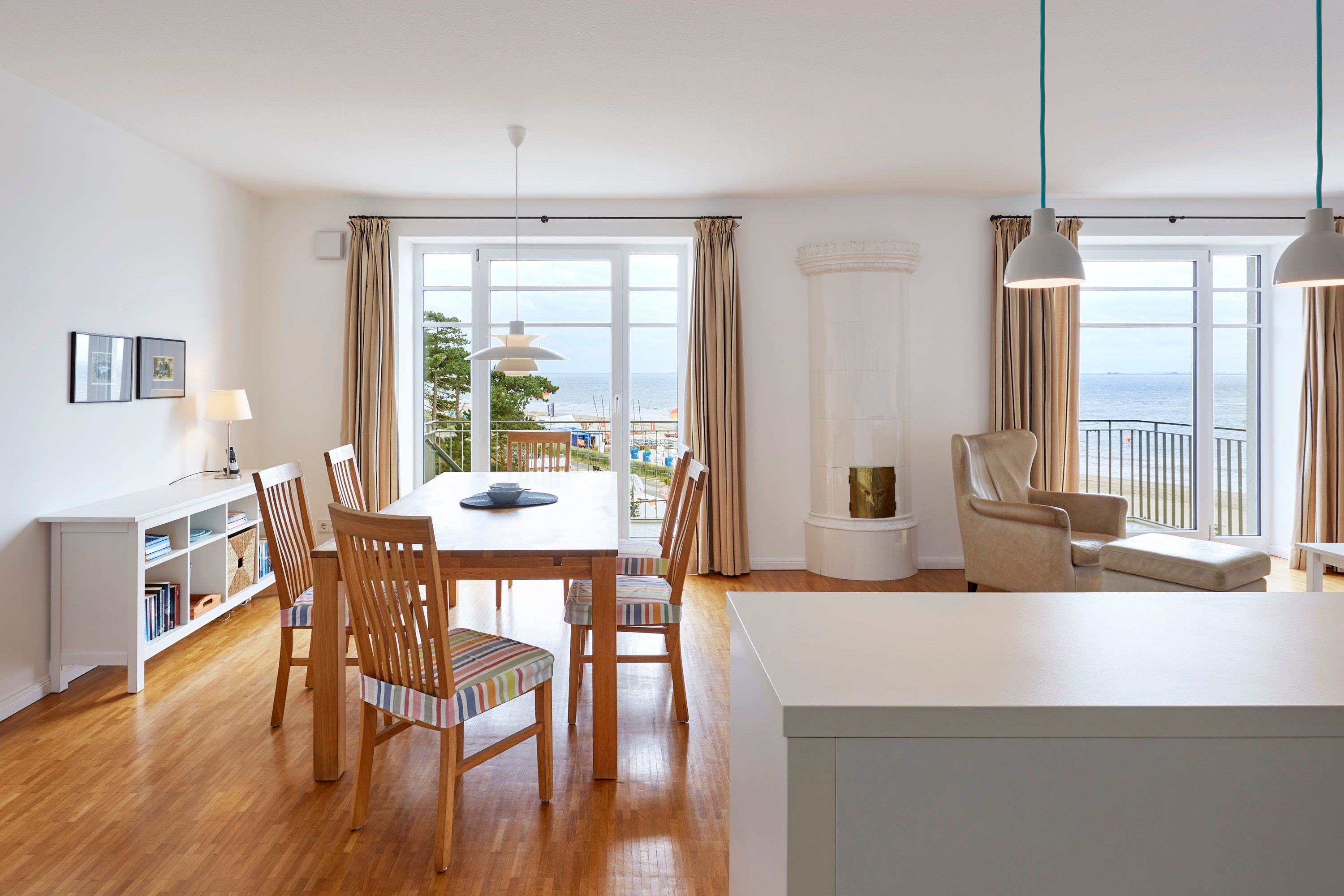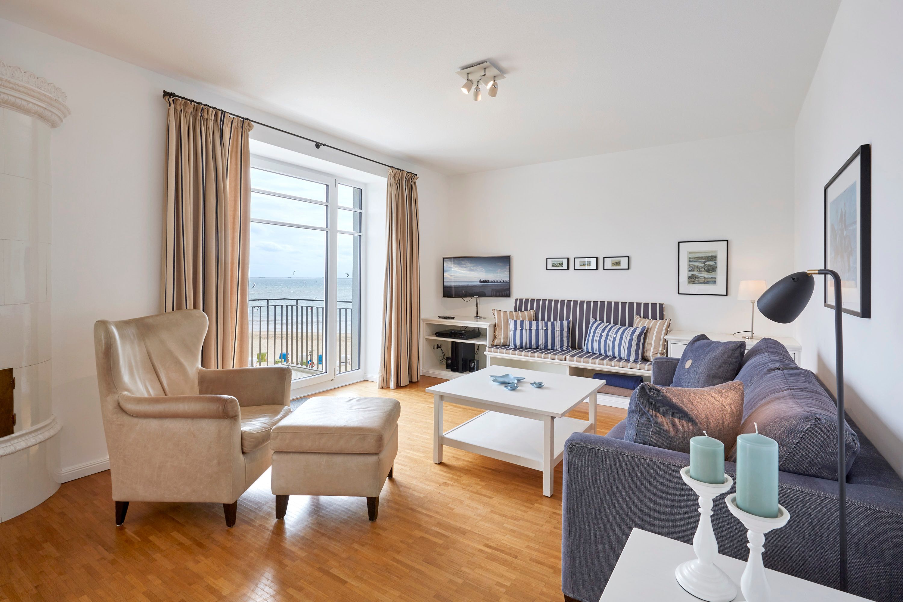 Wir begrüßen Sie im Schloß am Meer, der exklusiven Wohnanlage direkt am Wyker-Südstrand gelegen. Ihre Wohnung liegt im 3 Obergeschoss hinter der historischen Fassade, welche beim Neubau erhalten wurde. Hier haben Sie einen Balkon für sich allein und einen Blick auf die Nordsee und die Halligen. Dieser einzigartige Panoramablick ist unvergesslich. In nur wenigen Schritten befinden Sie sich auf der Promenade, die Sie ins Herz von Wyk führt. Hier laden Geschäfte zum Bummeln ein, Cafes und Restaurants verwöhnen Sie mit kulinarischen Köstlichkeiten.