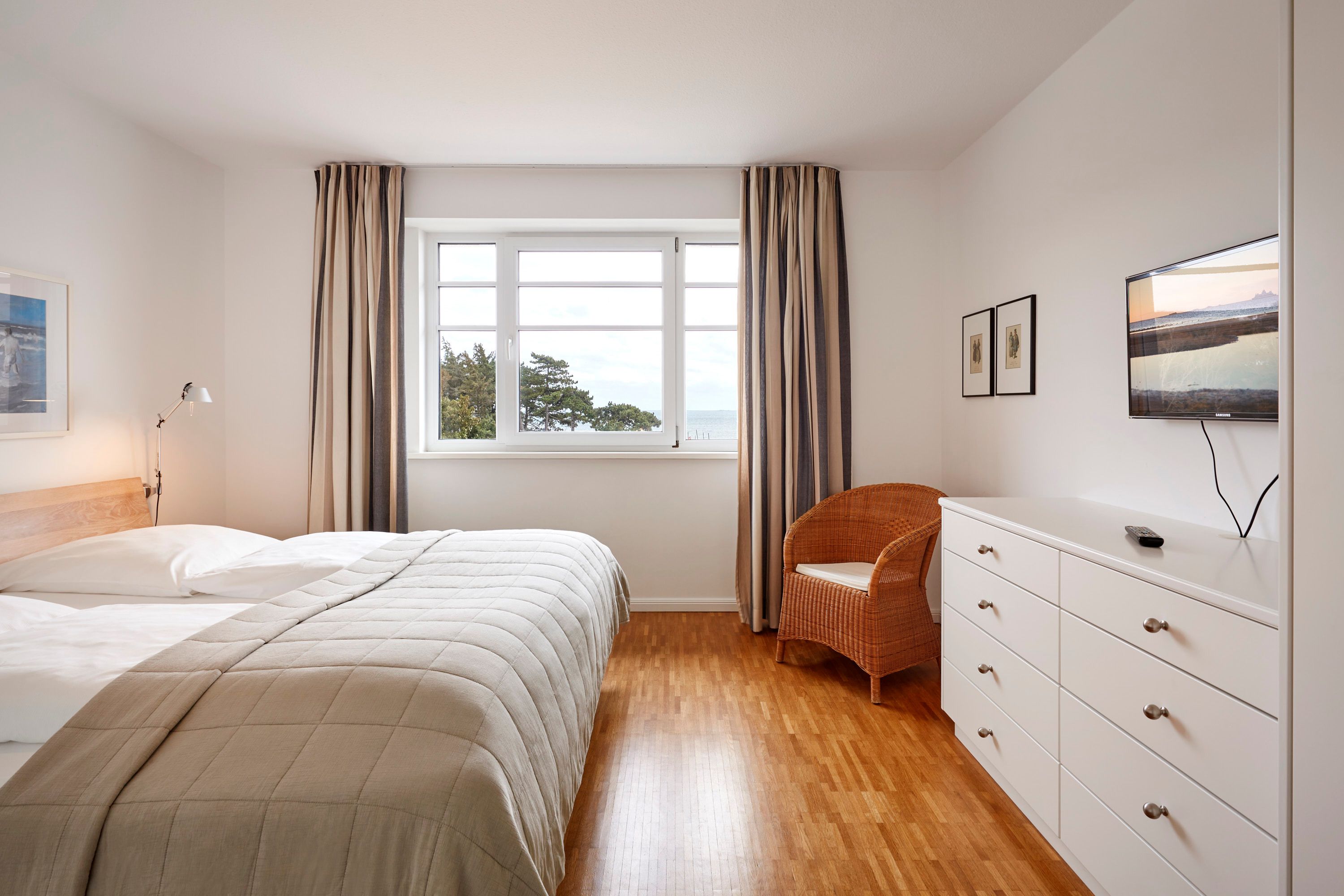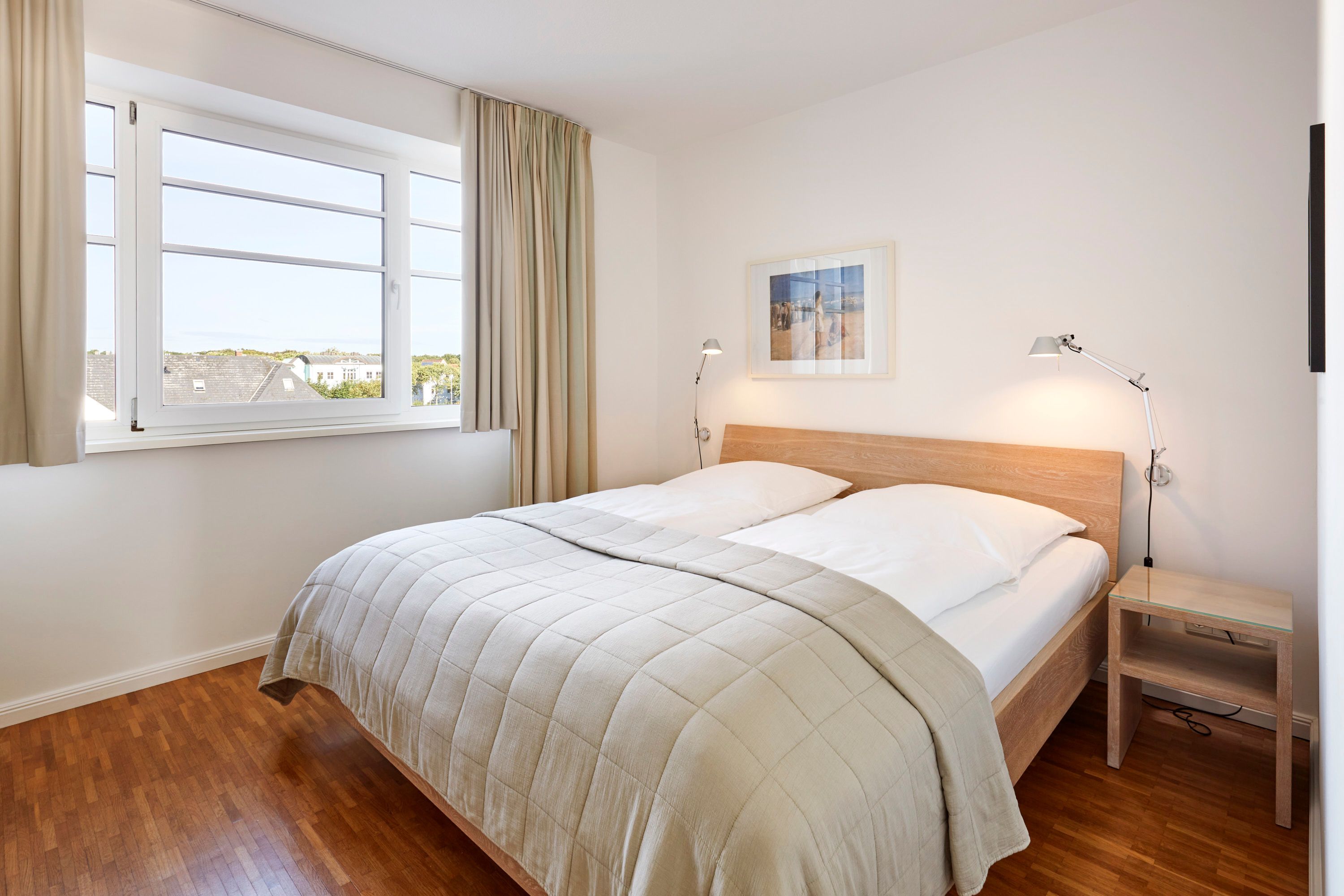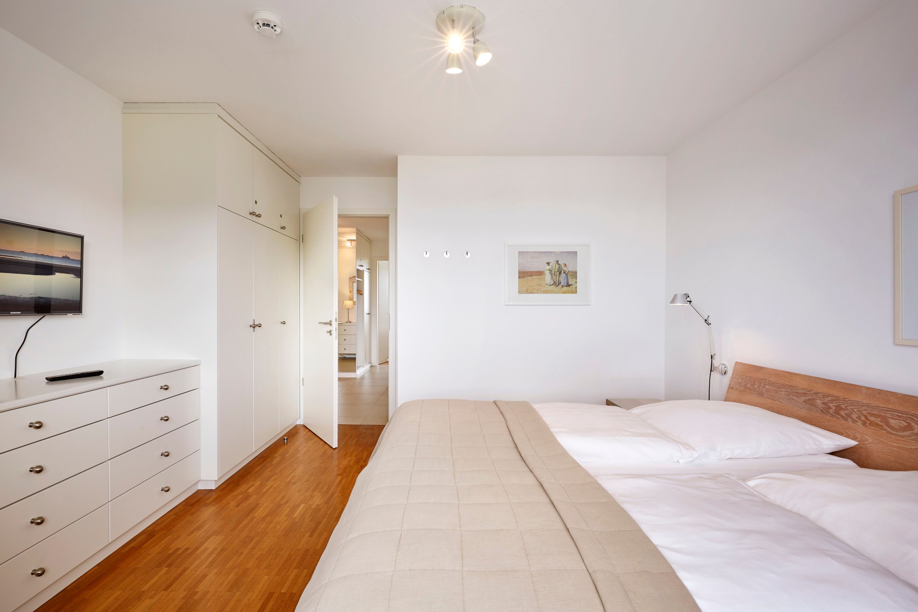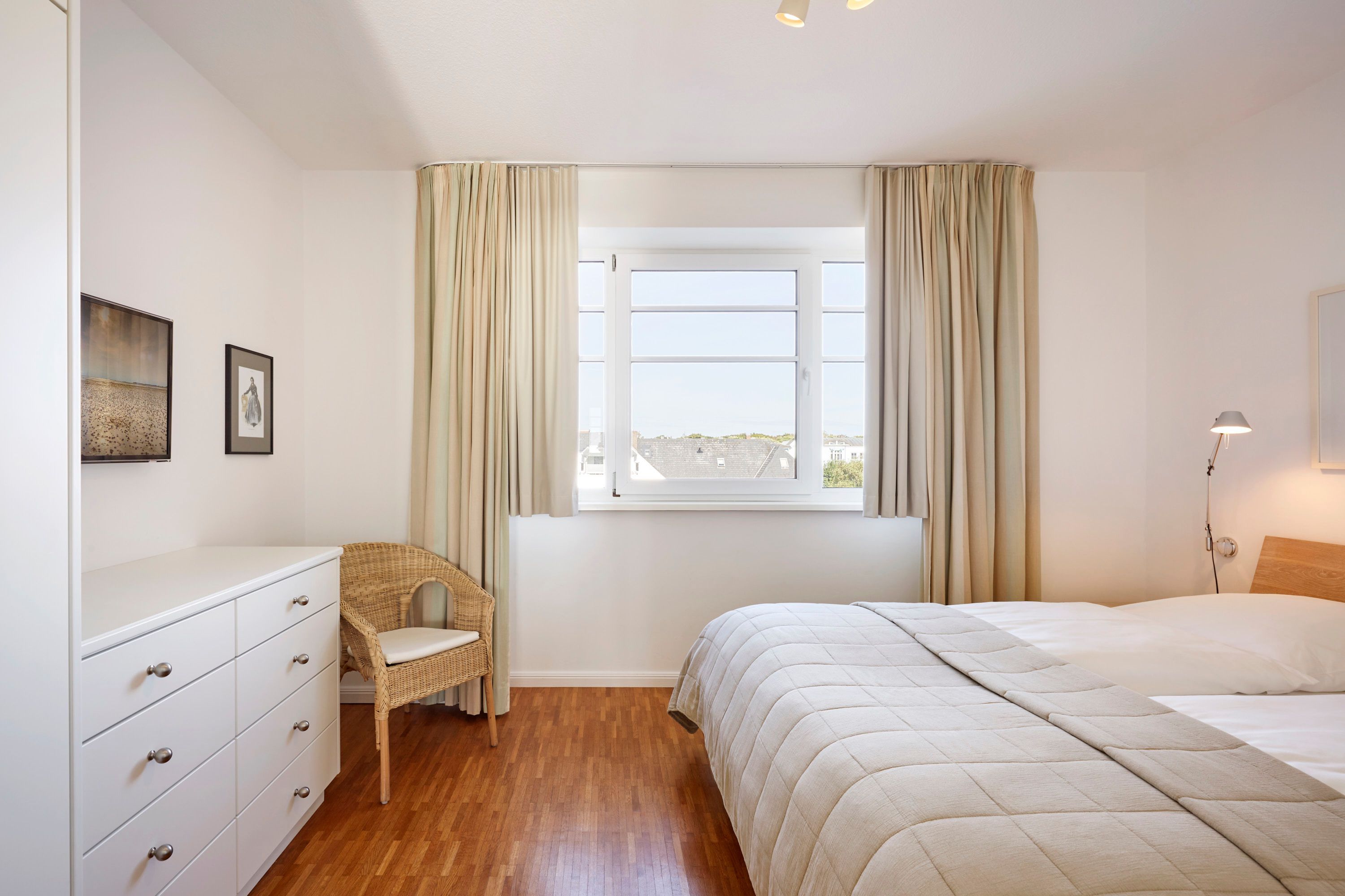 Wir begrüßen Sie im Schloß am Meer, der exklusiven Wohnanlage direkt am Wyker-Südstrand gelegen. Ihre Wohnung liegt im 3 Obergeschoss hinter der historischen Fassade, welche beim Neubau erhalten wurde. Hier haben Sie einen Balkon für sich allein und einen Blick auf die Nordsee und die Halligen. Dieser einzigartige Panoramablick ist unvergesslich. In nur wenigen Schritten befinden Sie sich auf der Promenade, die Sie ins Herz von Wyk führt. Hier laden Geschäfte zum Bummeln ein, Cafes und Restaurants verwöhnen Sie mit kulinarischen Köstlichkeiten.