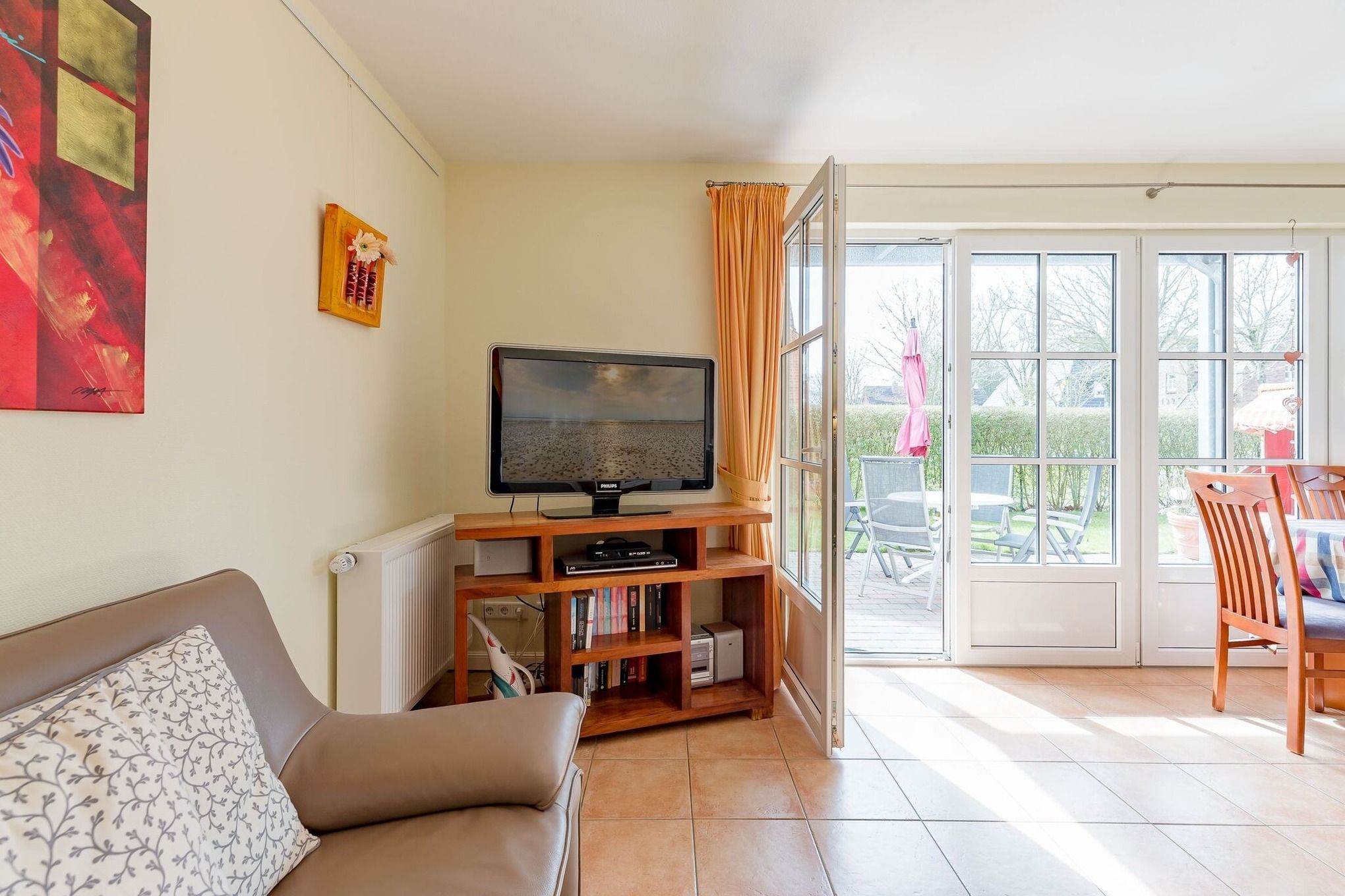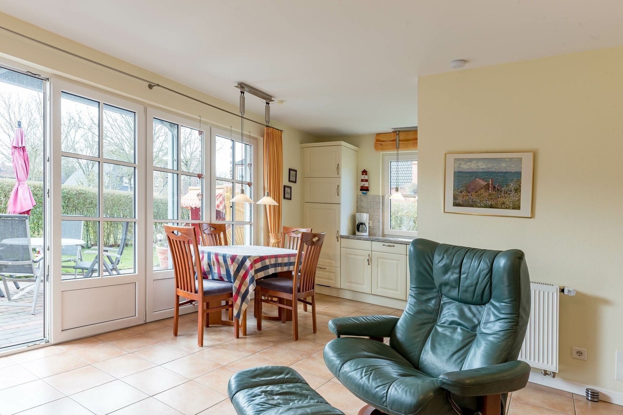 Whg. Südterrasse .Badestr. 13 a, Wyk. .In unserer sehr komfortablen, hellen Ferienwohnung -mit eigener Sauna- in Wyk werden Sie sich sofort wohlfühlen und Ihren Urlaub vom ersten Tag an genießen. Die Wohnung liegt in ruhiger, jedoch sehr zentraler Lage und lässt keine Wünsche offen. Betreten Sie den abgeschlossenen, großen Garten durch eine schöne Gartenpforte und entspannen Sie sich auf der Südterrasse. In wenigen Minuten erreichen Sie den Strand und die Promenade. Alle Einkaufsmöglichkeiten sind in unmittelbarer Nähe vorhanden sowie die beliebte Wyker Flaniermeile mit hübschen Cafes, Restaurants und netten Geschäften. Beste Voraussetzung für einen unvergesslich schönen Urlaub.