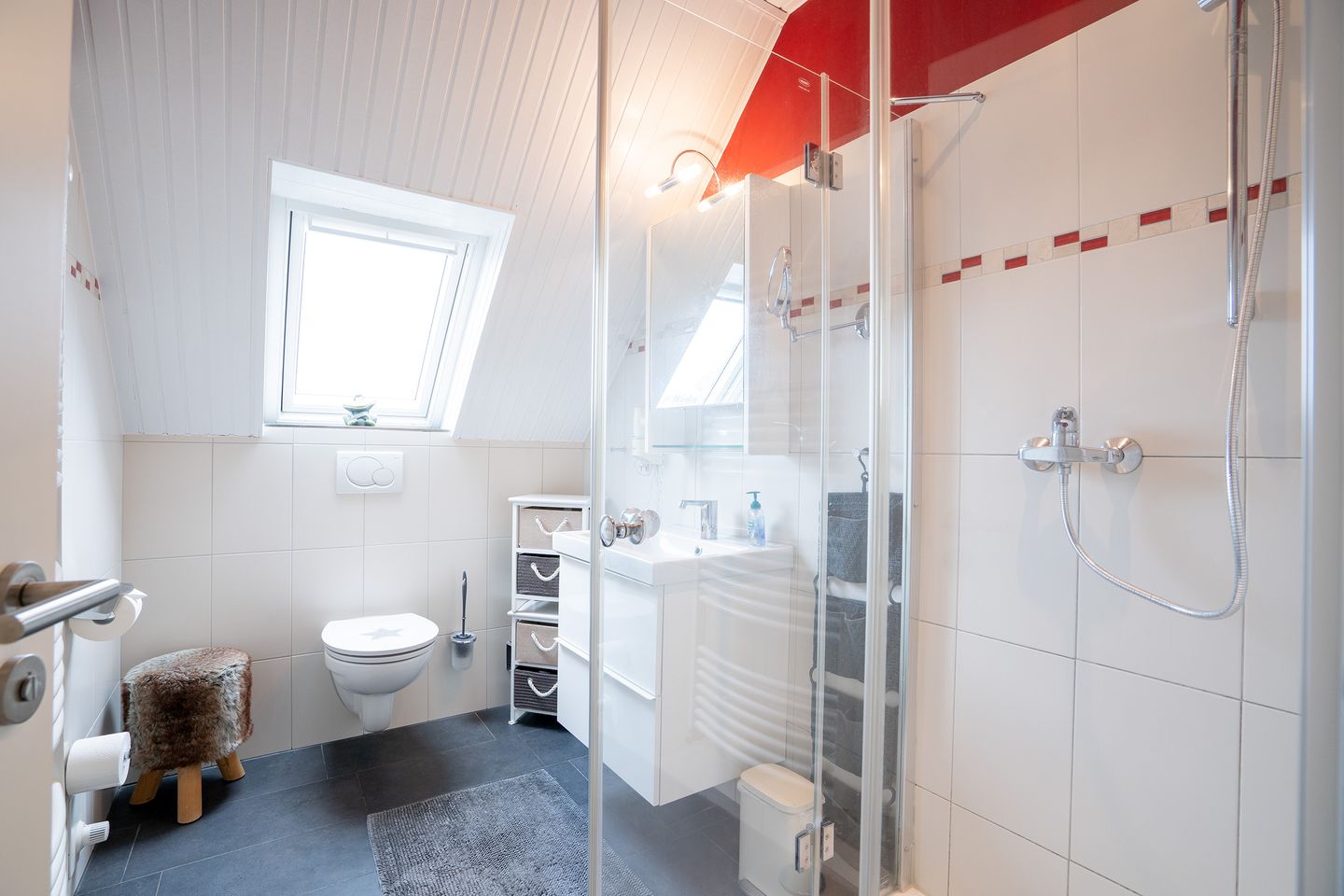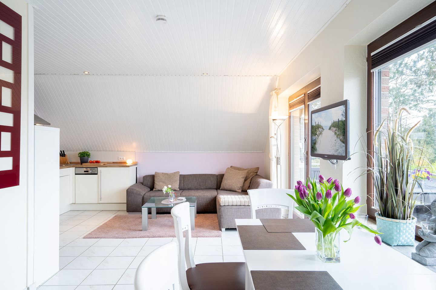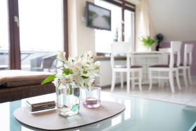 Hermann-Kröger-Straße 16, ca. 60 m²,1. Etage, Balkon, Wohn-/Schlafraum mit Doppelbett (abgeteilt), Essecke, integrierte Küchenzeile mit Backofen, Geschirrspüler, Cerankochfeld, TV, WLAN, Schlafzimmer mit zwei Einzelbetten (0,80 x 2,00m- bestens geeignet für Kinder bis 16 Jahren), Duschbad mit Fußbodenheizung, Kinderreisebett auf Anfrage buchbar (5,00 €/Nacht) und Hochstuhl kostenfrei, PKW-Stellplatz, keine Haustiere, Bettwäsche und Handtücher bitte mitbringen oder spätestens zwei Tage vor Anreise gegen Gebühr bestellen.