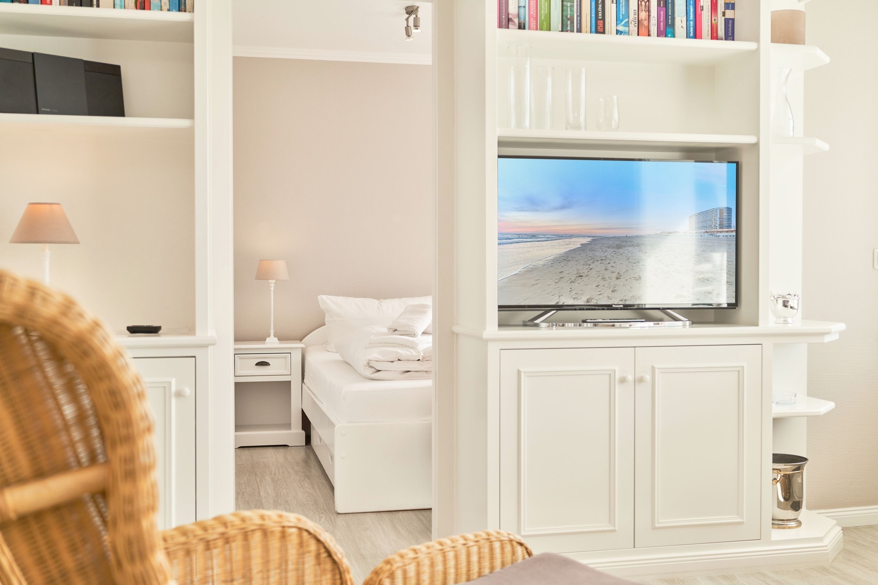 Diese liebevoll bis ins Detail eingerichtete Ferienwohnung im Haus Sola Bona in Westerland, hat eine Größe von ca. 45 m² und ist für 2 Personen ausgerichtet und hat einen Meerblick. Hochwertige Einbauten , Duschbad mit WC, Schlafzimmer mit Doppelbett und Einbauschrank. Der West Balkon verfügt über einen kleinen Tisch und zwei Liegestühle. Ein Pkw - Stellplatz steht den Gästen am Haus kostenlos zur Verfügung. Internet WLAN ist gratis.
