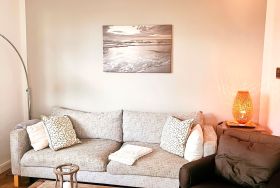 Das Endhausteil hat eine Größe von ca. 84 m² und bietet Platz für bis zu 8 Personen. Im EG befindet sich ein großer Wohnraum mit offener Einbauküche und Essplatz. Die gemütliche Couch (ausklappbar) lädt zum Verweilen ein. In der Einbauküche befindet sich ein Backofen, Geschirrspüler, Kühlschrank mit Gefrierfach, Cerankochfeld, etc. Vom Wohnraum können Sie auf die beiden Terrassen (Ost- und Südterrasse) gehen. Dort sind Terrassenmöbel und auch ein Strandkorb in dem Sie die Sonnenstunden genießen können. Eine Abseite unter der Treppe bietet ausreichend Stauraum für Ihr Gepäck. Im oberen Teil des Hauses befinden sich drei Schlafräume mit je einem französischen Doppelbett, sowie Einbauschränke die ausreichend Platz bieten. Duschbad/WC. Alle Schlafräume haben einen TV-Anschluss. Im EG befindet sich noch ein Gäste-WC. Ein PKW-Stellplatz befindet sich direkt vor dem Haus. Die Tierhaltung ist auf Anfrage gestattet. Das Rauchen ist verboten!