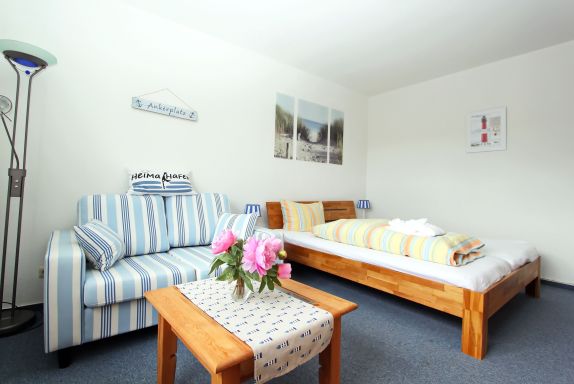 modernes 1 Zimmer Appartement mit ca. 32 m² unweit des Hörnumer Golfplatz im Herzen von Sylt`s sonnigen Süden; 1 Wohn-/Schlafraum mit Doppelbett, 2 Sitzer-Ledercouch, Tisch, Schrank, Kommode, Sat-Flat-TV, kleine Kompaktanlage mit CD-Player, Blue-Ray-Player; neue separate Küche mit 4 Plattenherd, Backofen, Kühlschrank mit kleinem Gefrierfach, Essplatz für 2 Personen. Alle notwendigen Haushalts- und Küchengeräte sind vorhanden und können genutzt werden (z.B. Fön, Staubsauger, Bügeleisen und Bügelbrett). Wannenbad/WC; Flur mit Garderobe. Es steht Ihnen kostenloses WLAN zur Verfügung.