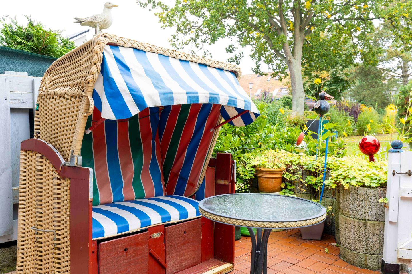 Meinsweg 6b, ca. 37 m², Ecke Beesenbrook, ebenerdig, Süd-Terrasse mit Markise, Gartenmöbel und Strandkorb, Wohnzimmer mit Schlafcouch, Essecke, WLAN, Sat-TV, DVD / CD-Player, Radio, Schlafzimmer mit Doppelbett (1,60 x 1,80 m), Einbaupantry mit Mikrowelle, Dusche / WC mit Waschmaschine, Pkw-Stellplatz, keine Haustiere, Bettwäsche und Handtücher bitte mitbringen oder spätestens zwei Tage vor Anreise gegen Gebühr bestellen.
