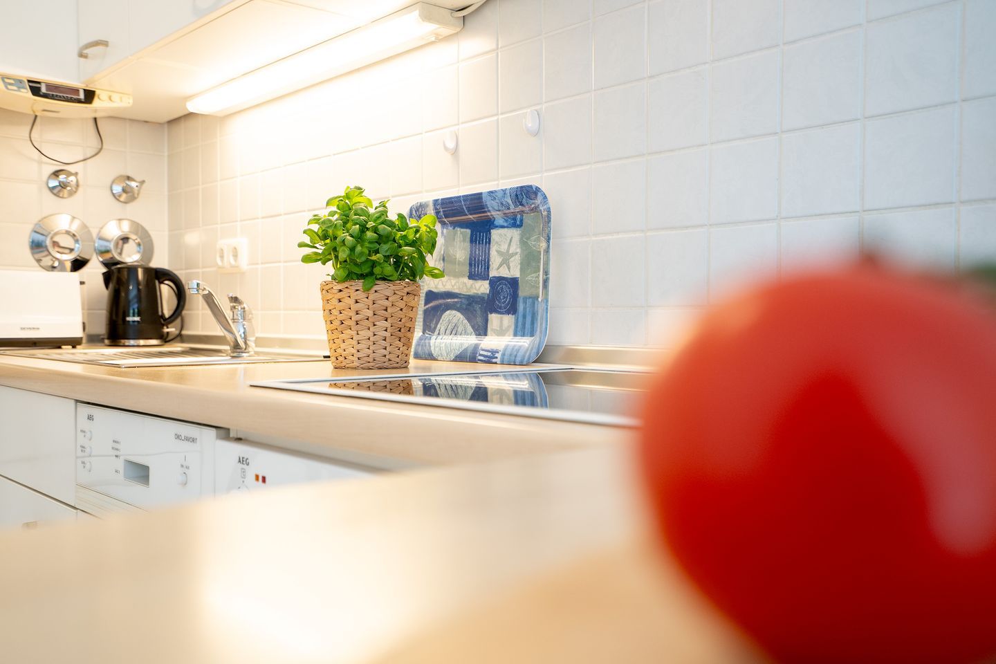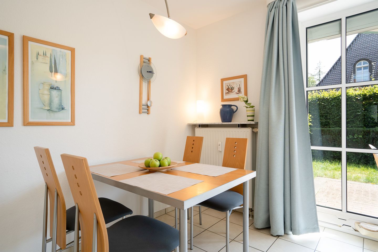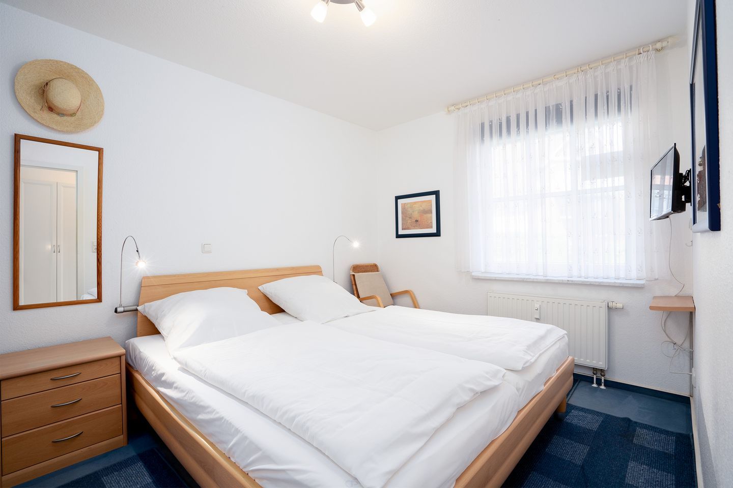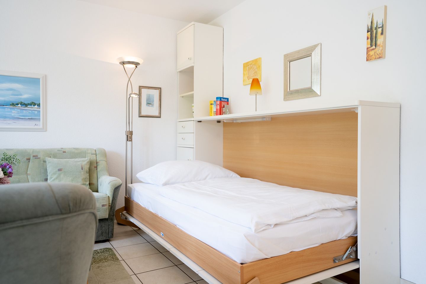 Ostseeallee 1, ca. 50 m², Erdgeschoss, möblierte Süd-West-Terrasse mit elektrischer Markise, Wohnzimmer mit Essecke, integriertes Schrankbett, Smart-TV, DVD-Player, WLAN, offene Einbauküche, Ceranfeld, Backofen, Mikrowelle, Spülmaschine, Schlafzimmer mit Doppelbett und TV, Wohnung ist komplett gefliest außer Schlafzimmer (Teppichboden), Duschbad / WC, große Dusche (1,20 x 0,80m), Tiefgaragenstellplatz für Fahrzeuge bis 1,50 m Höhe, zwei Hunde erlaubt (5,00 €/Nacht), Bettwäsche und Handtücher bitte mitbringen oder spätestens zwei Tage vor Anreise gegen Gebühr bestellen.