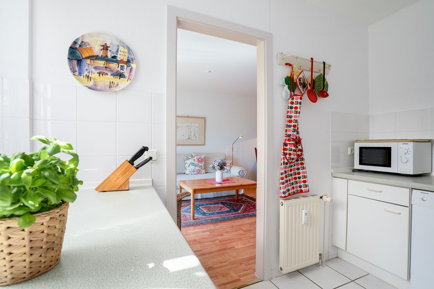 Ostseeallee 33, ca. 52 m², ebenerdig, Süd-Terrasse, Wohnzimmer mit Essecke, Laminatboden, Schlafcouch, TV, Radio, WLAN, Schlafzimmer mit Doppelbett, Einbauküche mit Geschirrspüler, Backofen und Mikrowelle, Bad/WC, Tiefgaragen-Stellplatz (Doppelparker bis 1,50 m Höhe), keine Haustiere, Bettwäsche und Handtücher bitte mitbringen oder spätestens zwei Tage vor Anreise gegen Gebühr bestellen.