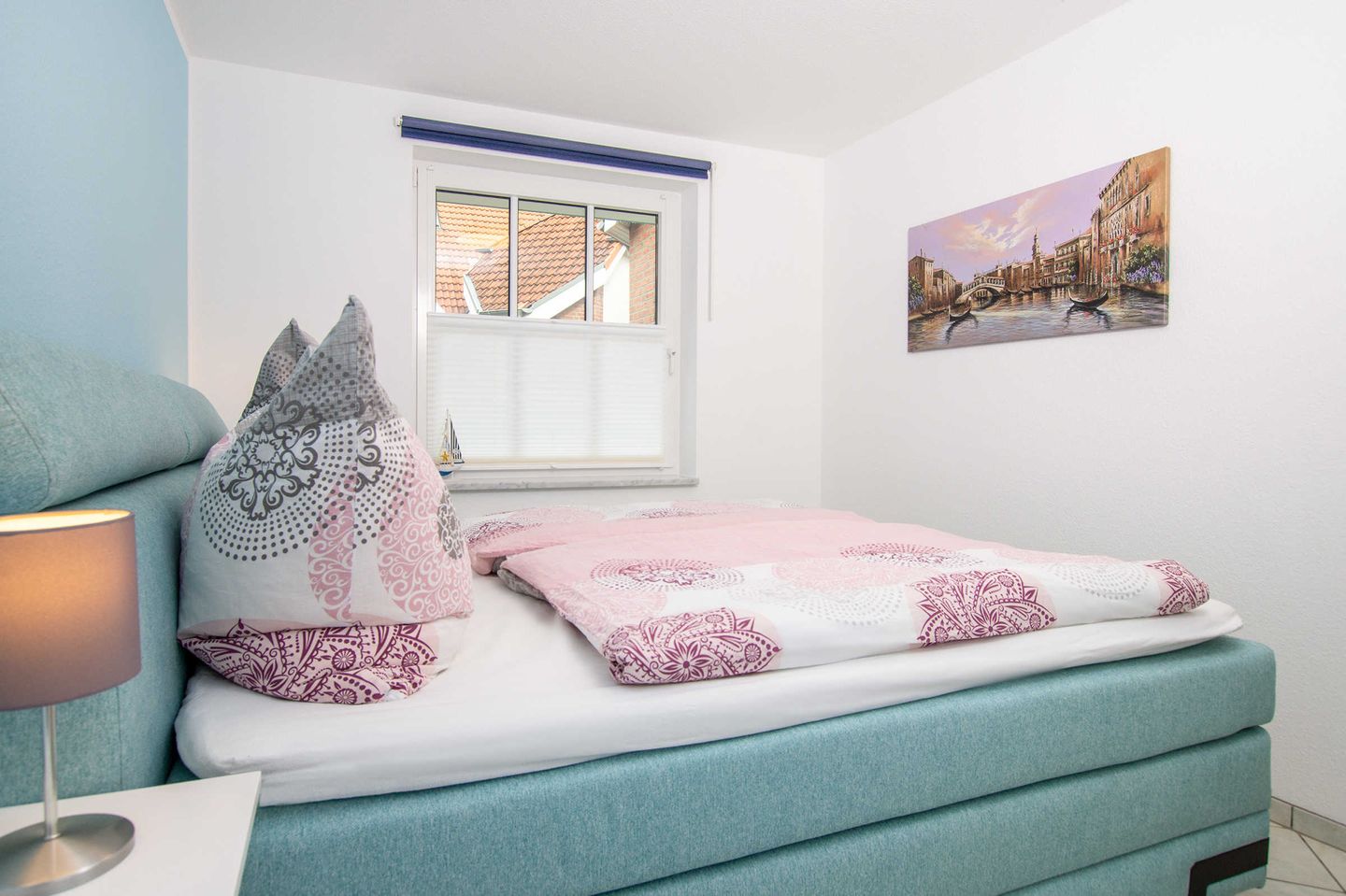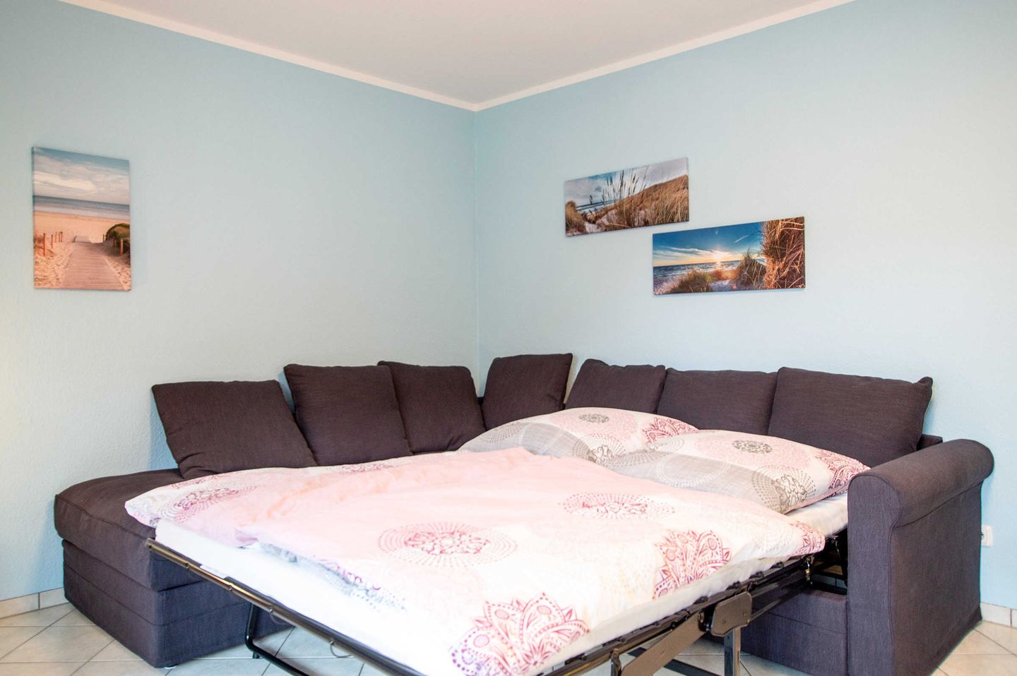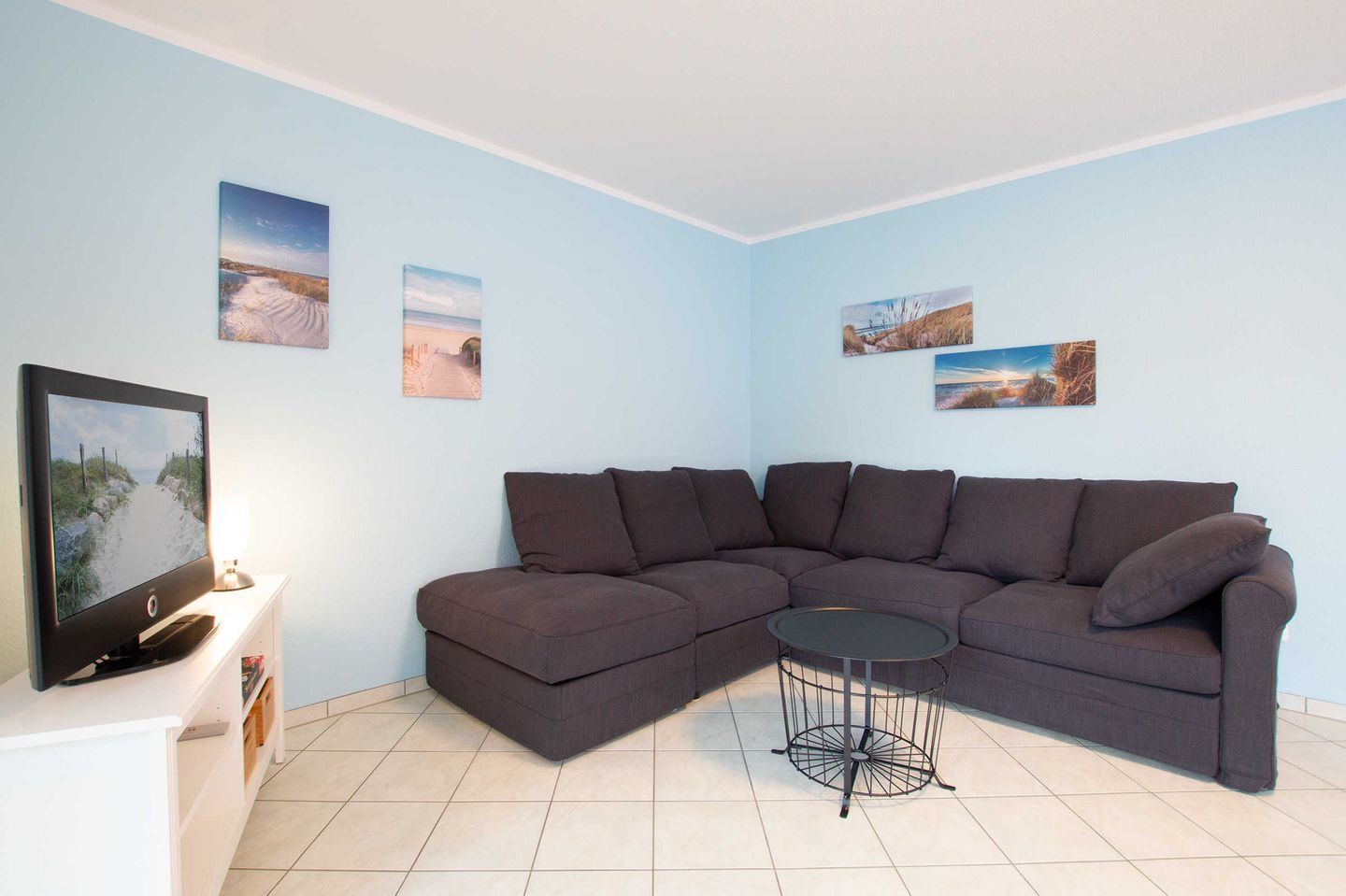 Ostseeallee 5, ca. 53 m², 1. Etage, Süd-Balkon mit elektr. Markise, Wohnzimmer mit Schlafsofa und Essbereich, Kabel-TV, WLAN, Schlafzimmer mit Doppelbett, separate Küche mit Ceranfeld, Backofen, Kühlschrank mit Gefrierfach, Geschirrspüler, Dusche/WC, TG- Stellplatz (Doppelparker/Duplex bis 1,50 m Fahrzeughöhe), Kinderreisebett, Hochstuhl, 2 Hunde erlaubt (5,00 € pro /Nacht), Bettwäsche und Handtücher bitte mitbringen oder spätestens zwei Tage vor Anreise gegen Gebühr bestellen.