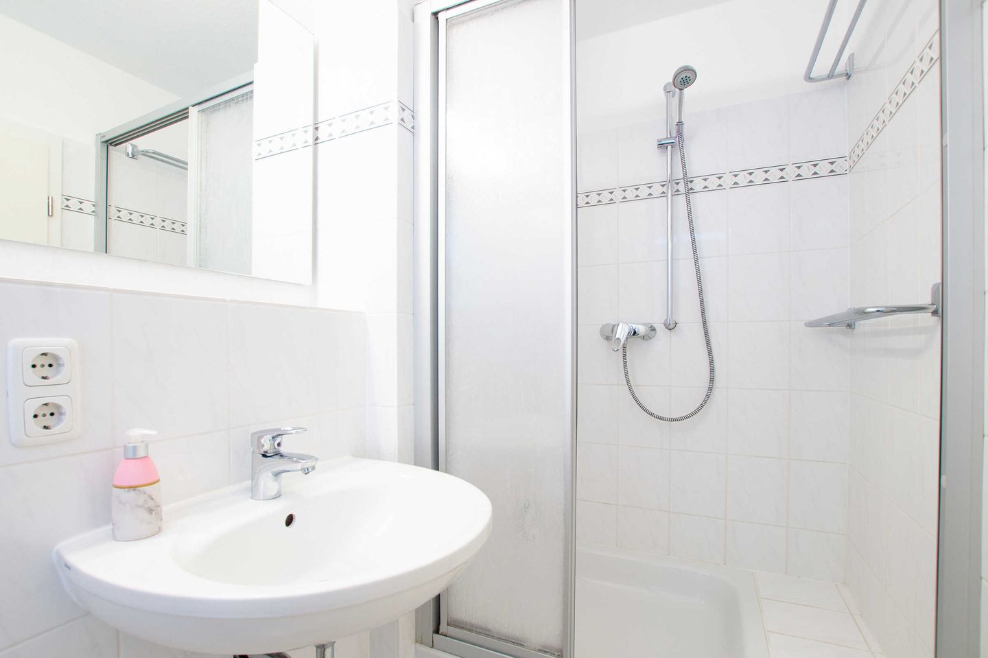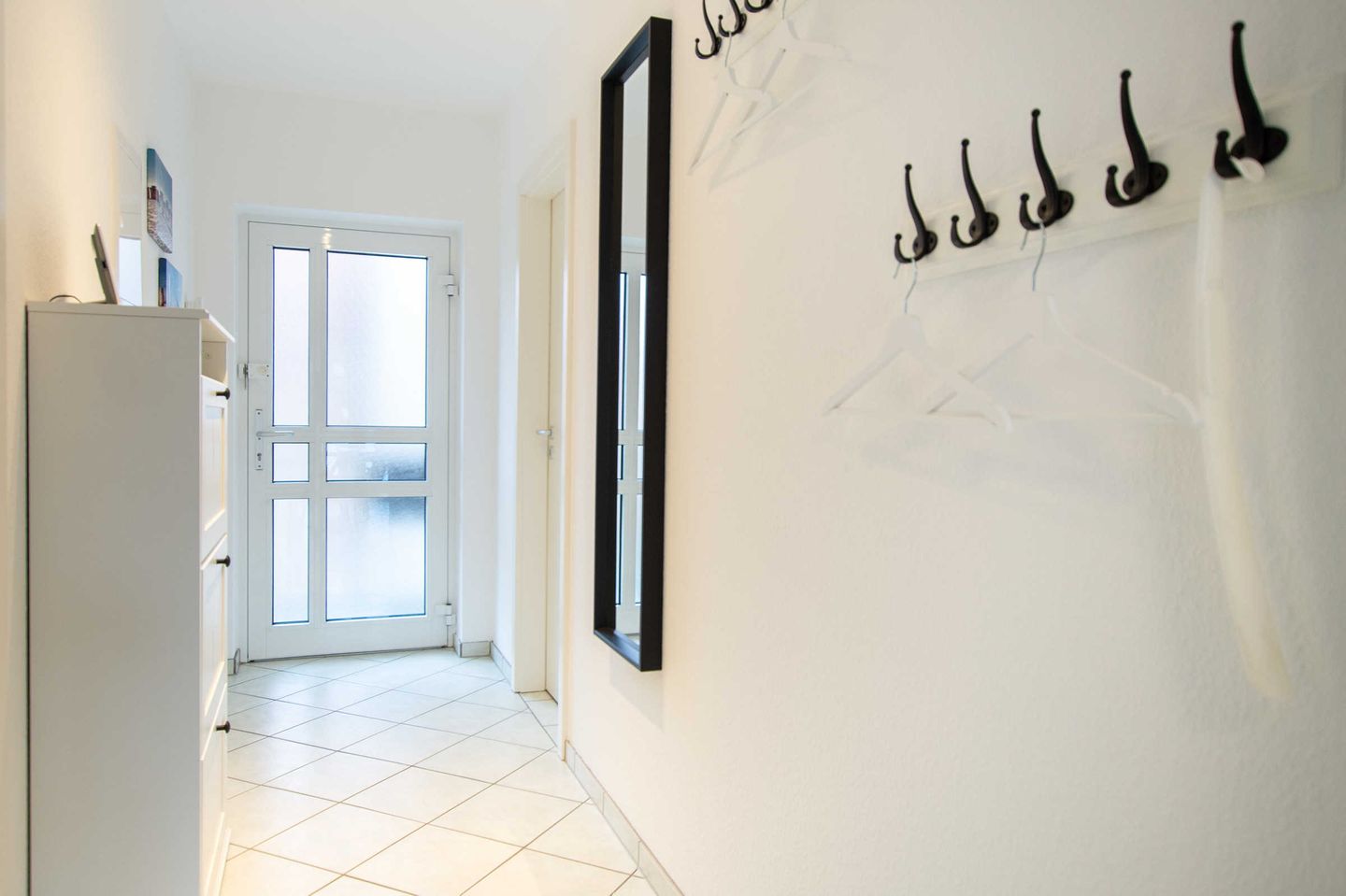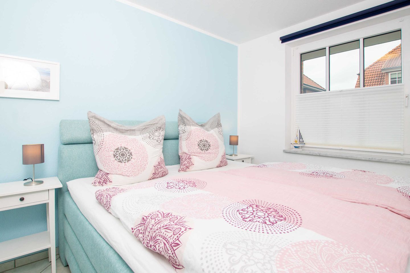 Ostseeallee 5, ca. 53 m², 1. Etage, Süd-Balkon mit elektr. Markise, Wohnzimmer mit Schlafsofa und Essbereich, Kabel-TV, WLAN, Schlafzimmer mit Doppelbett, separate Küche mit Ceranfeld, Backofen, Kühlschrank mit Gefrierfach, Geschirrspüler, Dusche/WC, TG- Stellplatz (Doppelparker/Duplex bis 1,50 m Fahrzeughöhe), Kinderreisebett, Hochstuhl, 2 Hunde erlaubt (5,00 € pro /Nacht), Bettwäsche und Handtücher bitte mitbringen oder spätestens zwei Tage vor Anreise gegen Gebühr bestellen.