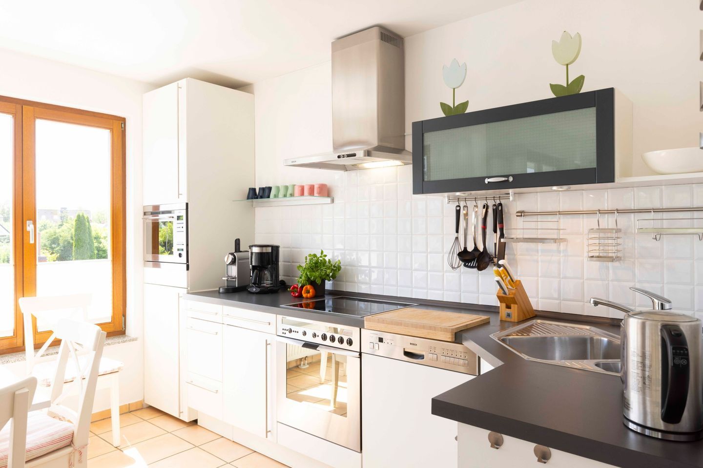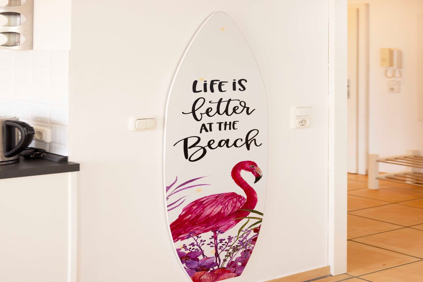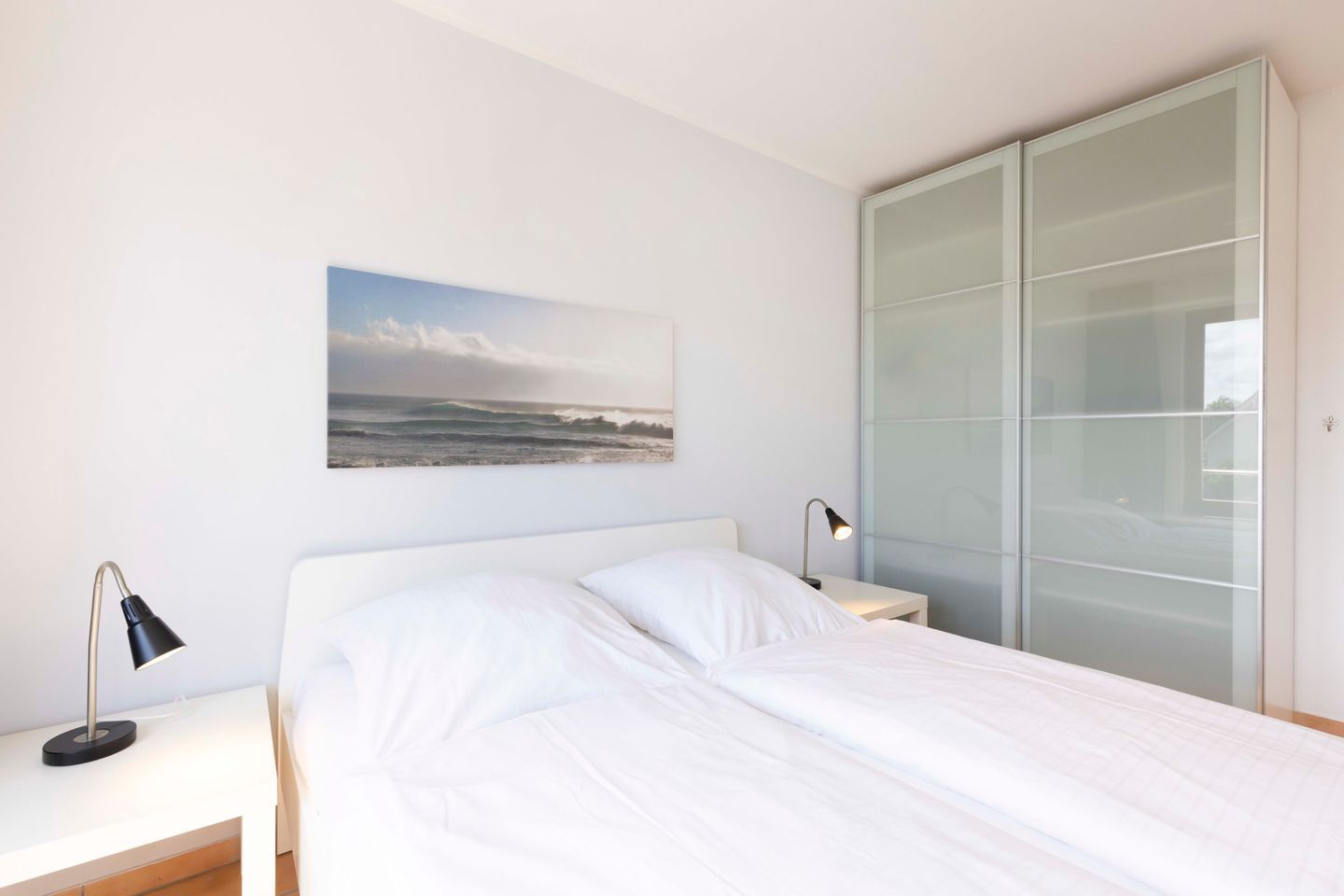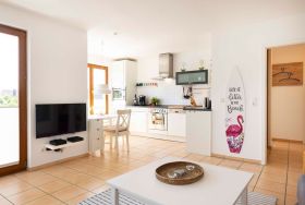Pamirstr. 4, 1. Etage, 58m², Fahrstuhl, möblierter Südbalkon, offener Wohnbereich mit Esstisch und Einbauküche, Geschirrspüler, Mikrowelle, Backofen, Kaffeemaschine, Wasserkocher, Toaster; TV, Radio, CD-Player, WLAN, Dusche/WC, Schlafzimmer mit Doppelbett (je 0,80 x 2,00m), PKW-Stellplatz, ein Hund erlaubt (5,00 €/Nacht), Bettwäsche und Handtücher bitte mitbringen oder spätestens zwei Tage vor Anreise gegen Gebühr bestellen.