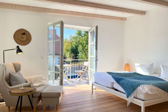 Die Ferienwohnung empfängt Sie mit einem einladenden Wohn-/Schlafbereich, der durch seine durchdachte Raumaufteilung überzeugt. Die voll ausgestattete Küchenzeile ermöglicht es Ihnen, Ihre Lieblingsgerichte zuzubereiten. Das moderne Badezimmer mit ebenerdiger Dusche sorgt für zusätzlichen Komfort. Auf der privaten Terrasse und dem Balkon können Sie die frische Ostseeluft genießen und entspannen.
