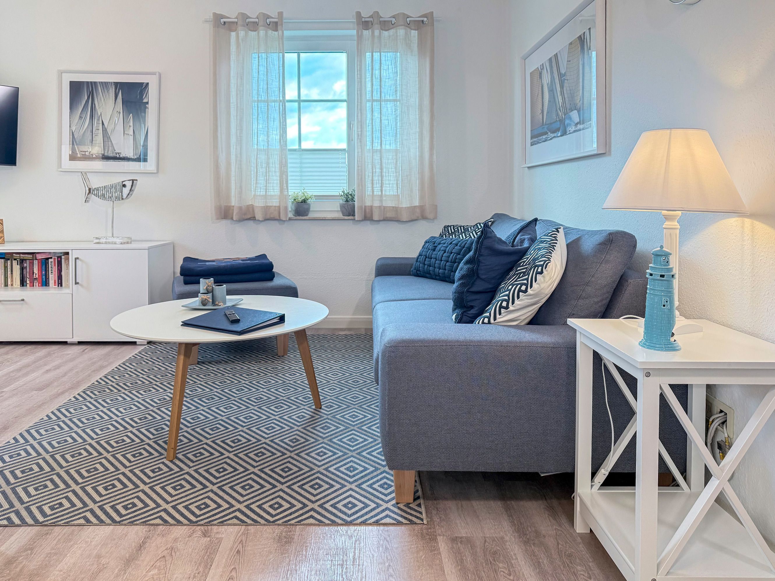 Einladender Wohnbereich: Mit gemütlichem Sofa und Relaxsessel für entspannte Stunden.