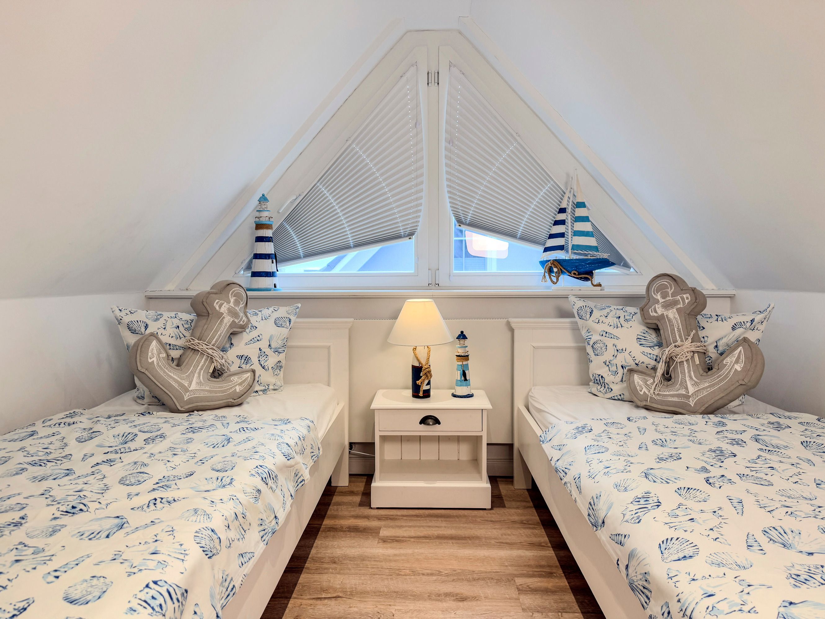 Drei komfortable Schlafzimmer mit Boxspring- und Einzelbetten für erholsamen Schlaf