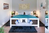 Gemütliches Schlafzimmer mit großem Doppelbett und Fliegengitter