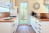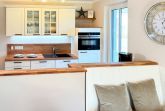 Voll ausgestattete Küche mit Spülmaschine, Mikrowellen-Backofenkombination und Kapsel-Kaffeemaschine