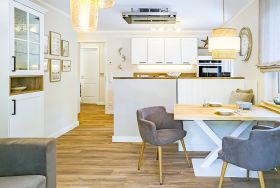 Willkommen in der Ferienwohnung uns Leef in Zingst! Erleben Sie die einzigartige Schönheit der Ostsee-Halbinsel mit ihren weiten Sandstränden, malerischen Dünen und charmanten Fischerorten. Genießen Sie eine erholsame Auszeit an der Ostsee und lassen Sie den Alltag hinter sich. Diese stilvolle Erdgeschosswohnung bietet auf ca. 55 m² Platz für bis zu zwei Personen – ideal für Paare oder kleine Familien, die Ruhe und Komfort suchen.