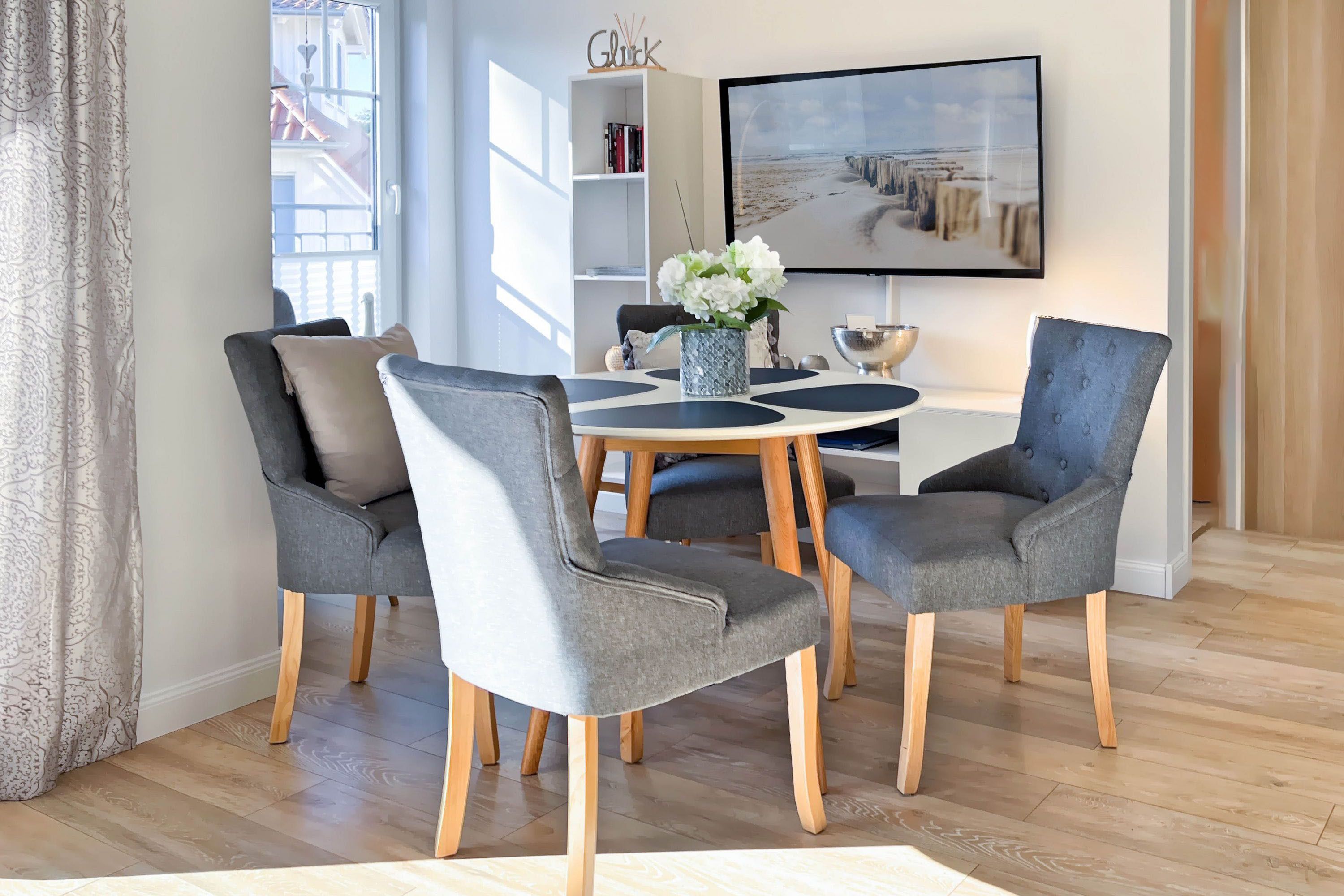 Die Ferienwohnung Seeluft 3 empfängt Sie mit einer hellen, freundlichen Atmosphäre und liebevollen Details.