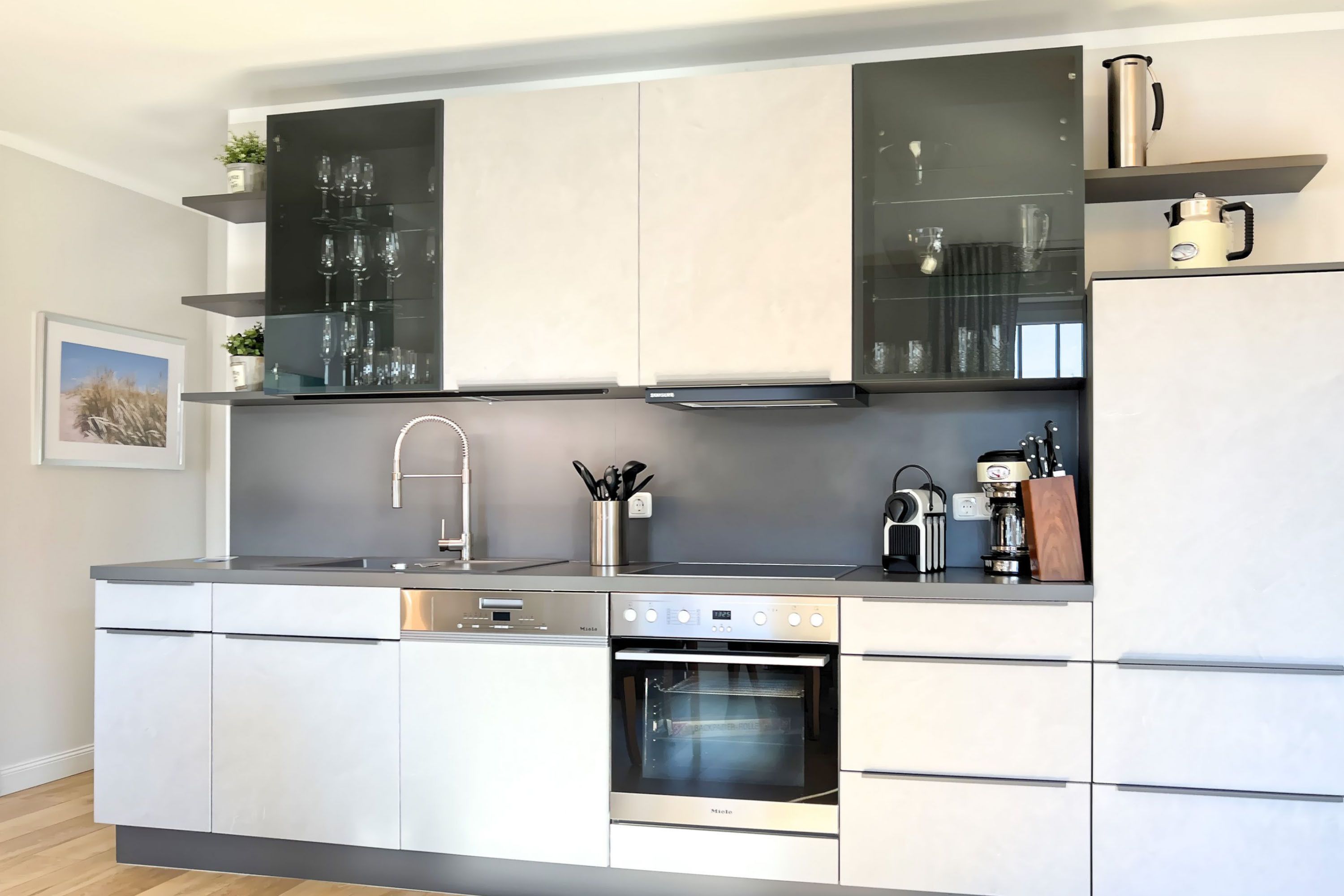 Moderne Küche mit hochwertigen Miele-Geräten – voll ausgestattet für kulinarische Erlebnisse