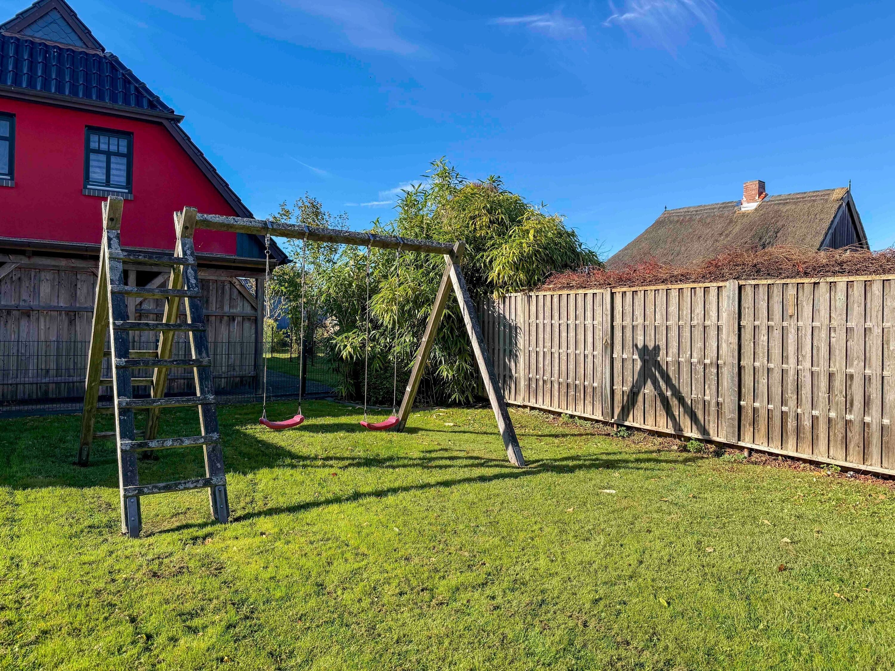 Nach einem Tag am Meer lockt der weitläufige Garten mit seiner großen Wiese – ein Paradies für Kinder zum Spielen, Toben oder Drachensteigen. Auf der sonnigen Terrasse können Sie den Tag entspannt ausklingen lassen: beim Grillen, einem Glas Wein oder einfach beim Lauschen der Meeresbrise. Morgens genießen Sie Ihr Frühstück im Freien, während die Sonne über dem Garten aufsteigt – pure Ostseemagie.