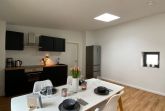 - offene Küche ausgestattet mit Geschirrspüler, Backofen, CeranKochfeld, Kühlschrank, Kaffeemaschine, Wasserkocher, Geschirr, Besteck, Gläser uvm.