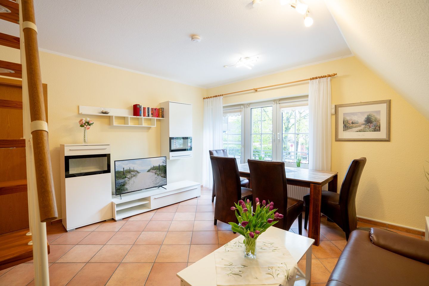 Strandstraße 47a, ca. 60 m², 1. Stock, Balkon mit Gartenmöbeln, Wohnzimmer mit Essecke und Kabel-TV, WLAN, Einbauküche mit Geschirrspülmaschine und Mikrowelle, Schlafzimmer mit Doppelbett, Raumspartreppe zur offenen Schlafgalerie mit Doppelbett, Kabel-TV und Kinderreisebett, Dusche/WC, teilw. elektrische Rolläden und Insektenschutz, 2 PKW-Stellplätze direkt auf dem Grundstück, keine Haustiere, Bettwäsche und Handtücher bitte mitbringen oder spätestens zwei Tage vor Anreise gegen Gebühr bestellen.