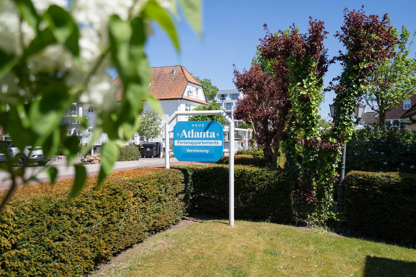 Strandstraße 80,Haus Atlanta, ca. 53 m², ca.100m bis zum Strand, Erdgeschoss, möblierter Ost-Balkon (teilweise überdacht), Wohn-/Essbereich, Schrankbett (Liegefläche 1,60 x 2,00 m), TV, DVD-Player, offene Einbauküche mit Geschirrspüler, Backofen und Mikrowelle, WLAN, Schlafzimmer mit zwei Einzelbetten (0,80 x 2,00 m), bodengleiche Dusche/WC, Haartrockner, PKW-Stellplatz, keine Haustiere, Bettwäsche und Handtücher bitte mitbringen oder spätestens zwei Tage vor Anreise gegen Gebühr bestellen.